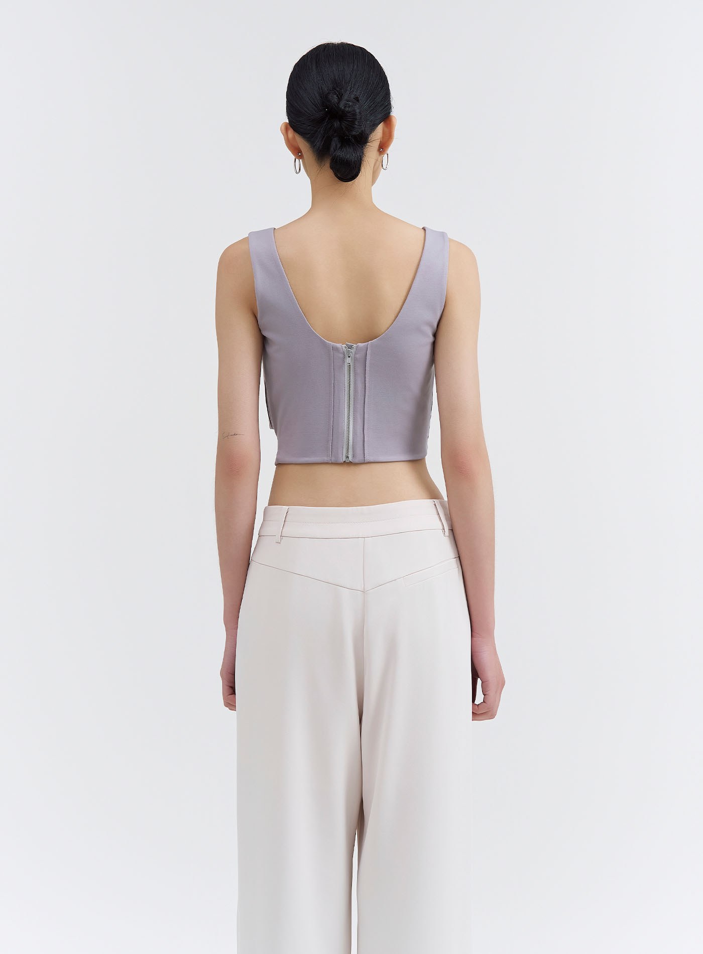 - 後中挖背設計,有金屬拉鍊方便穿脫