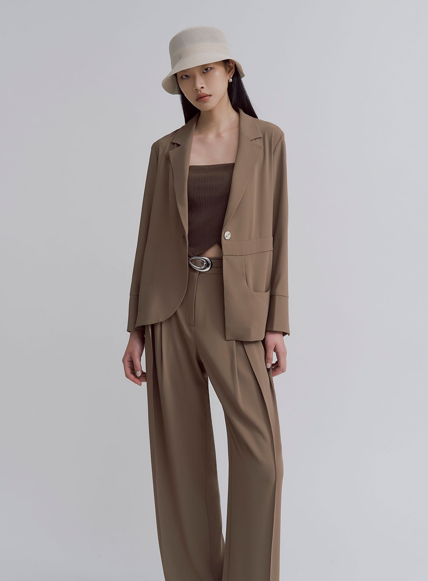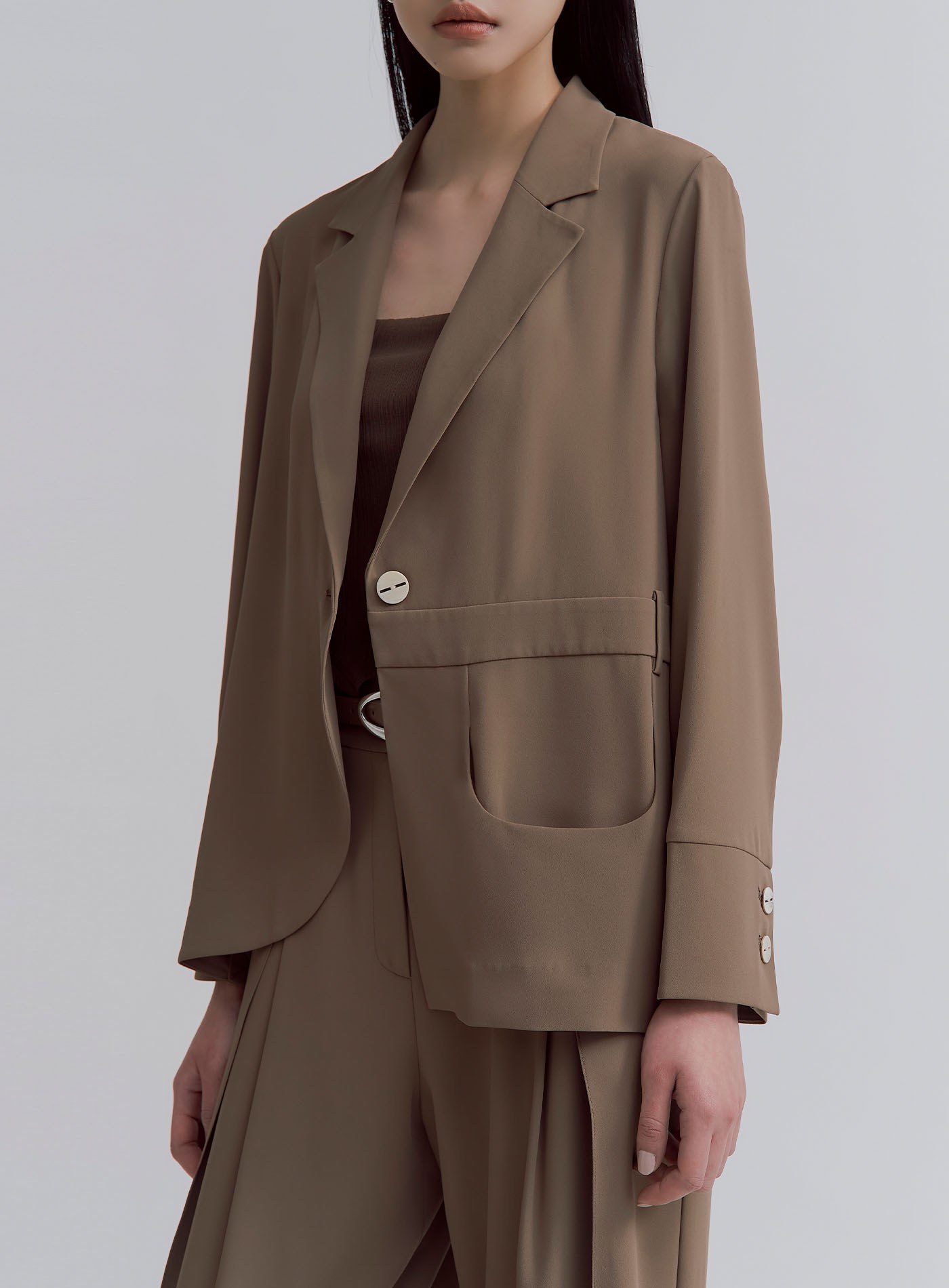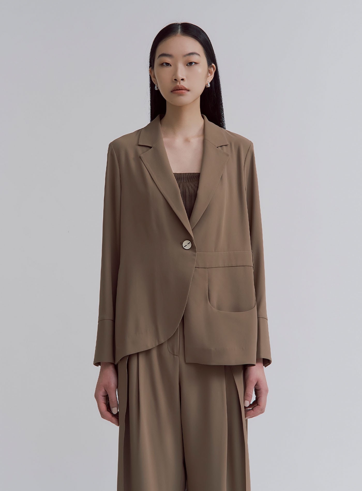- 可與 '飄逸垂墜活褶直順寬褲' 搭成套裝
