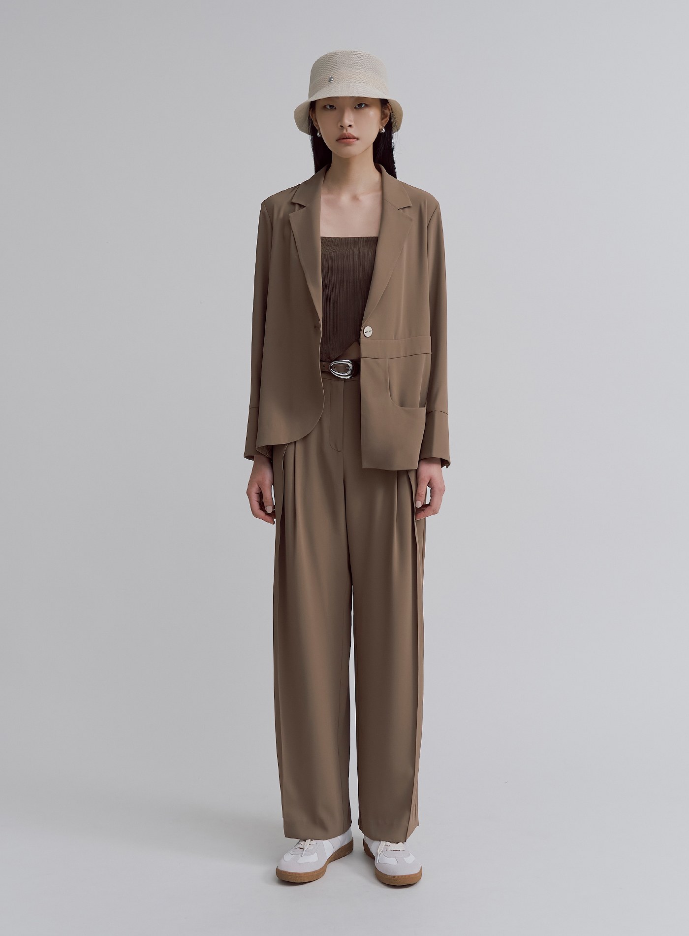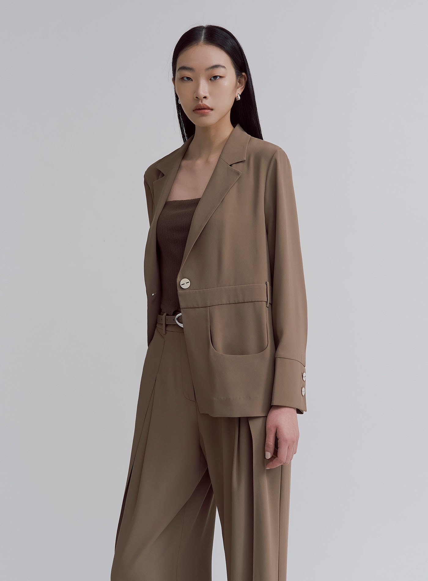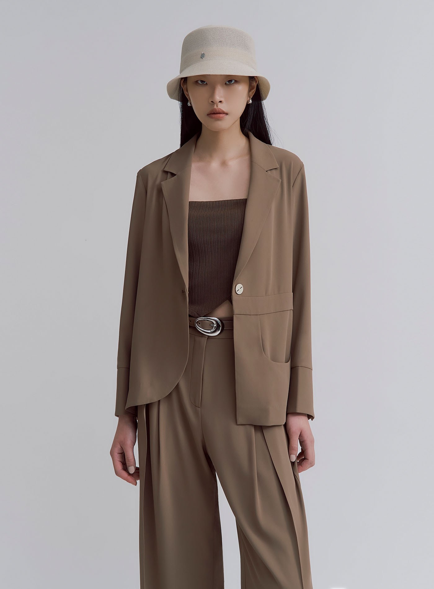 - 可與 '飄逸垂墜活褶直順寬褲' 搭成套裝