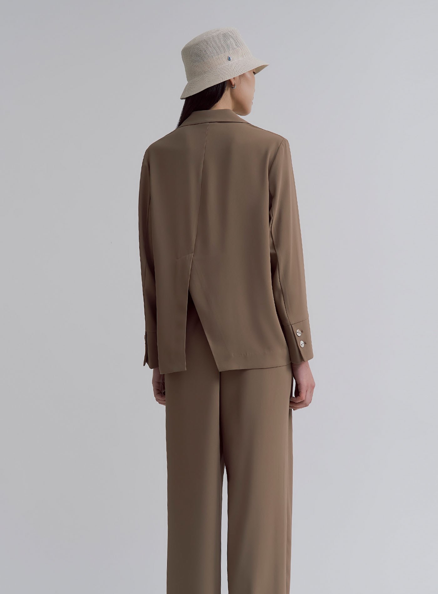- 背面斜開衩設計,增添設計感
