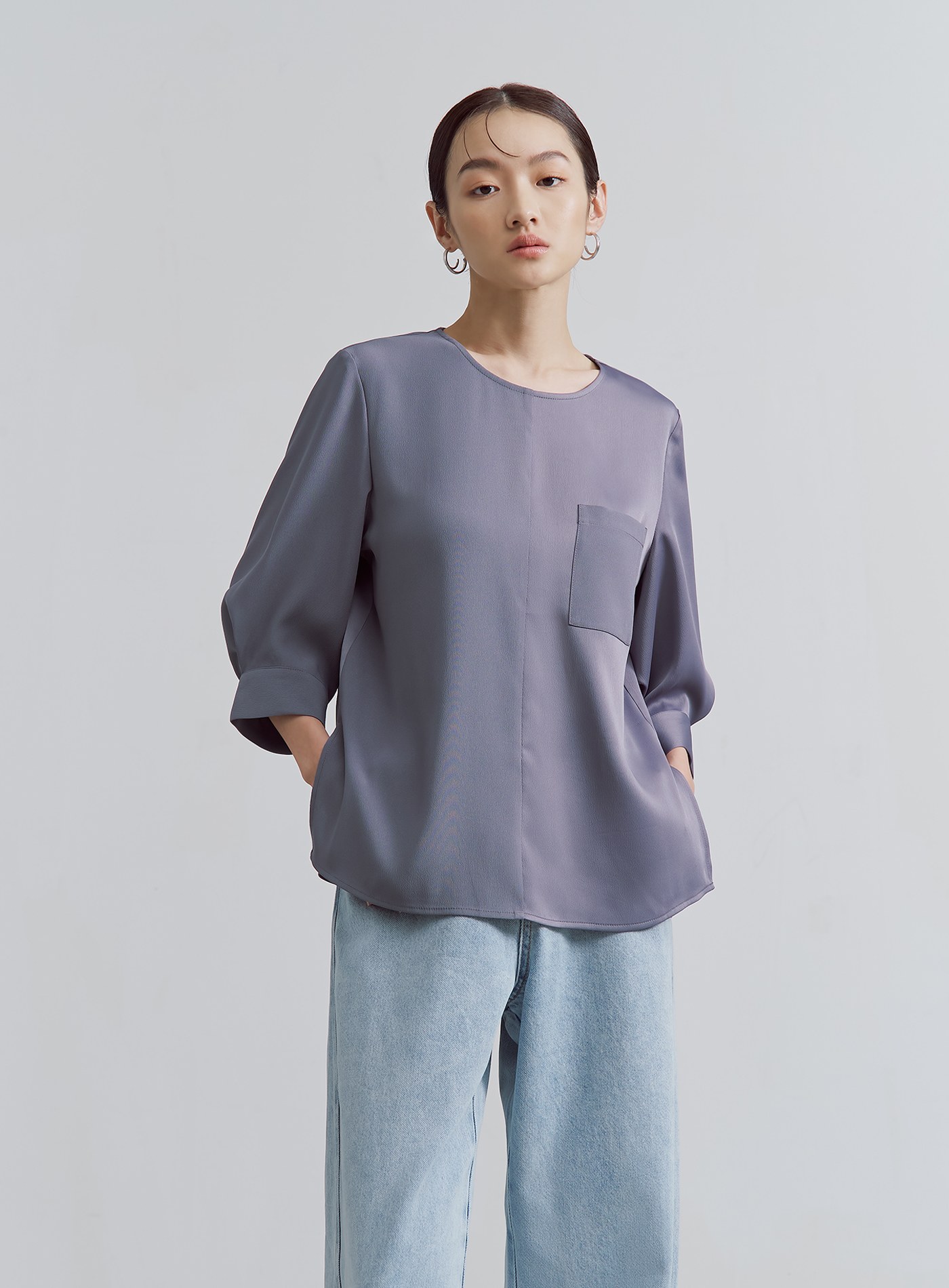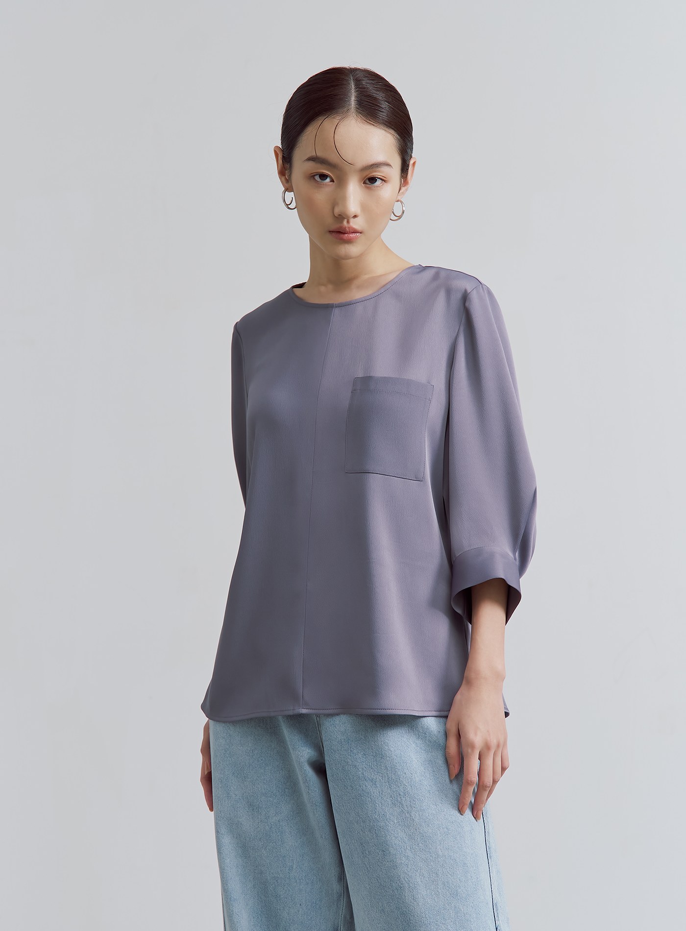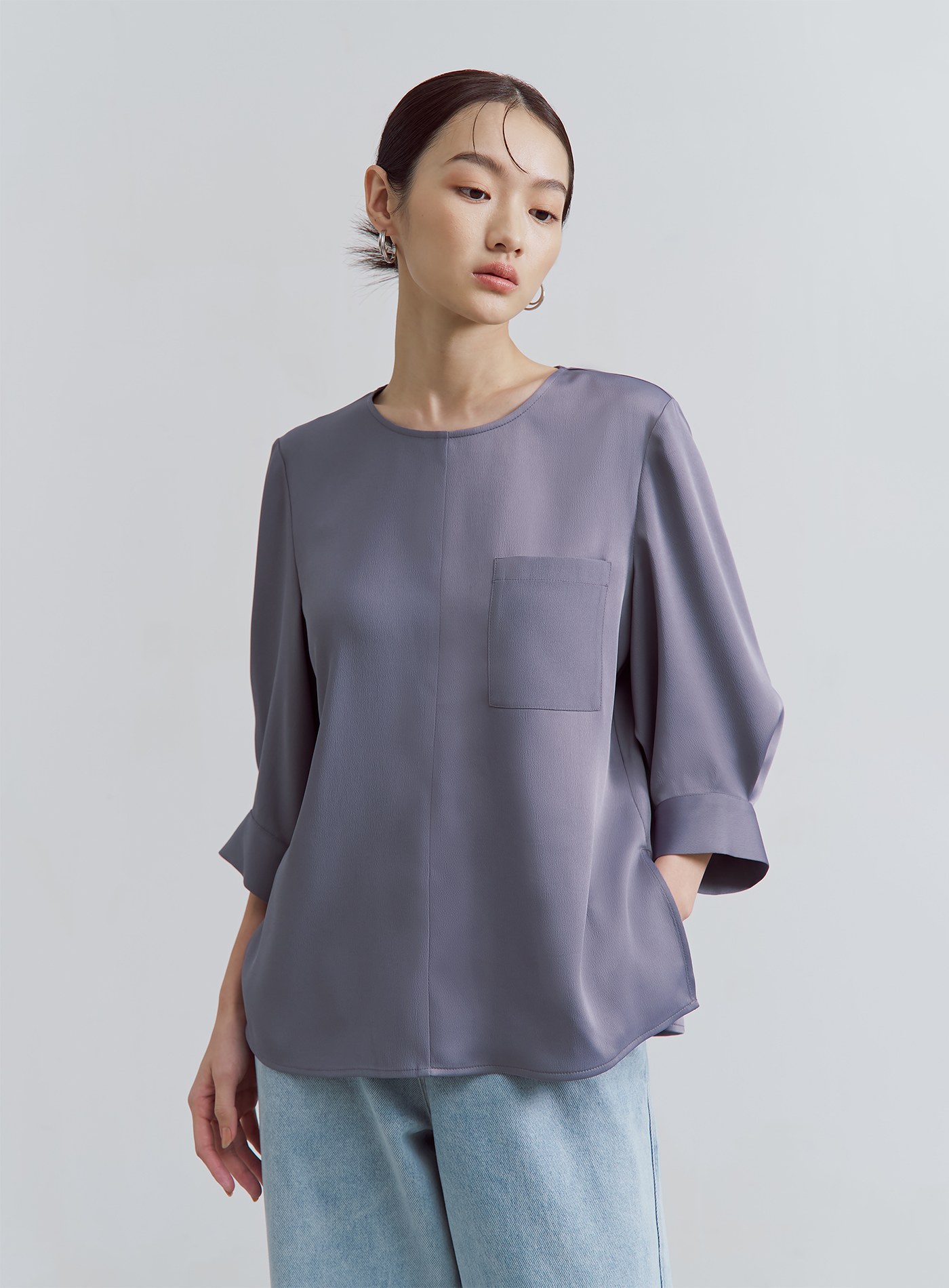 - 微寬鬆版型,抓皺五分袖,胸前口袋設計