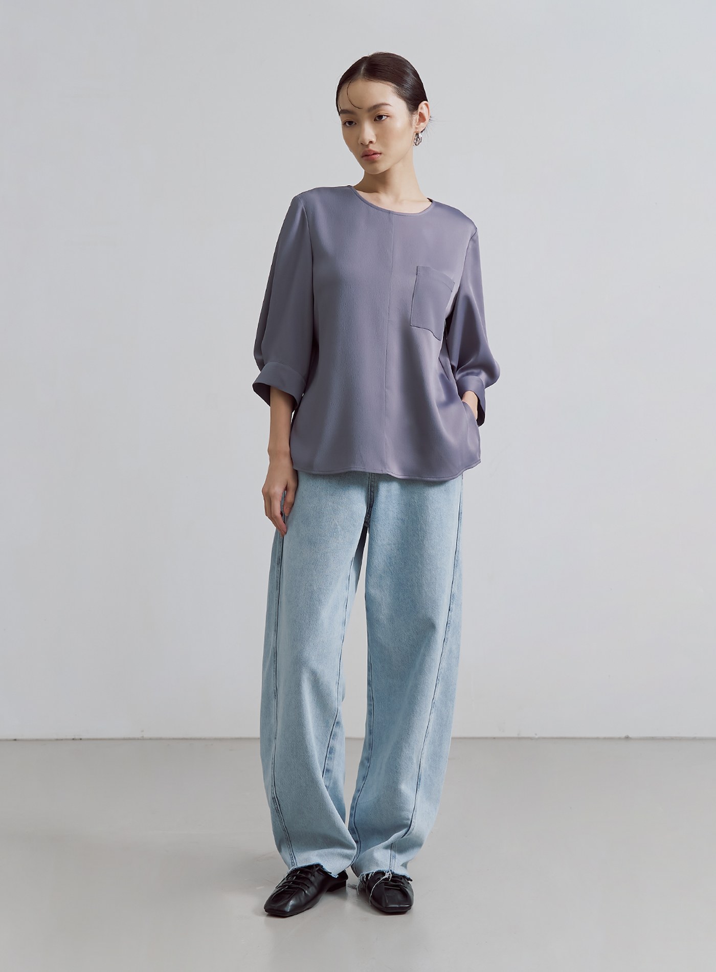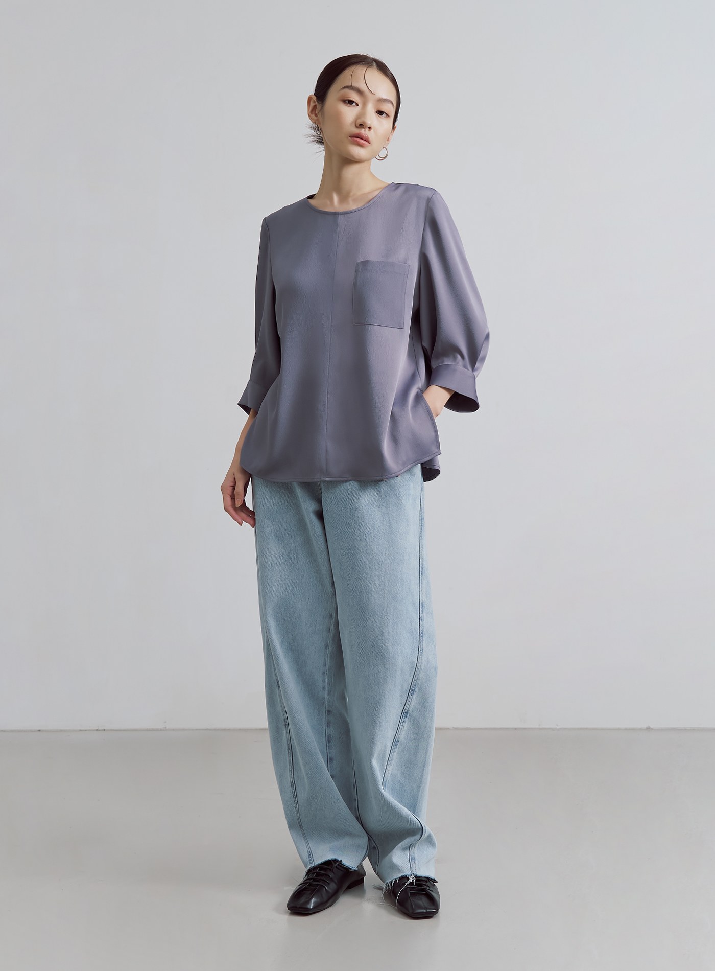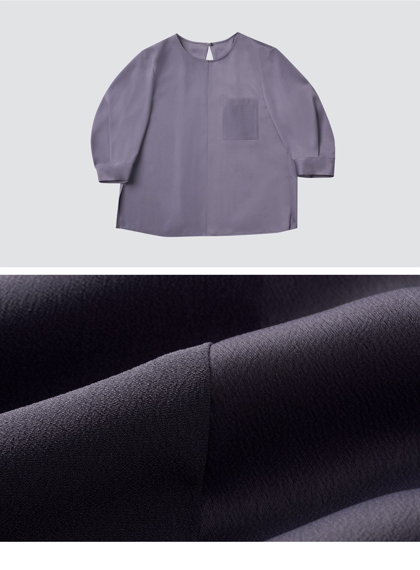 - 微寬鬆版型,抓皺五分袖,胸前口袋設計