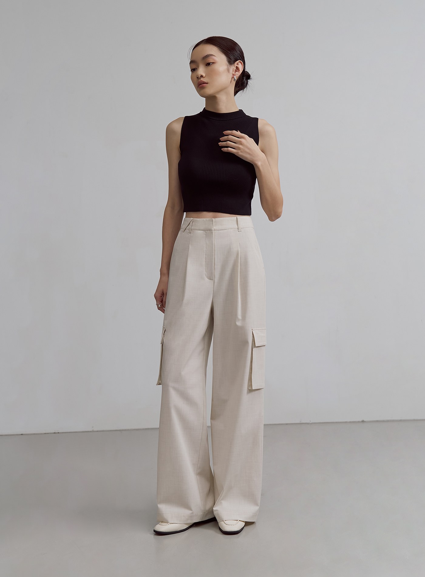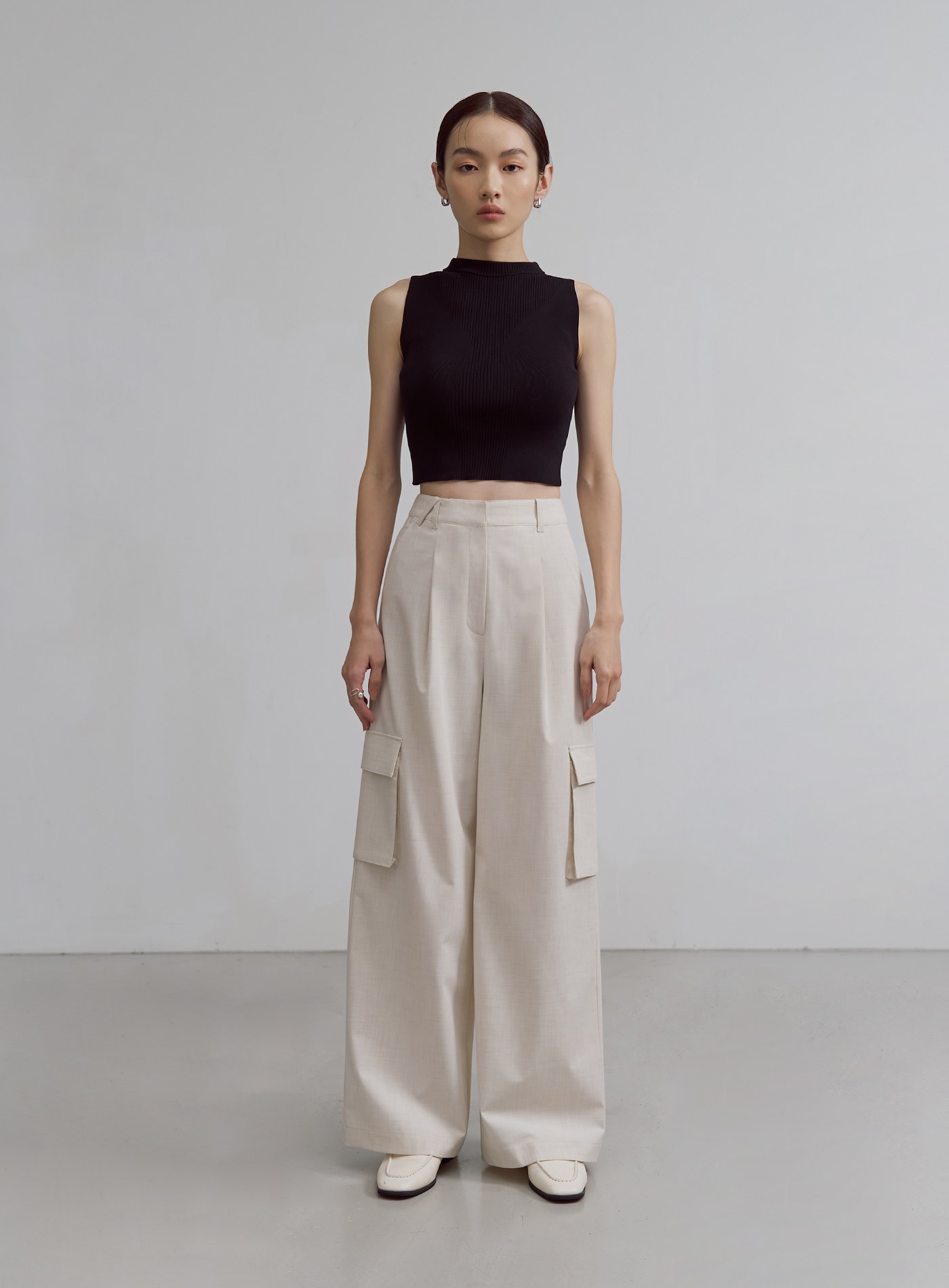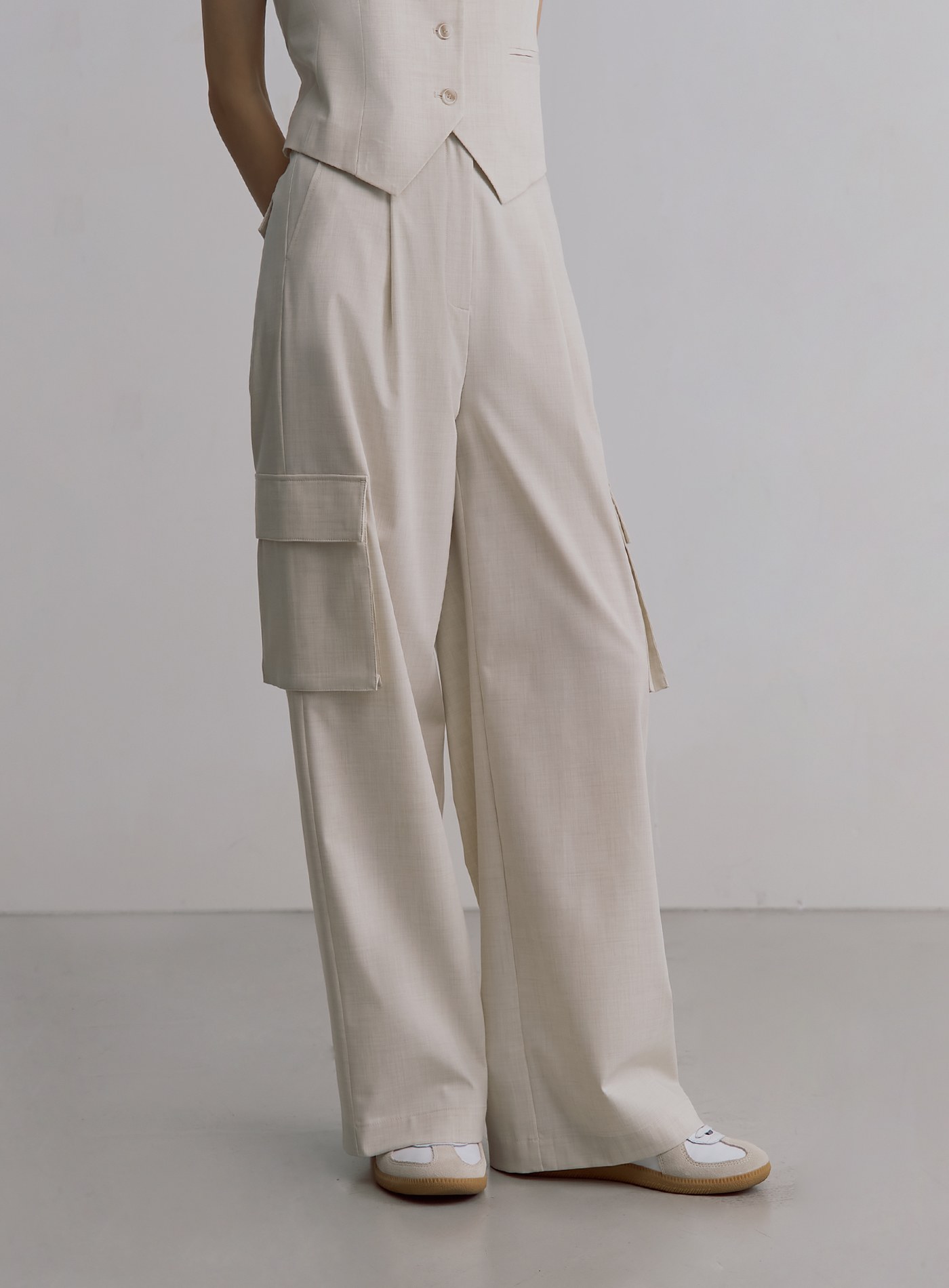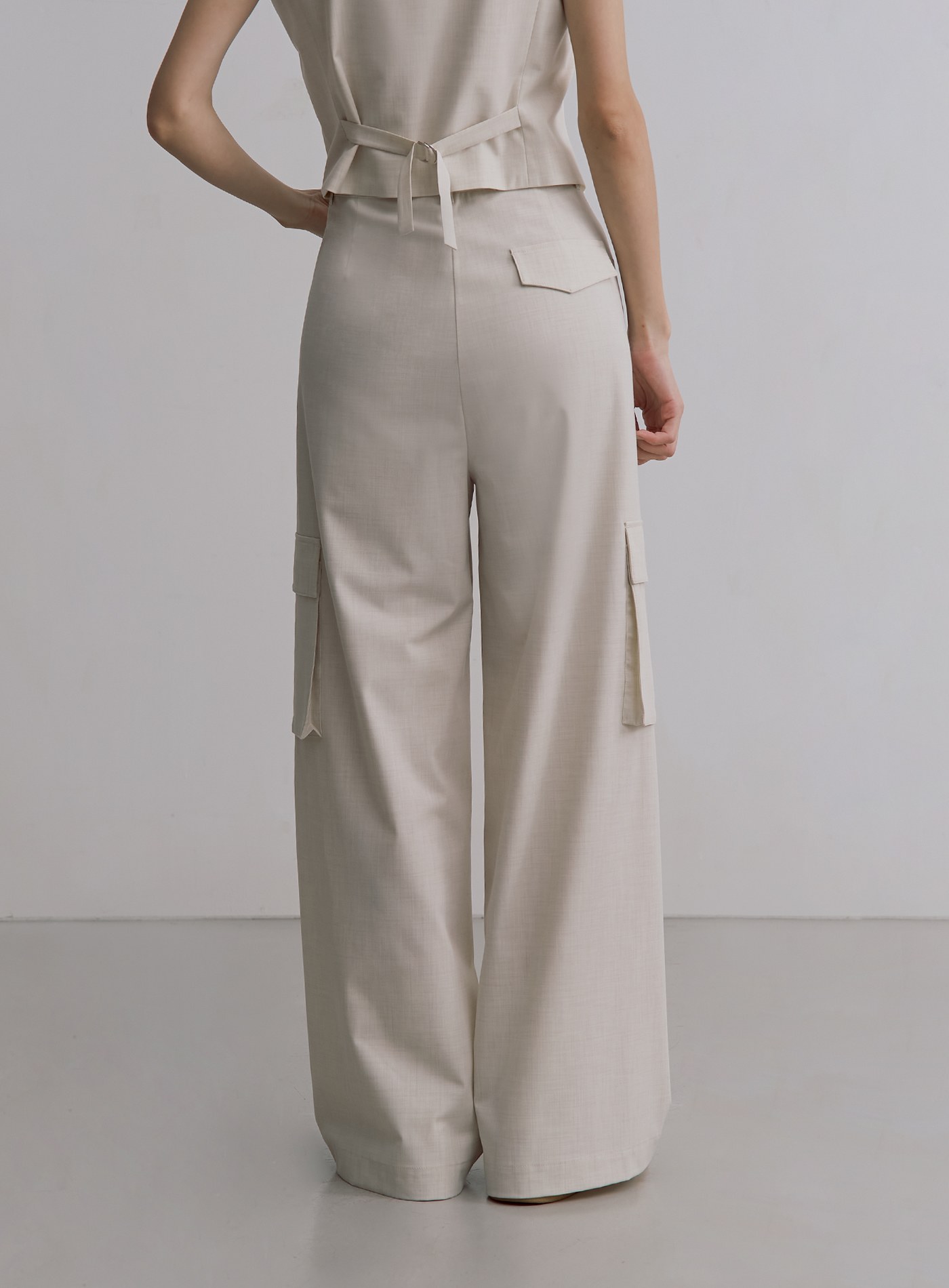 • 直筒落地褲型,褲管兩側立體工裝貼袋,後片裝飾袋蓋