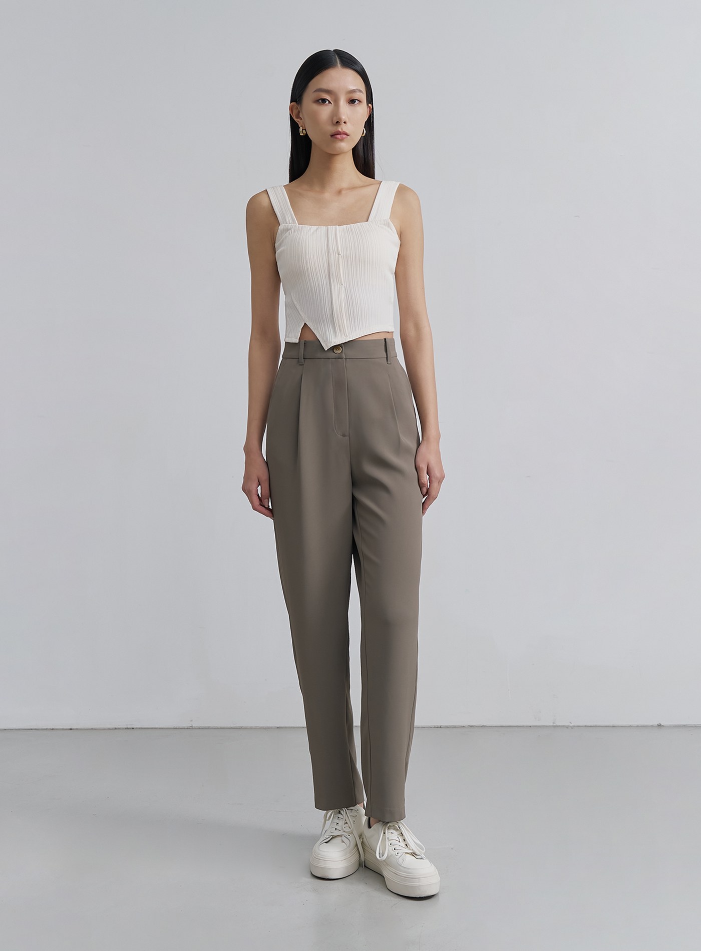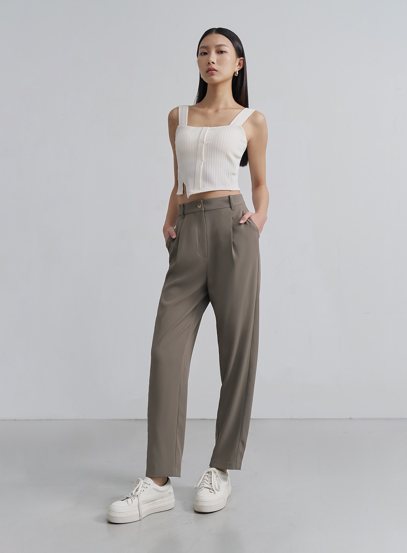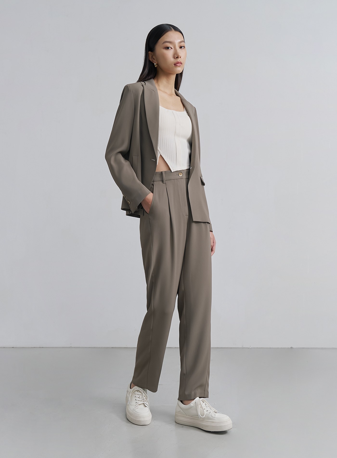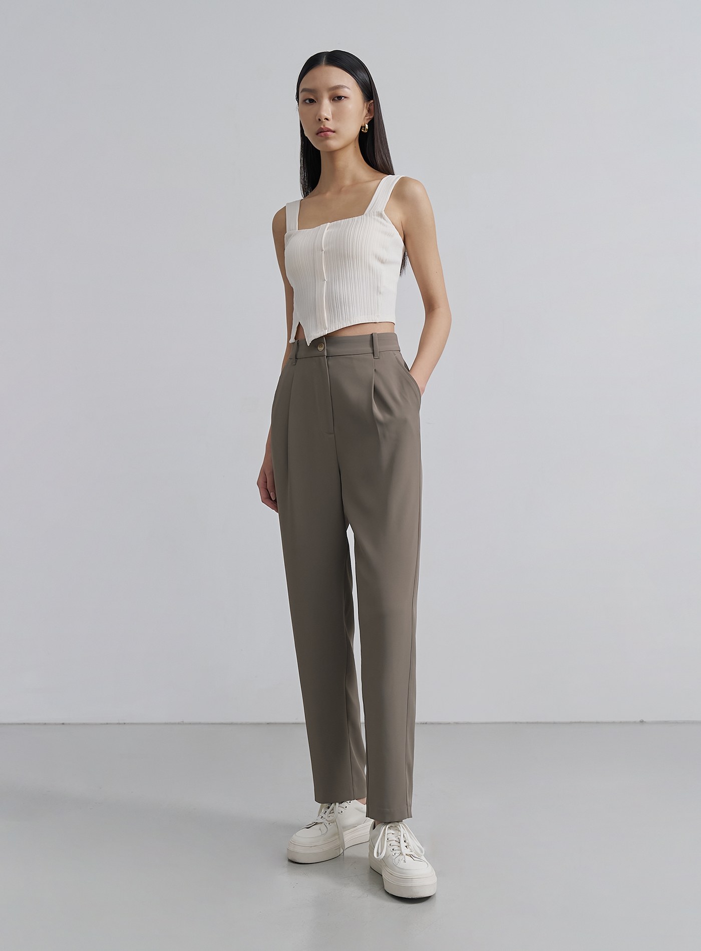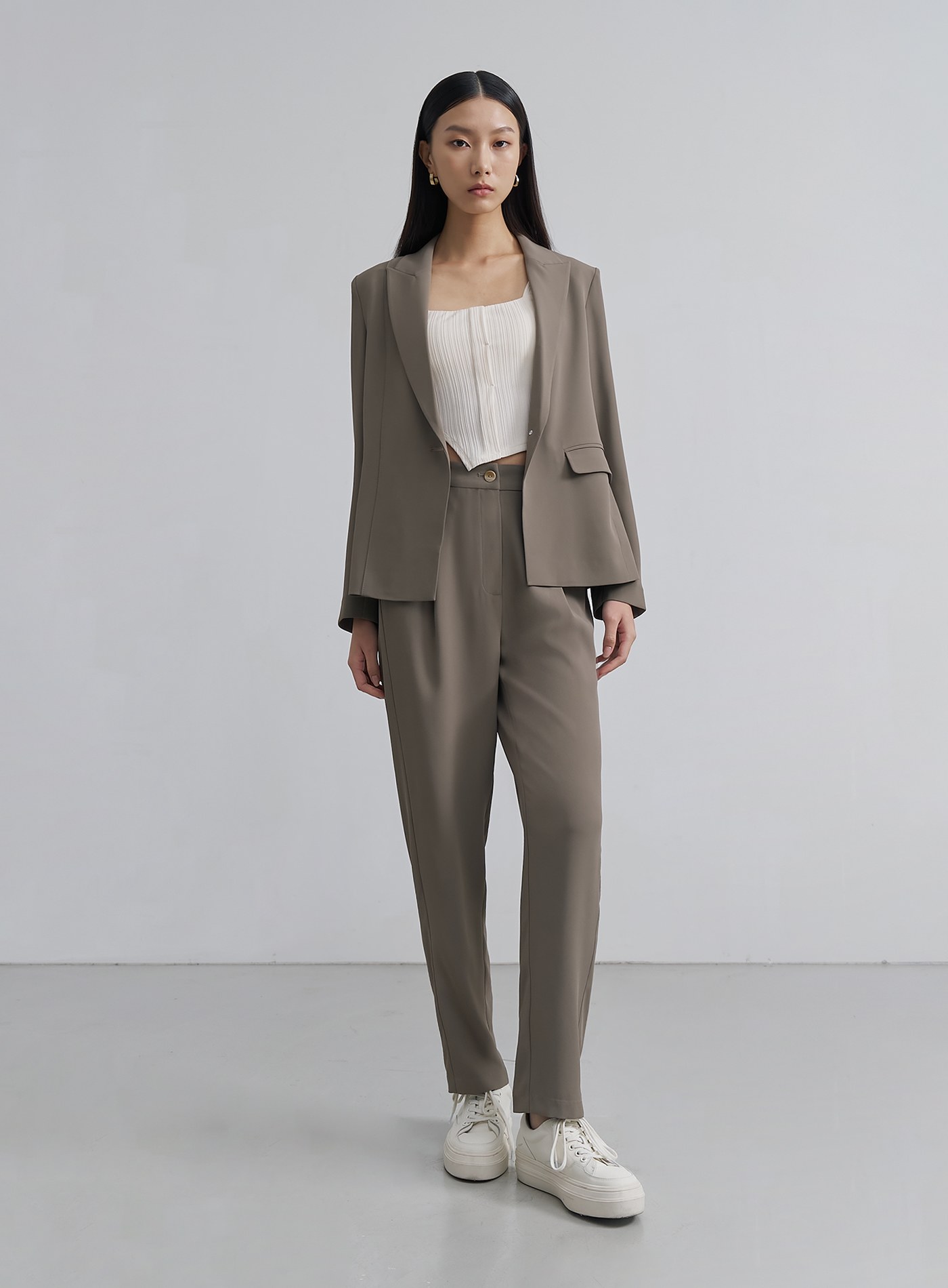 - 經典錐形九分西裝褲褲,正面壓褶設計