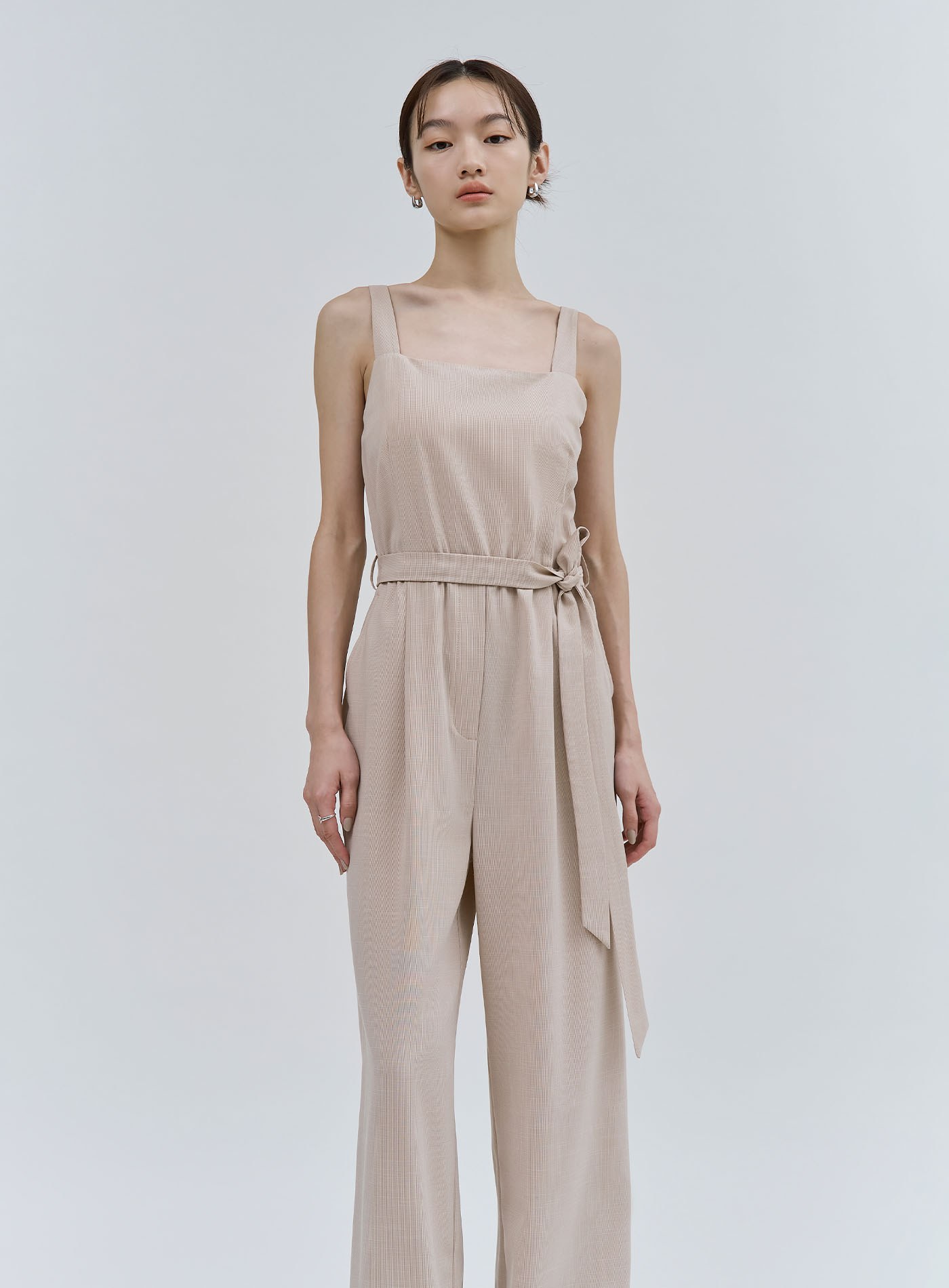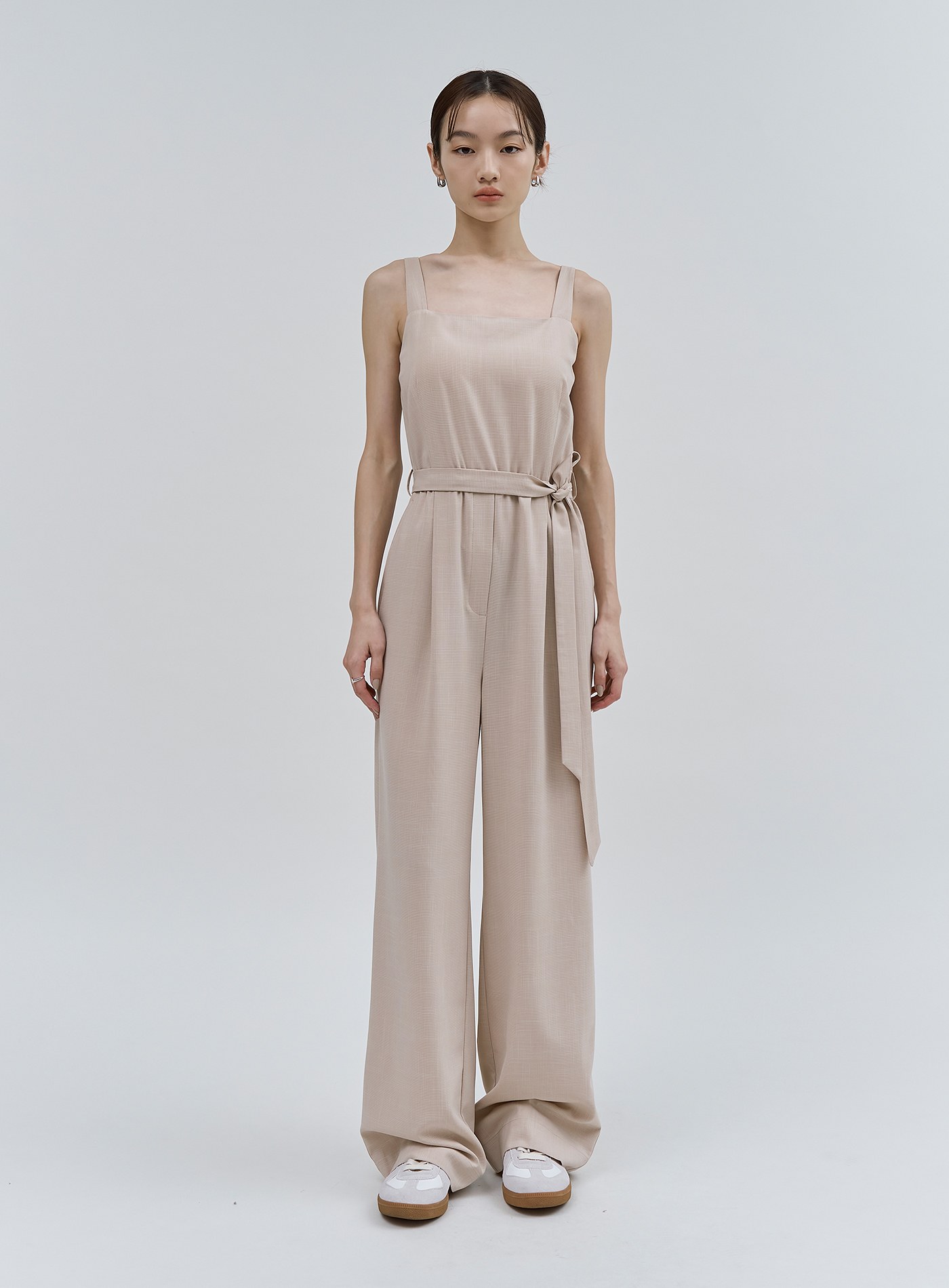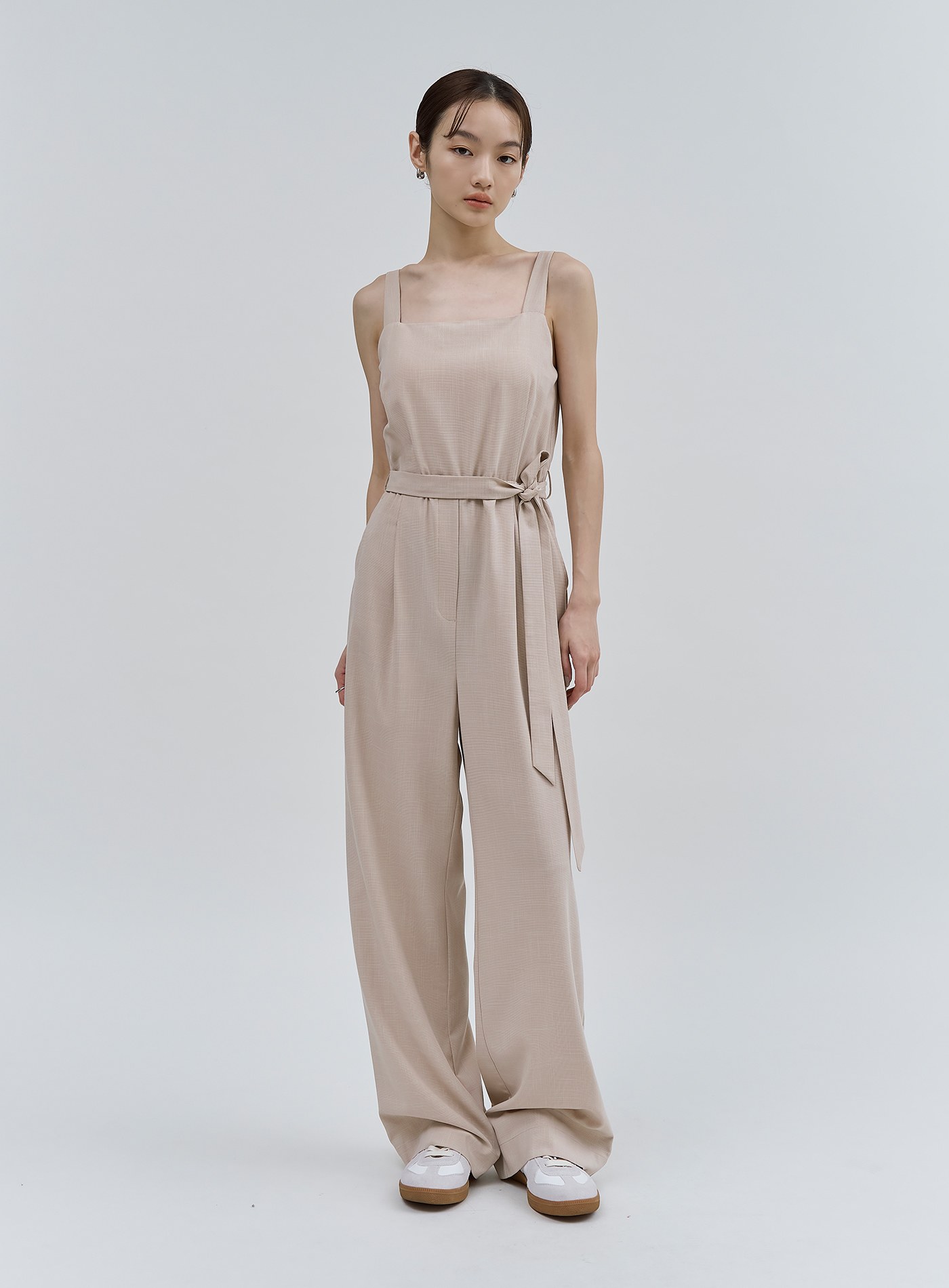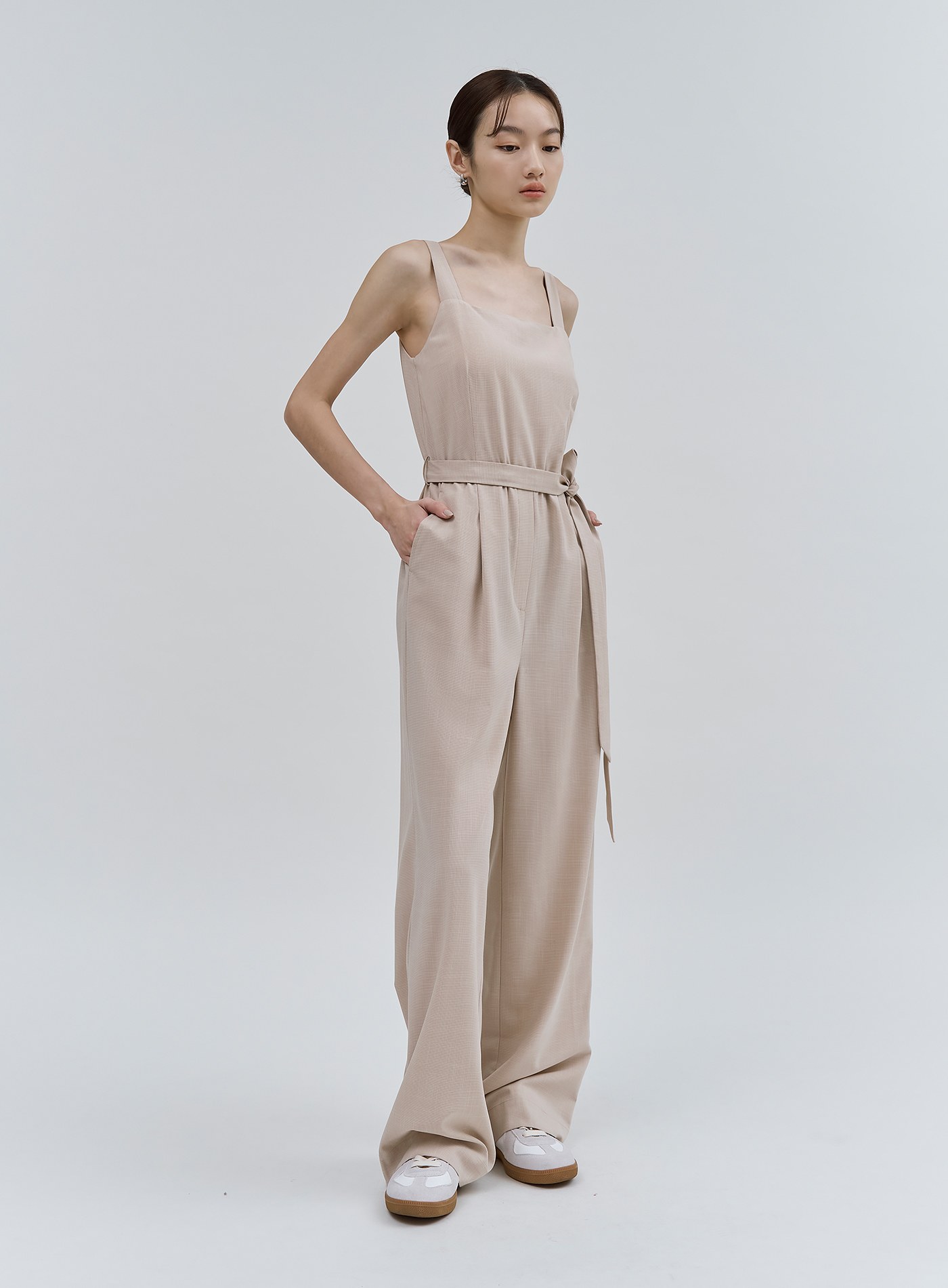 簡約俐落寬肩帶連身褲$111 USD