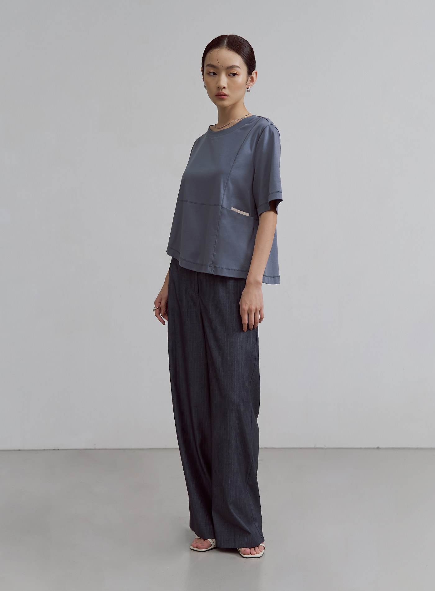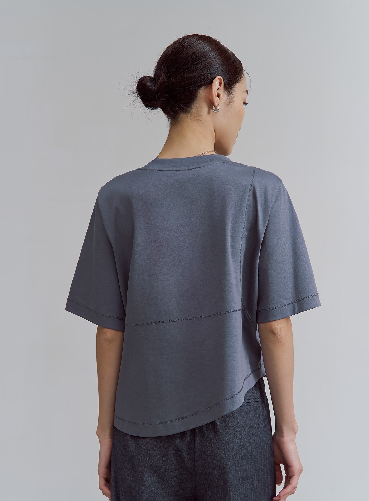 - 剪接切割運用裝飾爬線設計,為T恤增添造型感