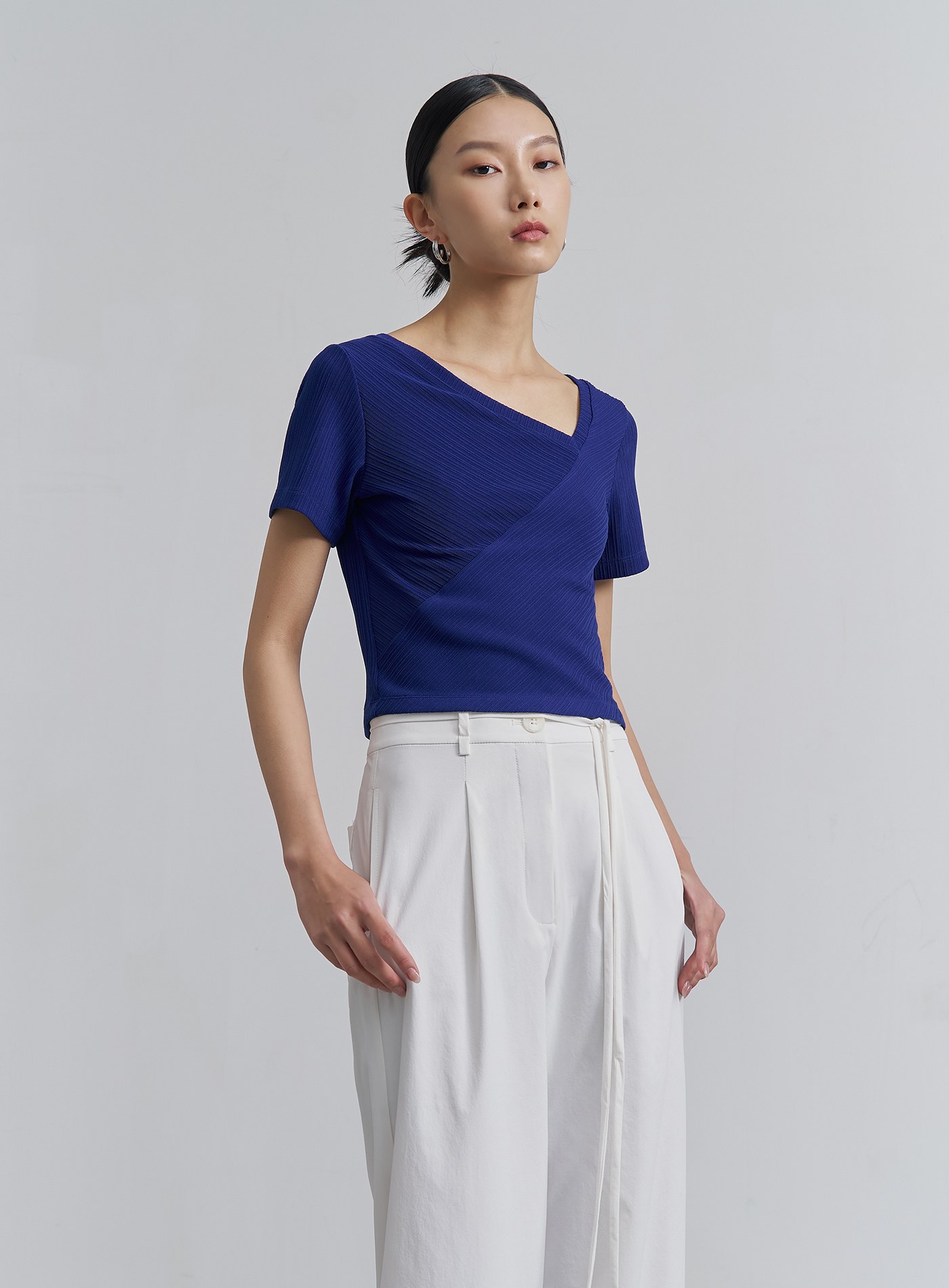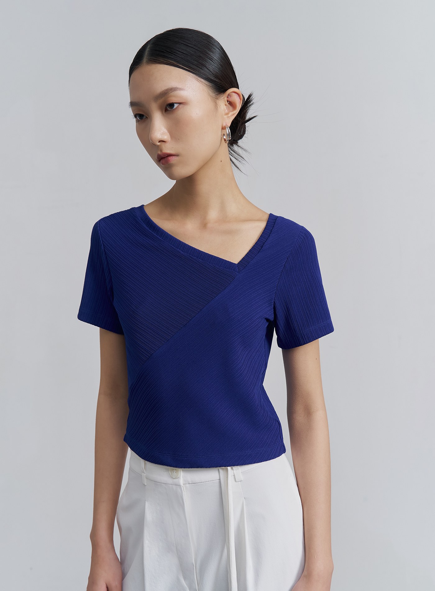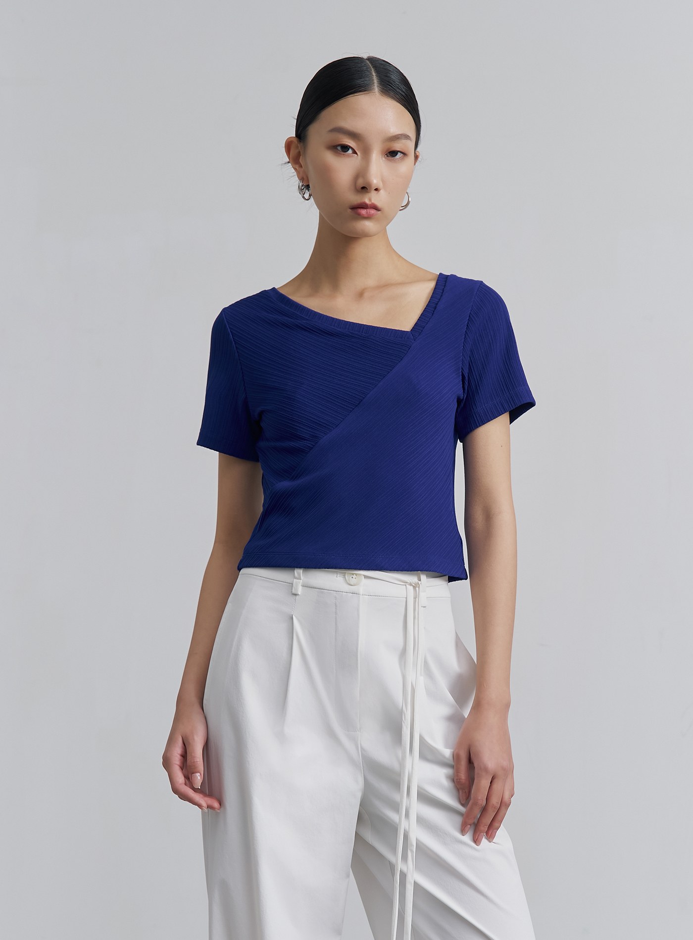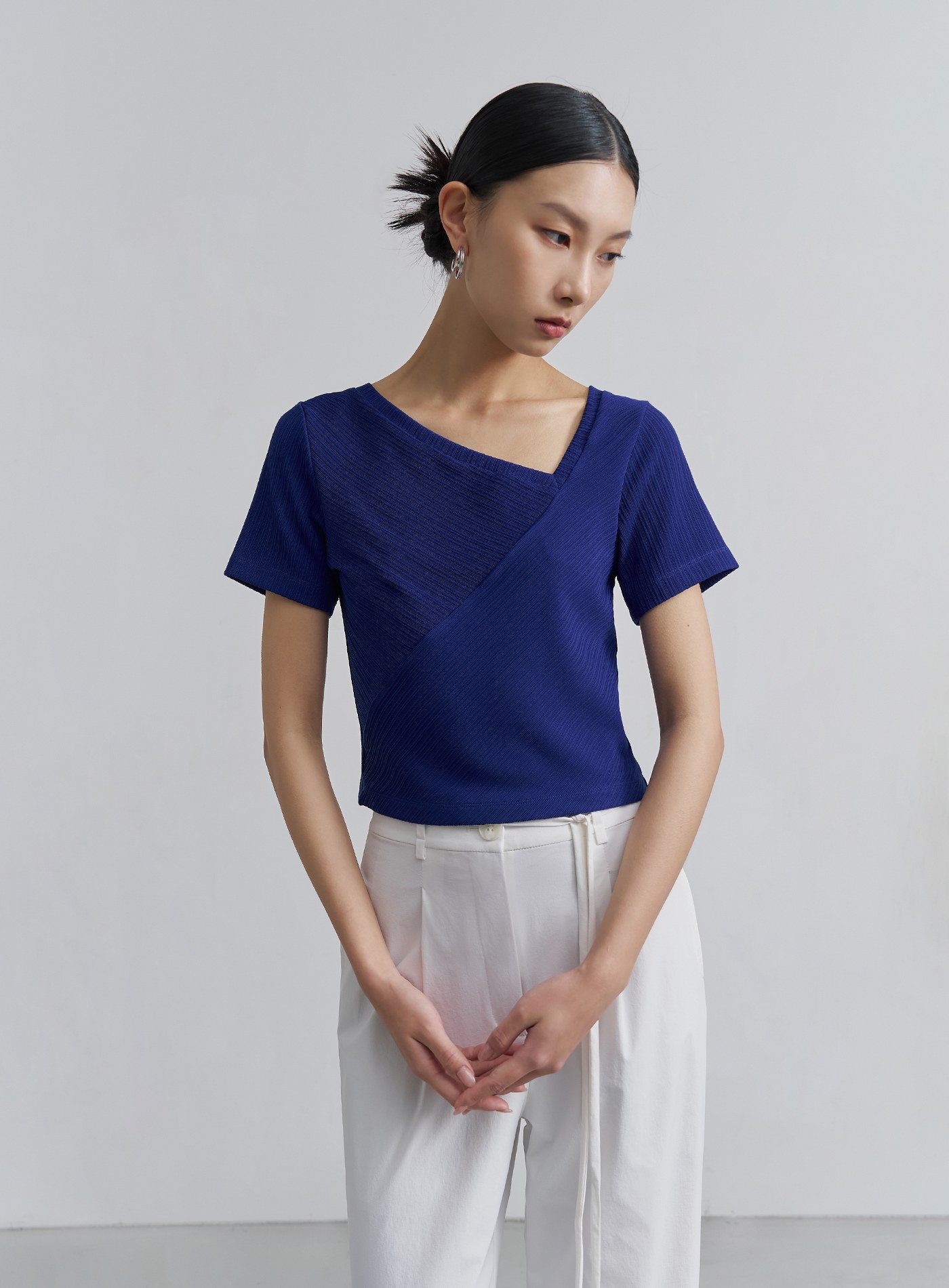- 合身T-Shirt剪裁,特殊斜領設計,增添造型感