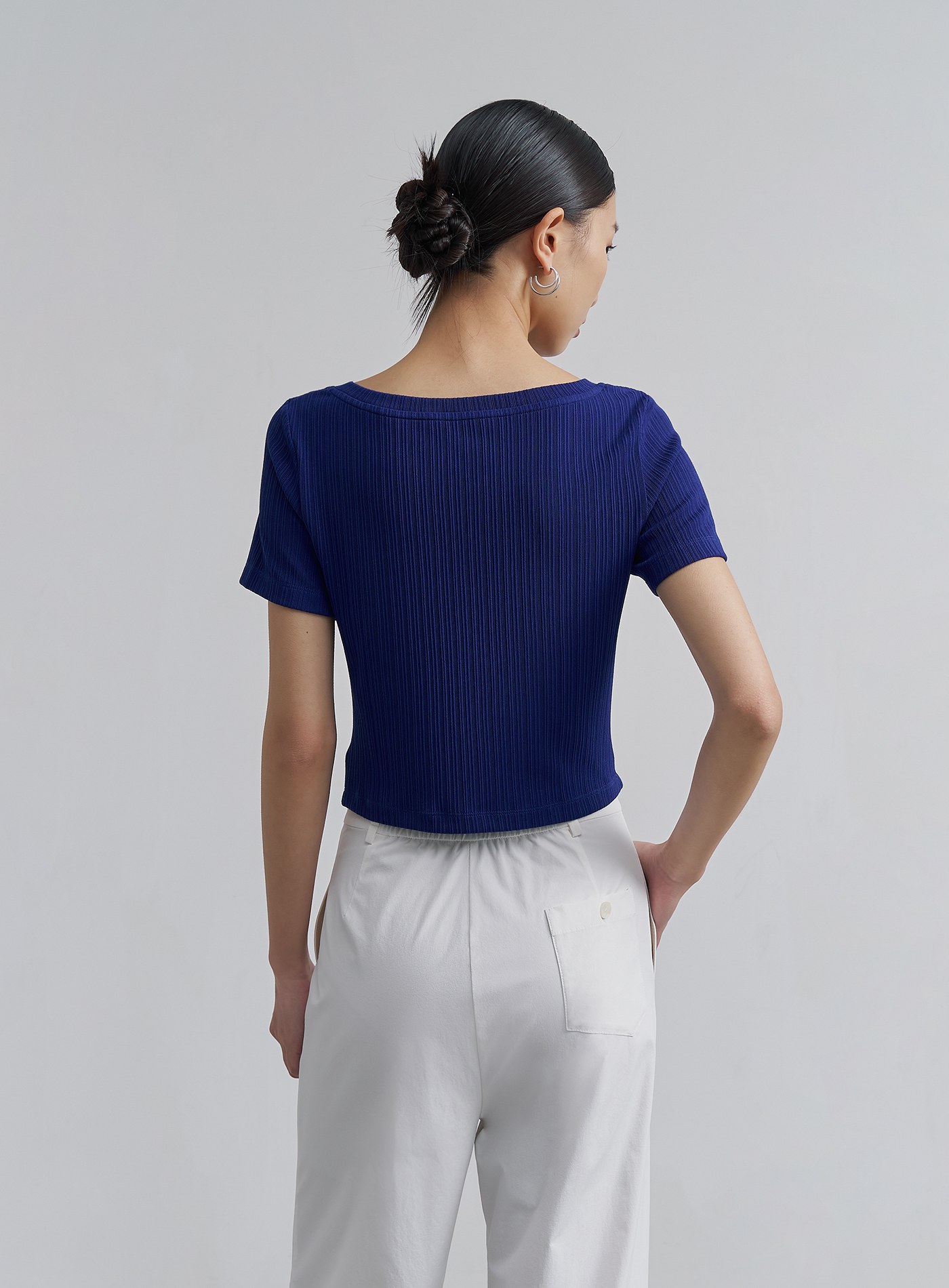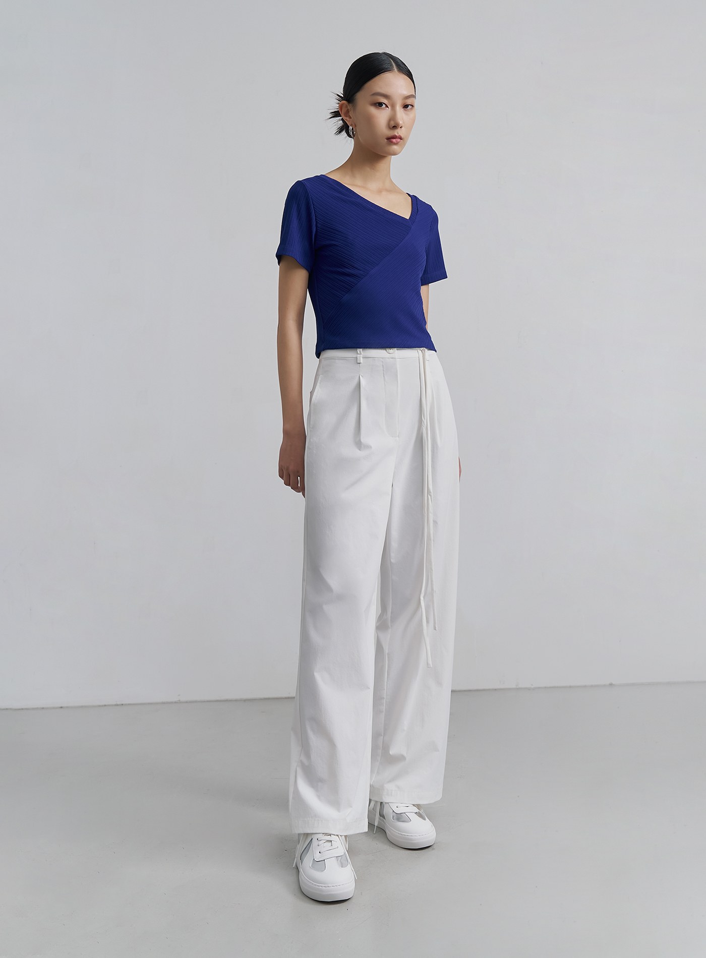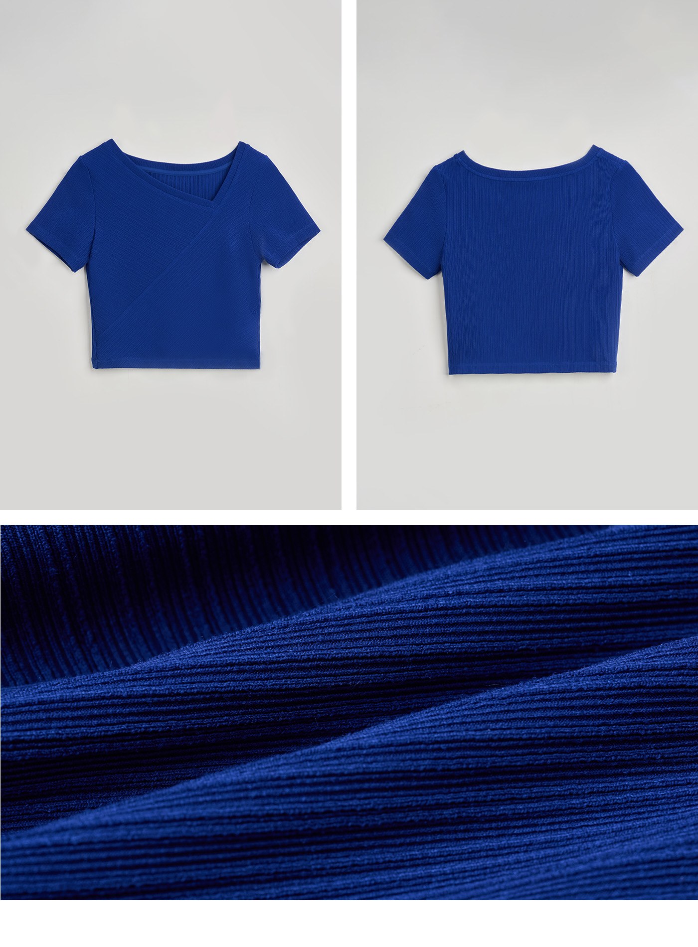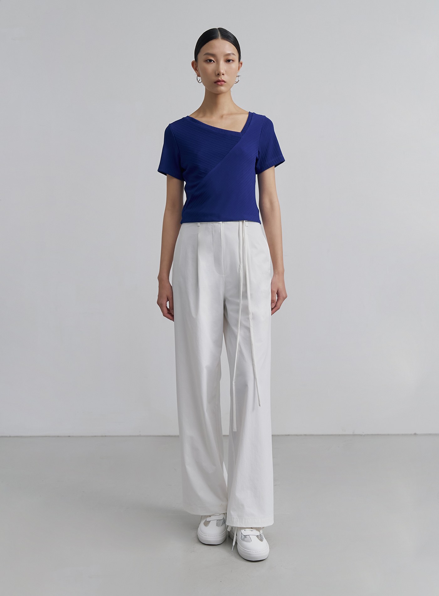 - 合身T-Shirt剪裁,特殊斜領設計,增添造型感