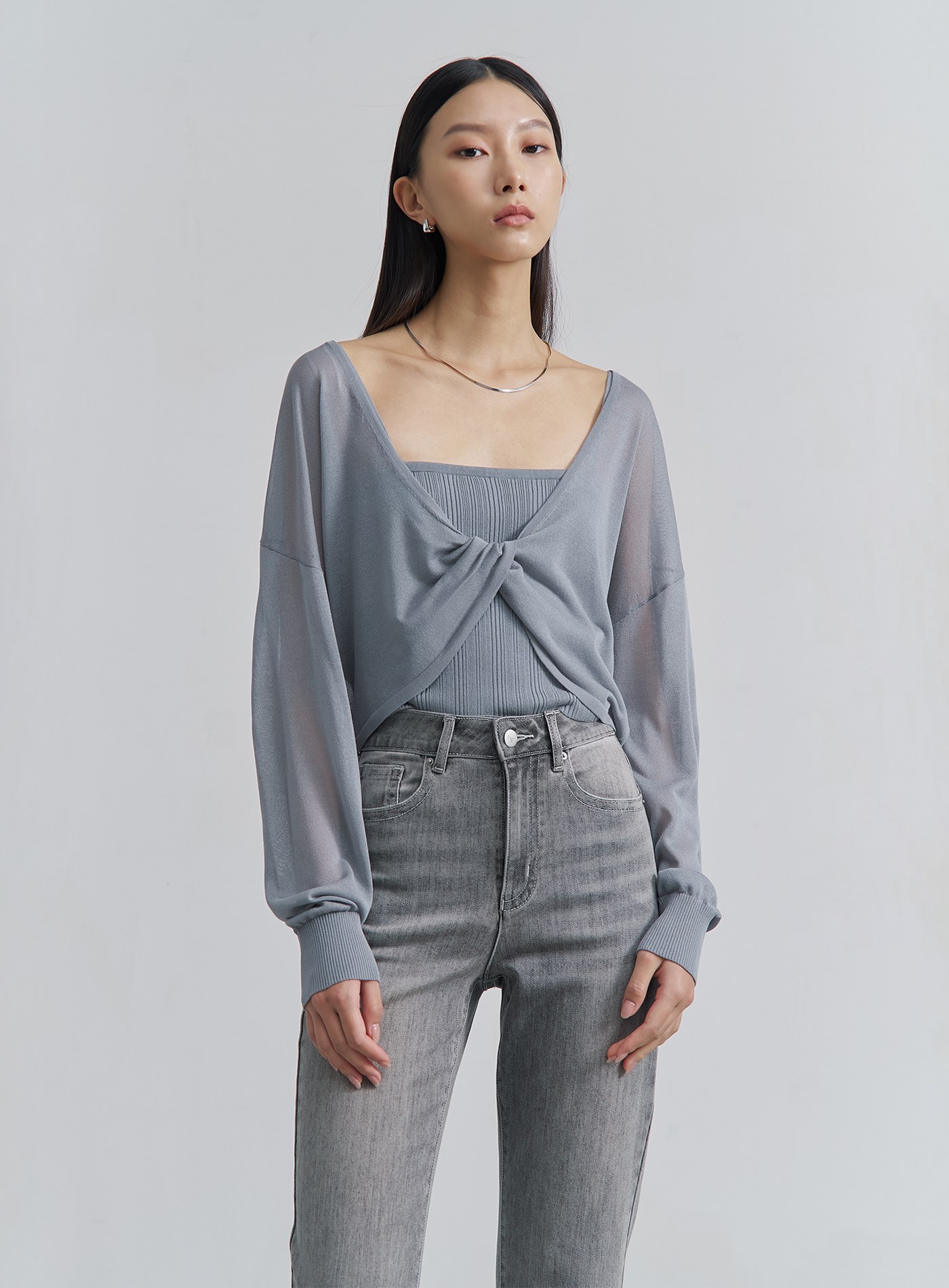 • 亦可與 '扭轉開襟雙面穿針織上衣' 搭配成套