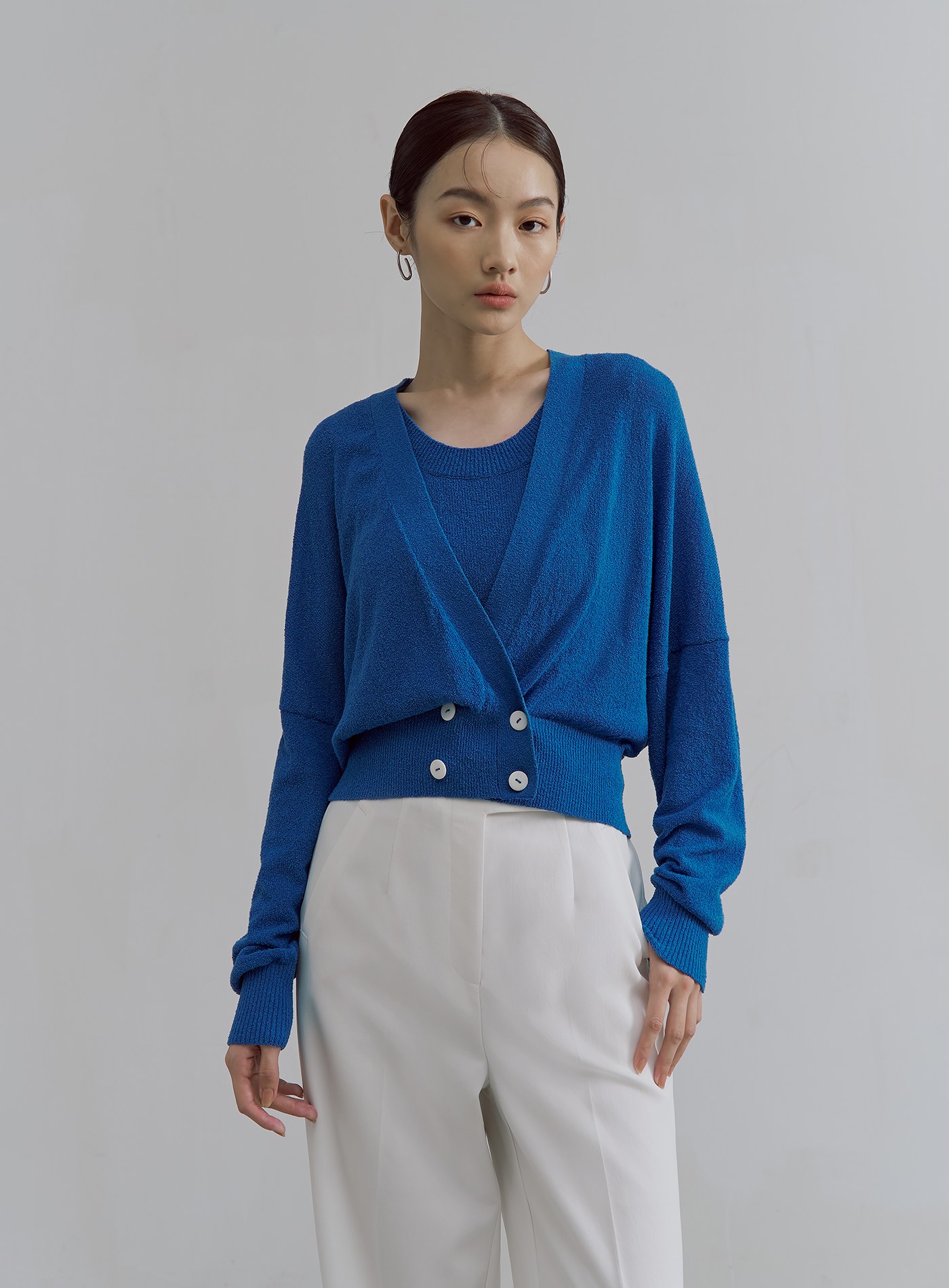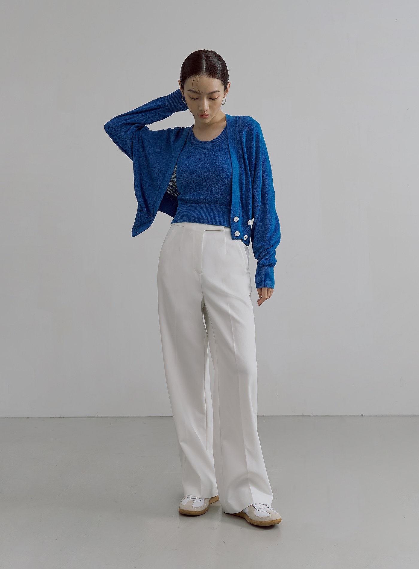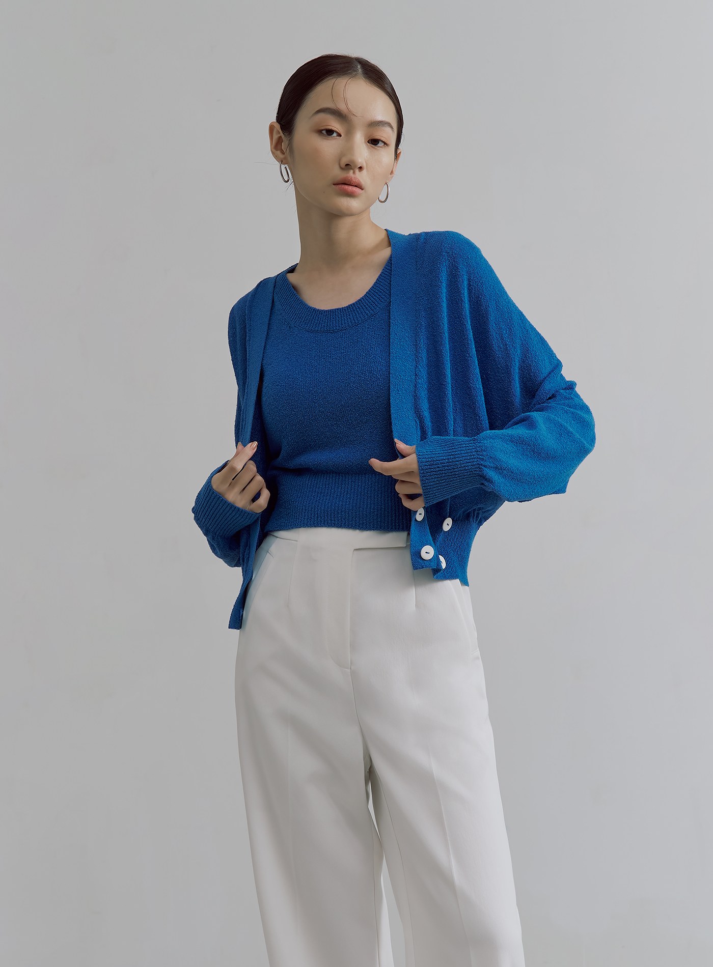 - 微寬鬆版型,可搭配'肌理感雙面穿針織背心'