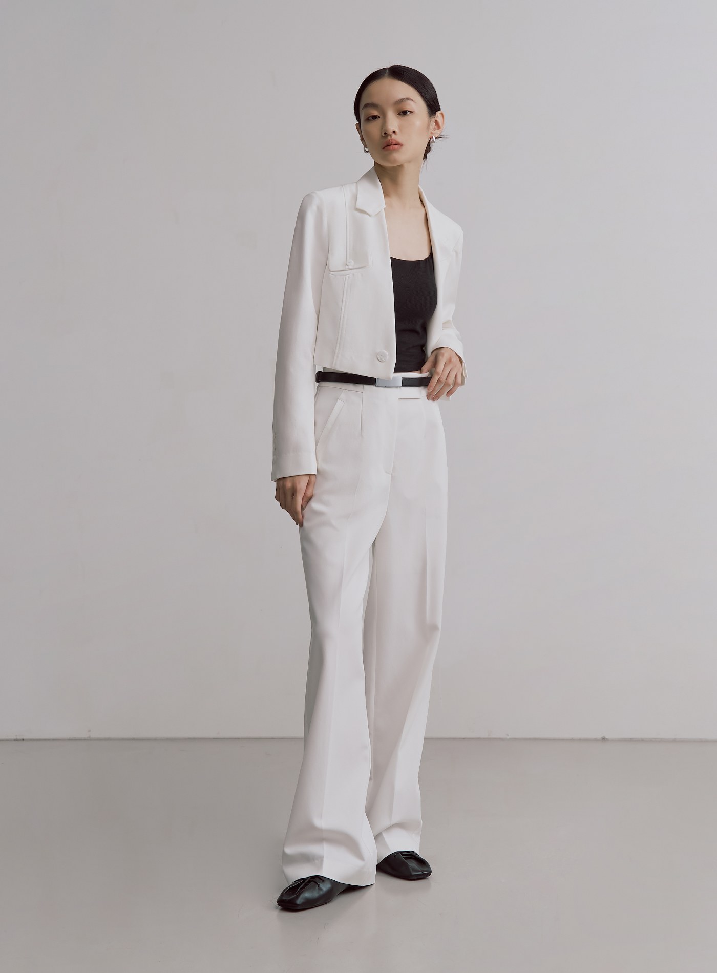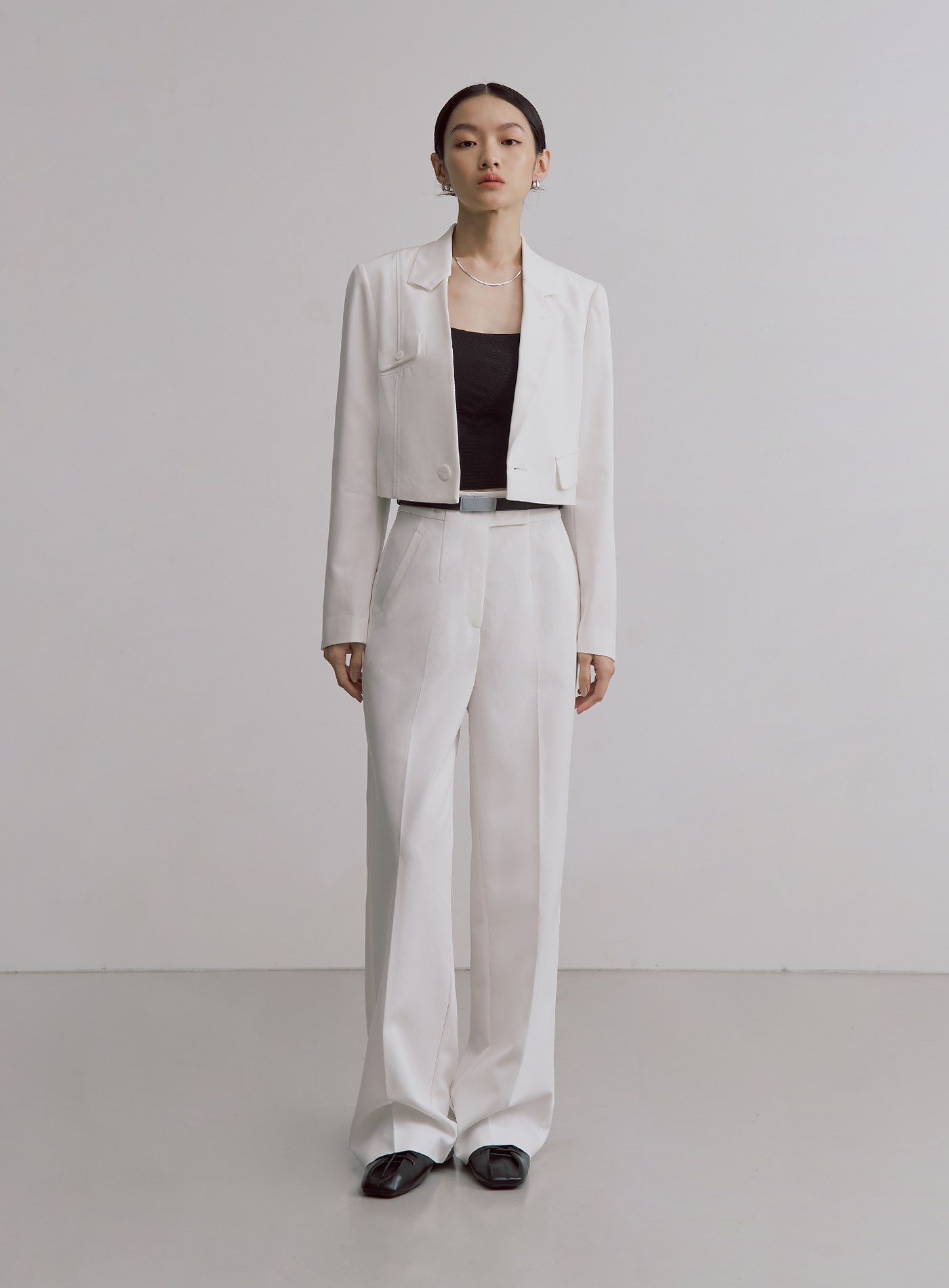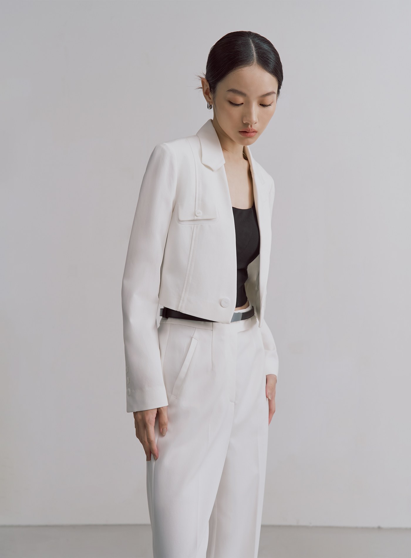 - 短版西裝版型,直順剪裁,展現俐落精神氣息