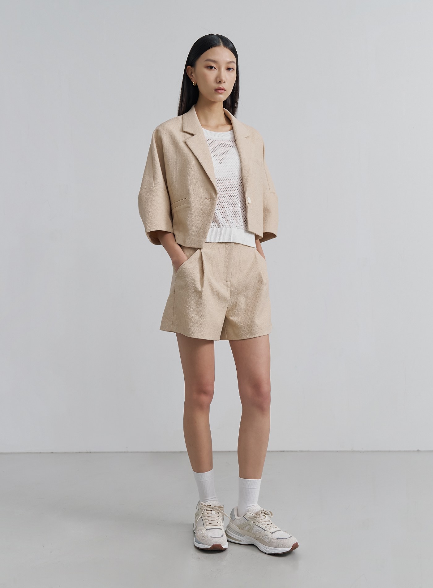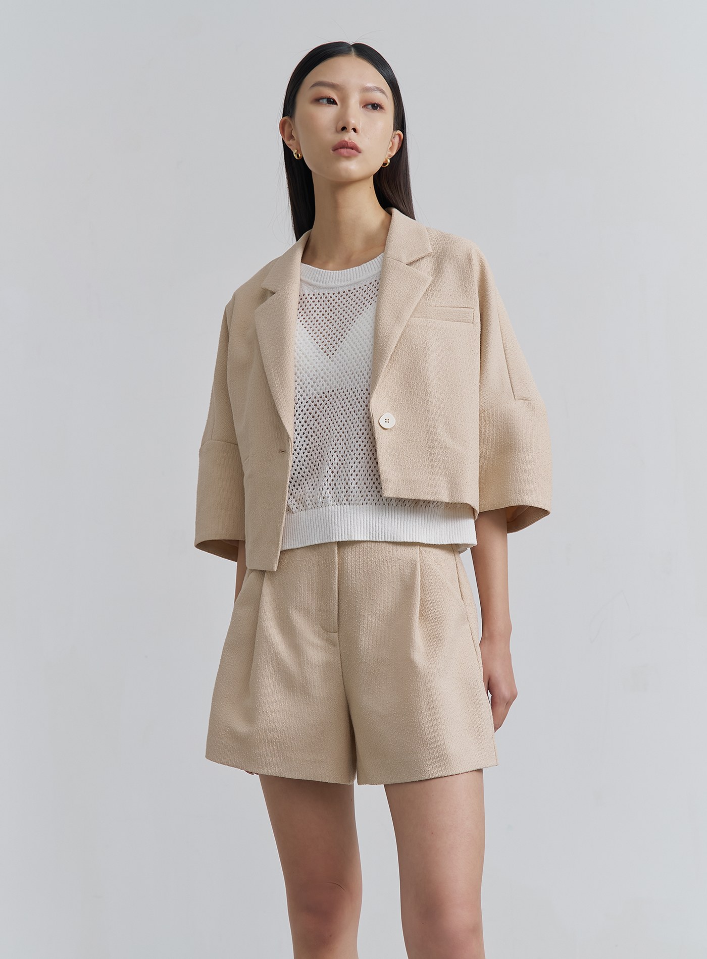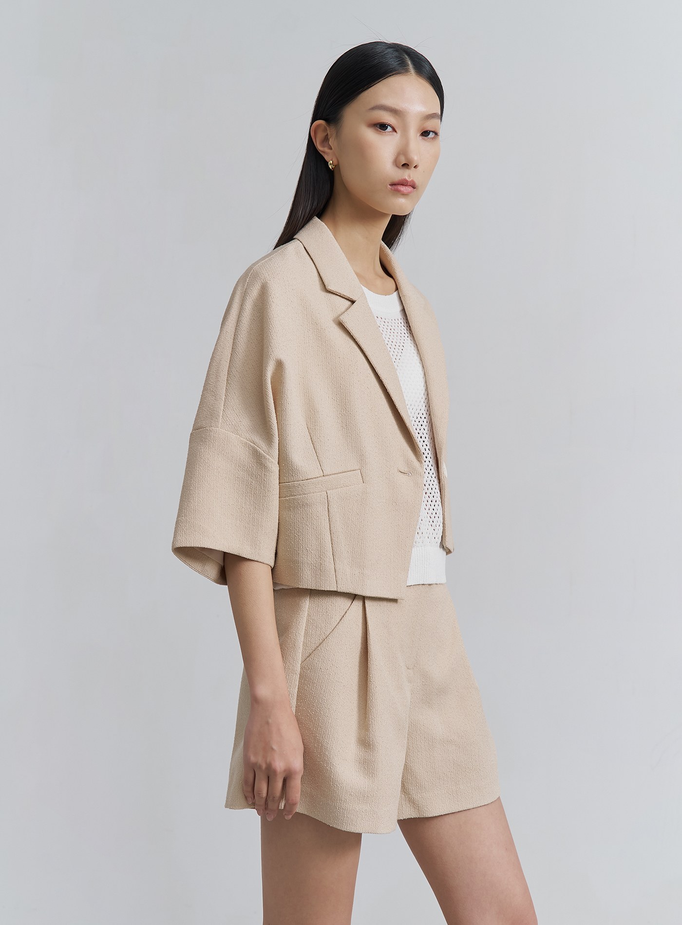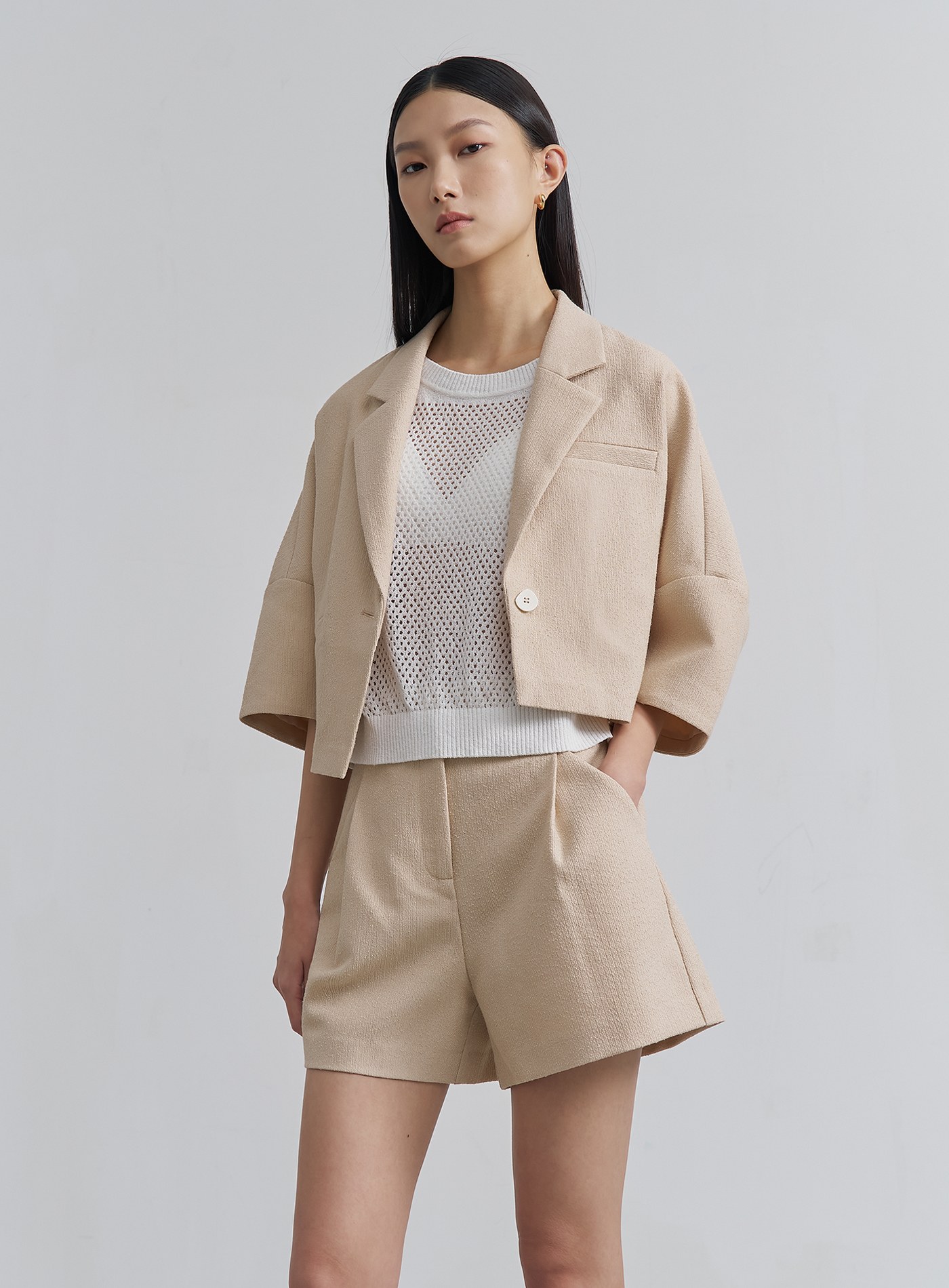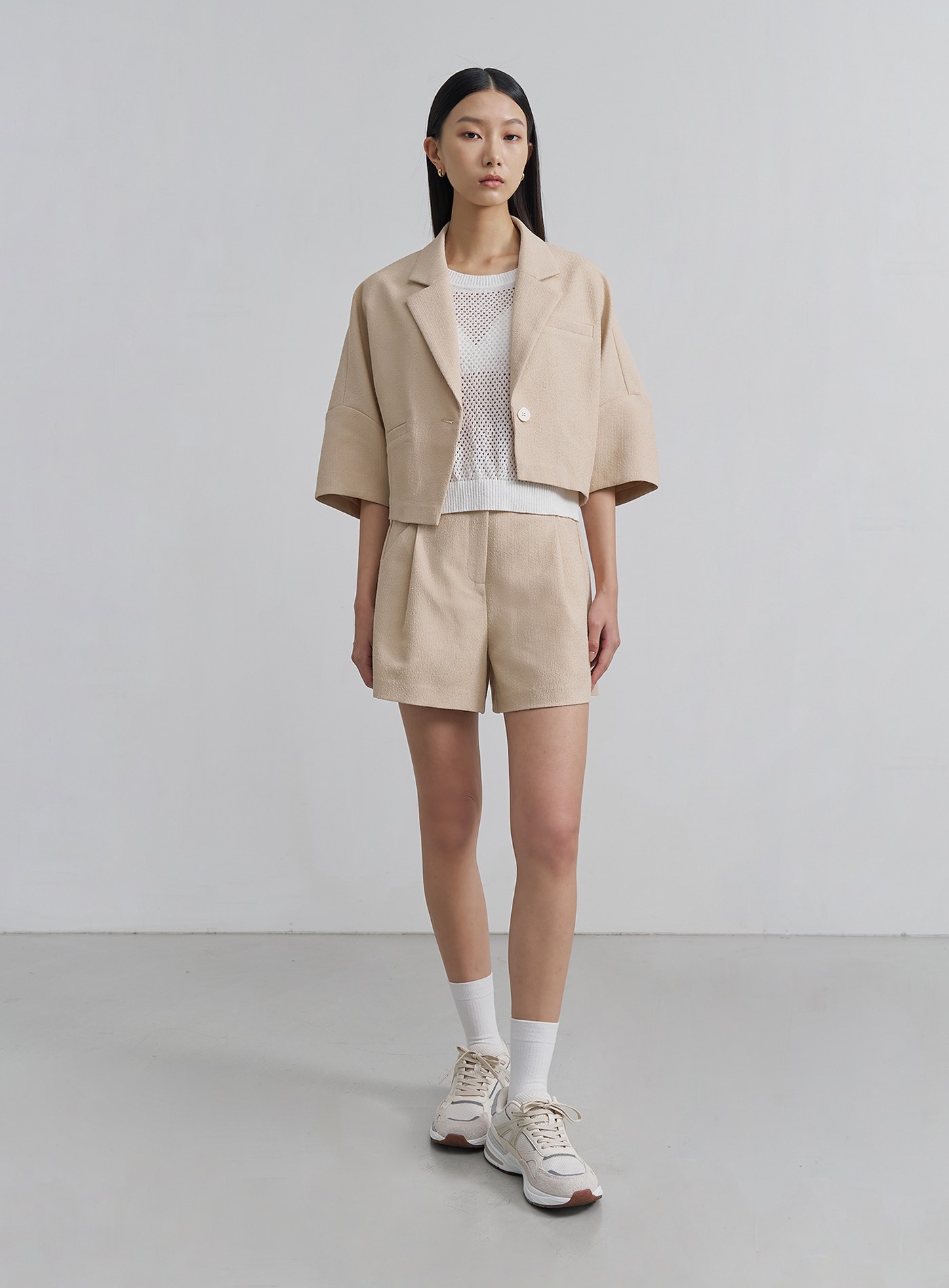 - 可與 '肌理感寬版打褶短褲‘ 搭成套裝
