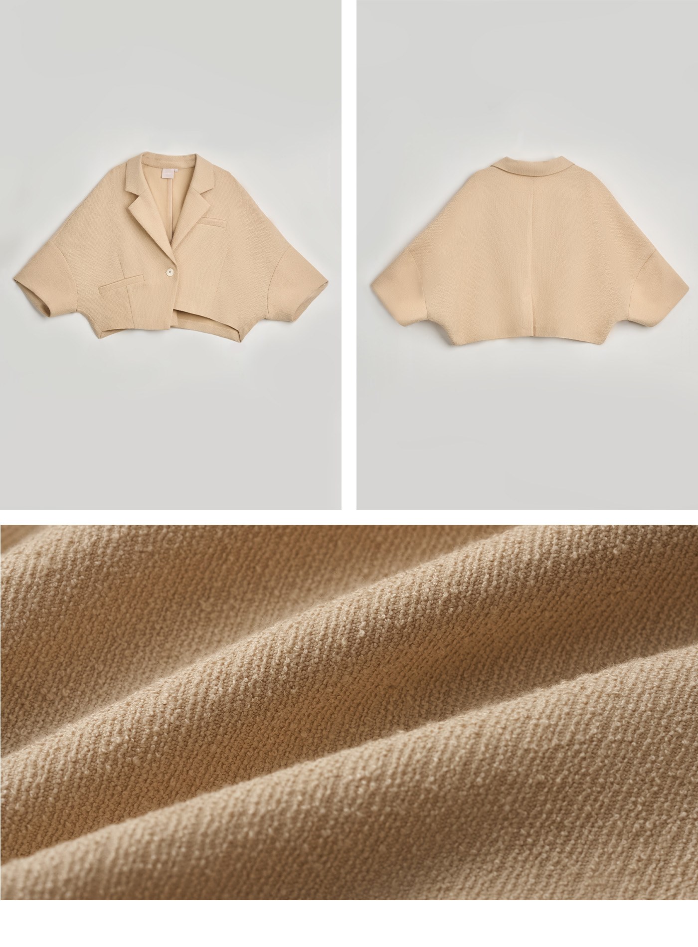 - 選用肌理感提織面料,有質感且不易皺