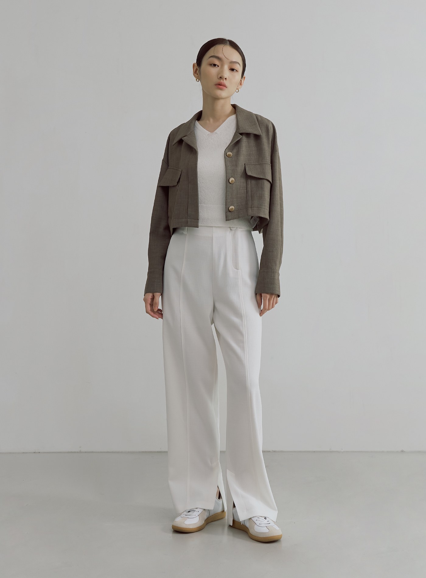- 可與 '花呢格紋側門襟直筒長褲‘ 搭成套裝