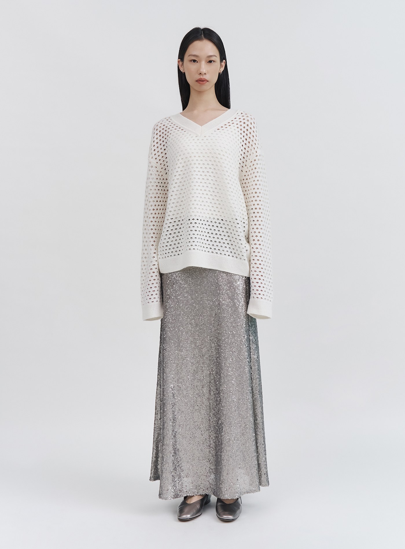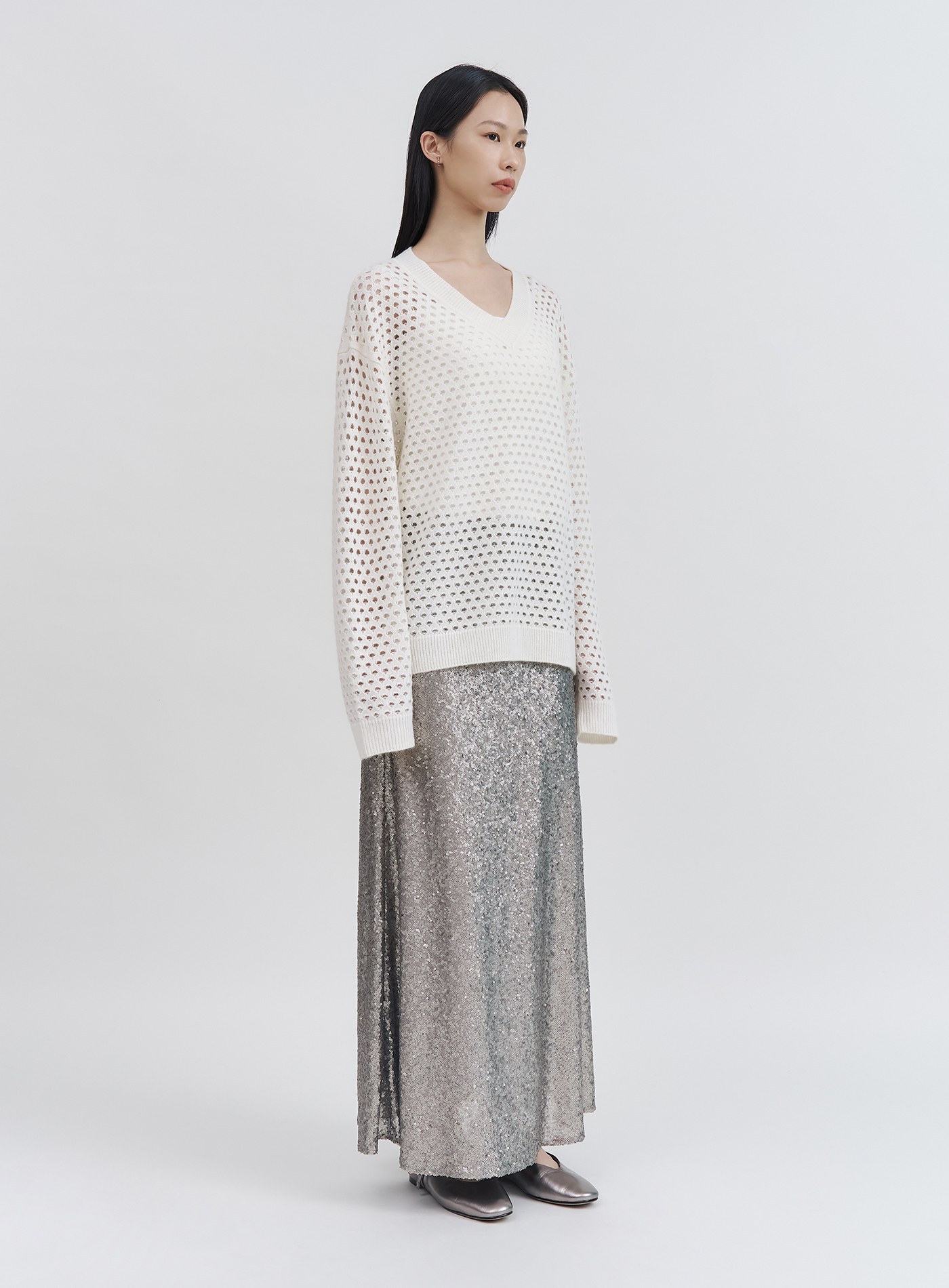 - 珠光金屬感紗線混織,面料蓬鬆毛羽感