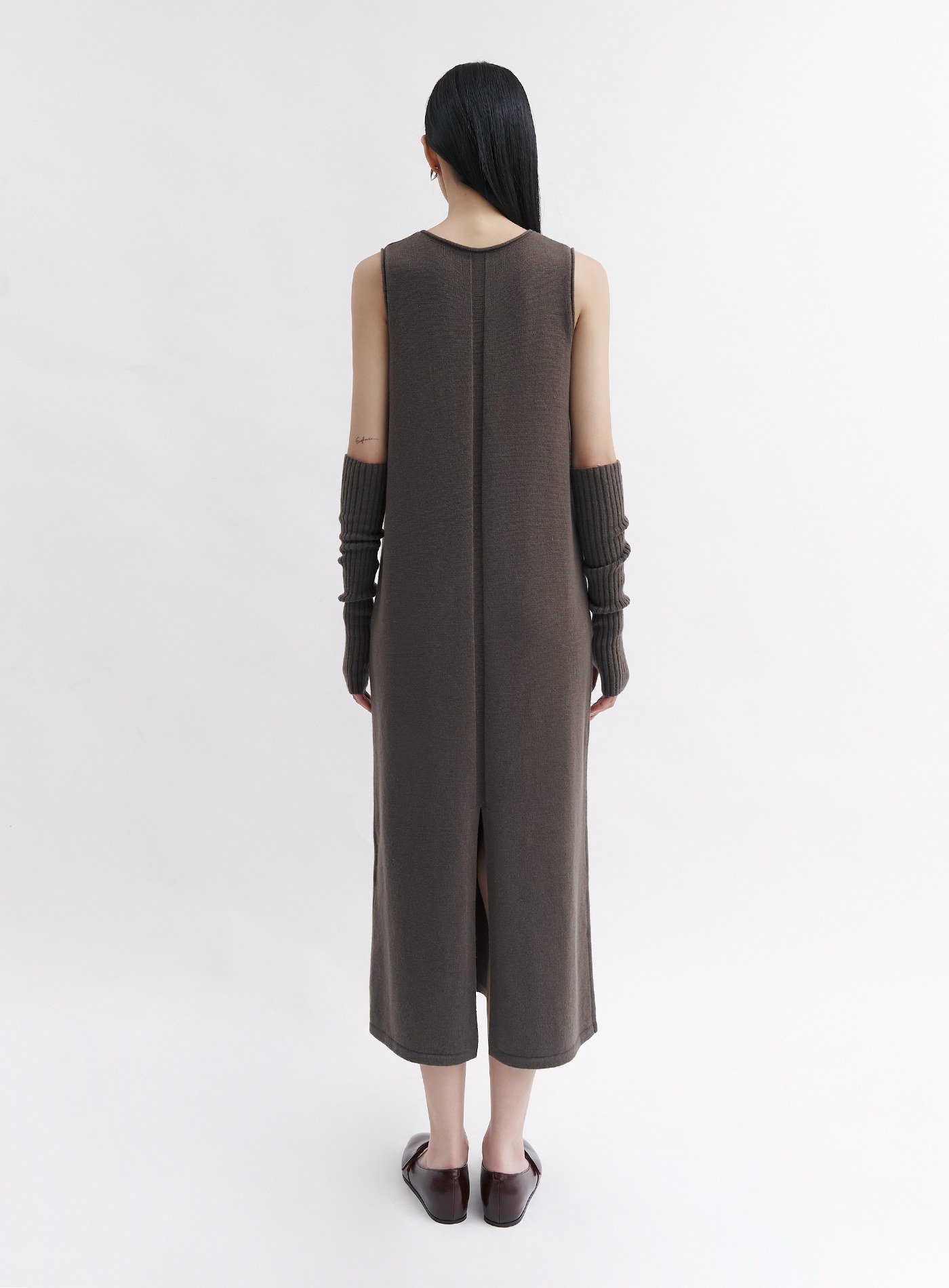 - 後中心雙褶設計,下擺開岔