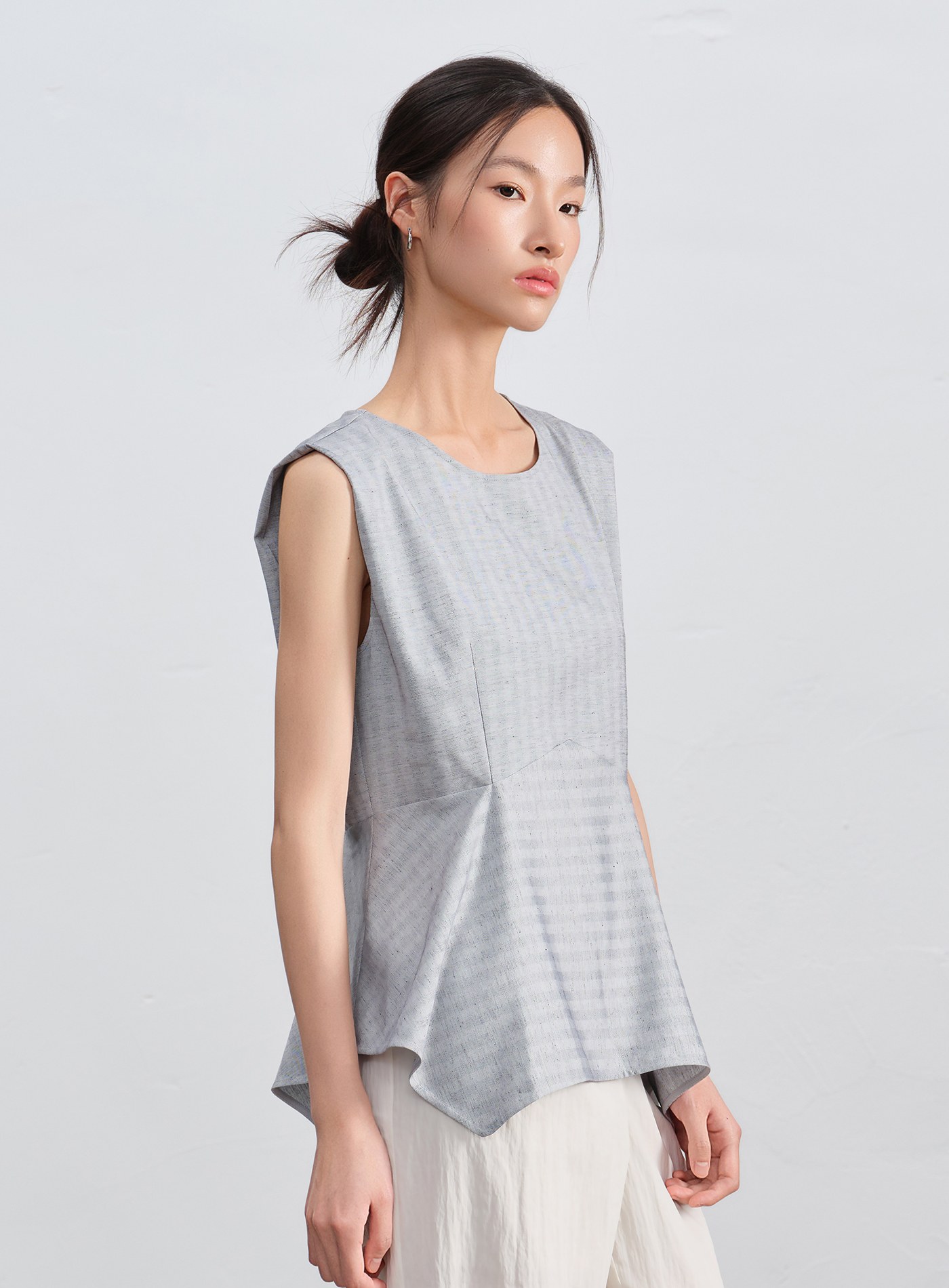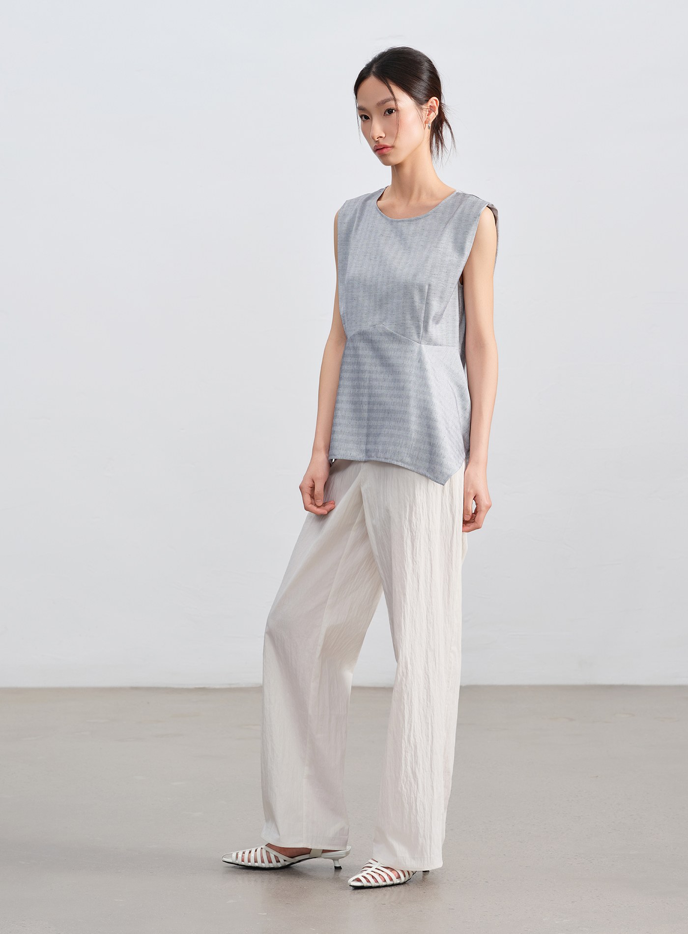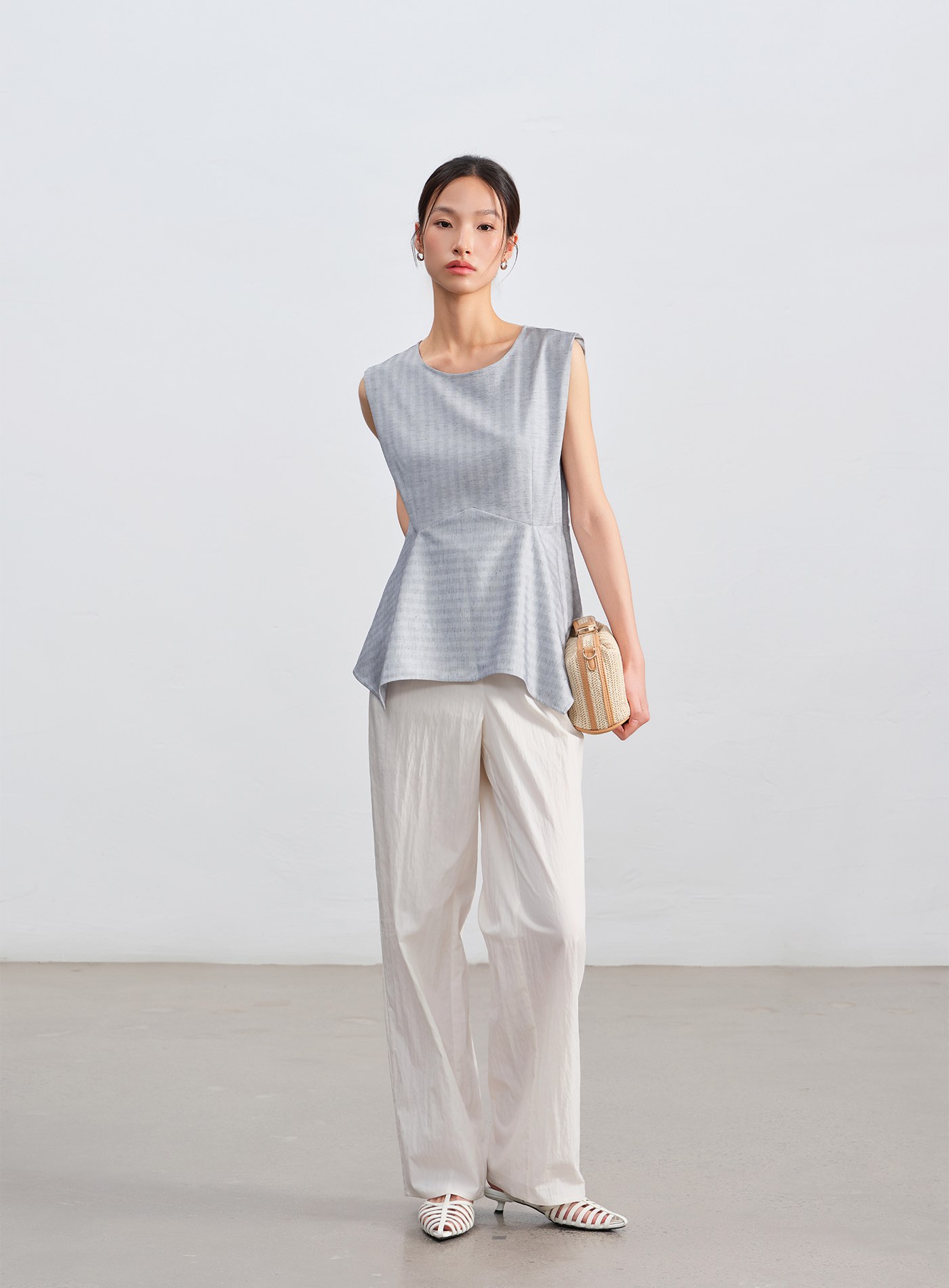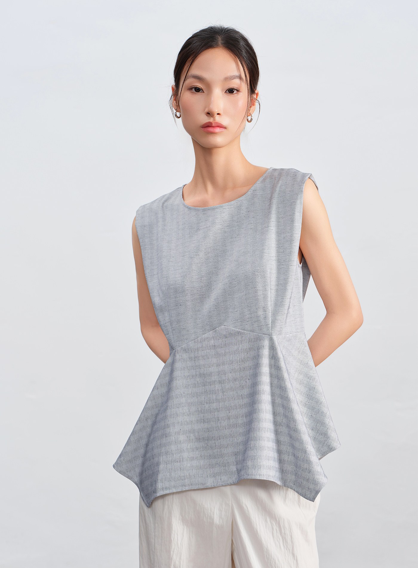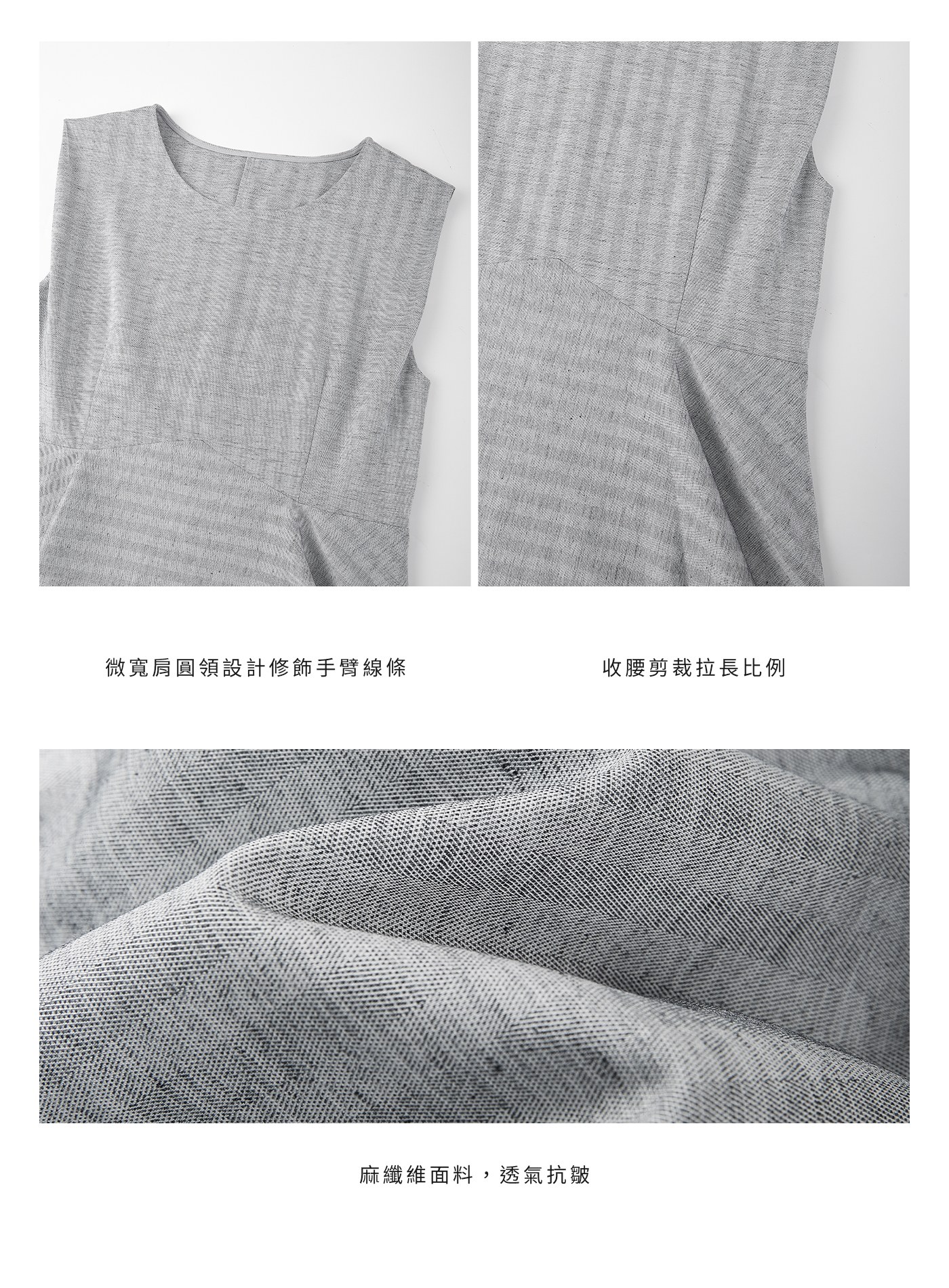 - 微寬肩圓領設計修飾手臂線條,收腰剪裁拉長比例