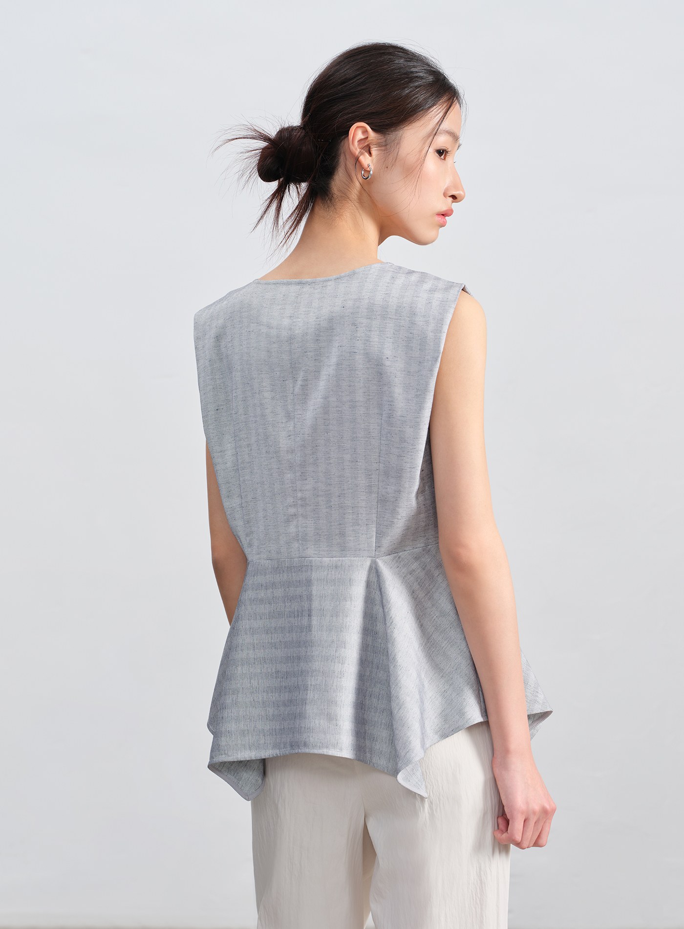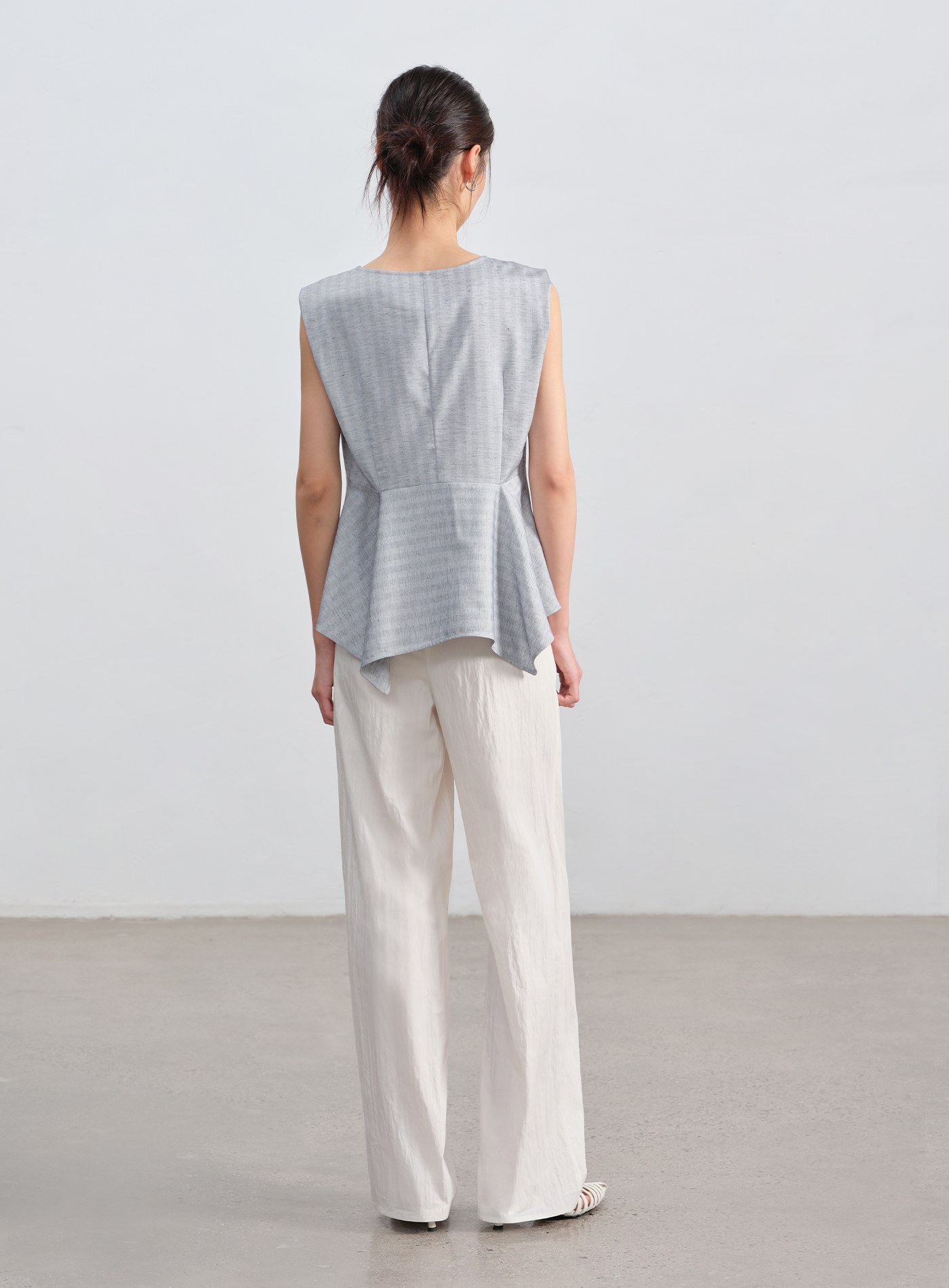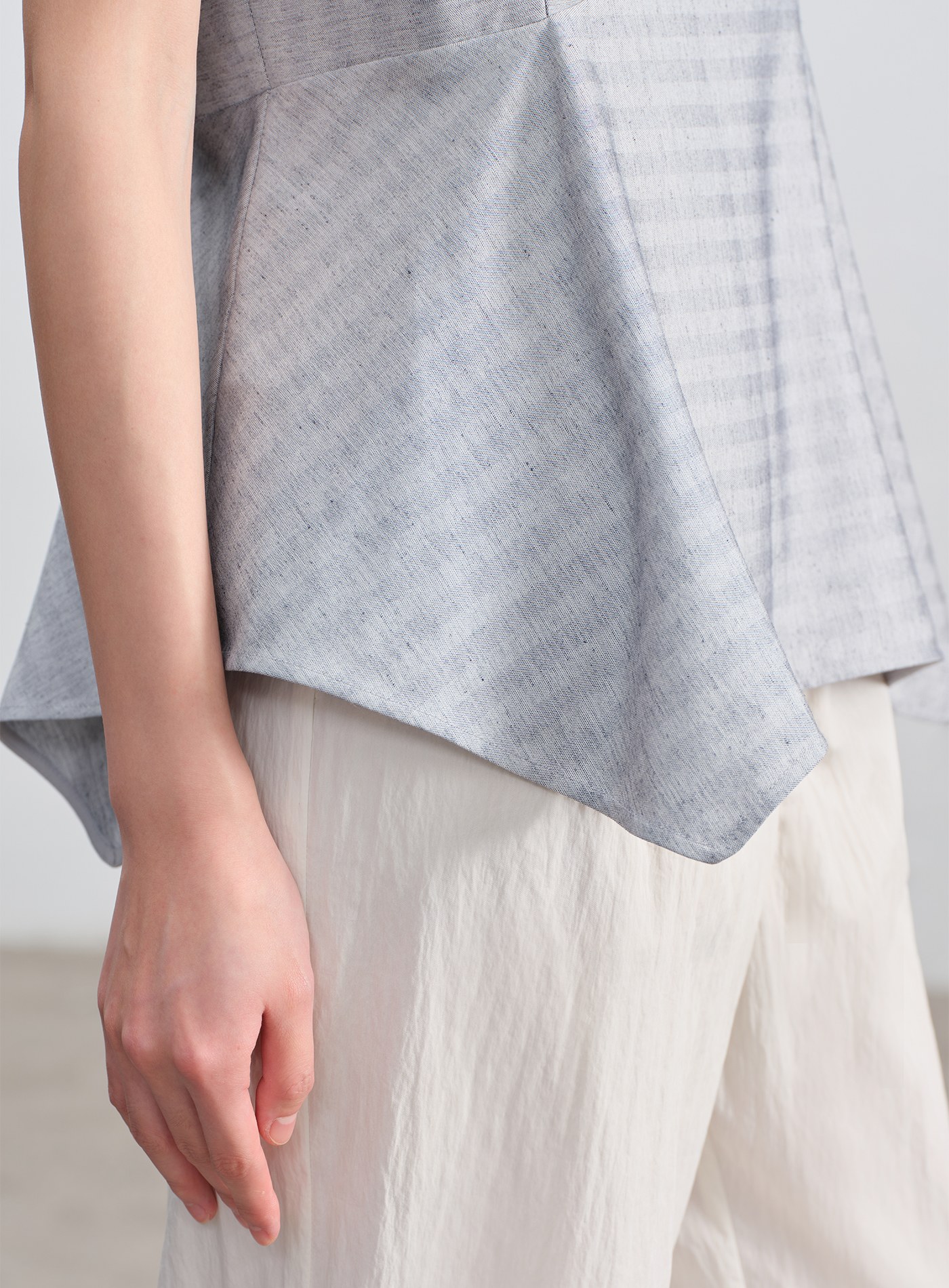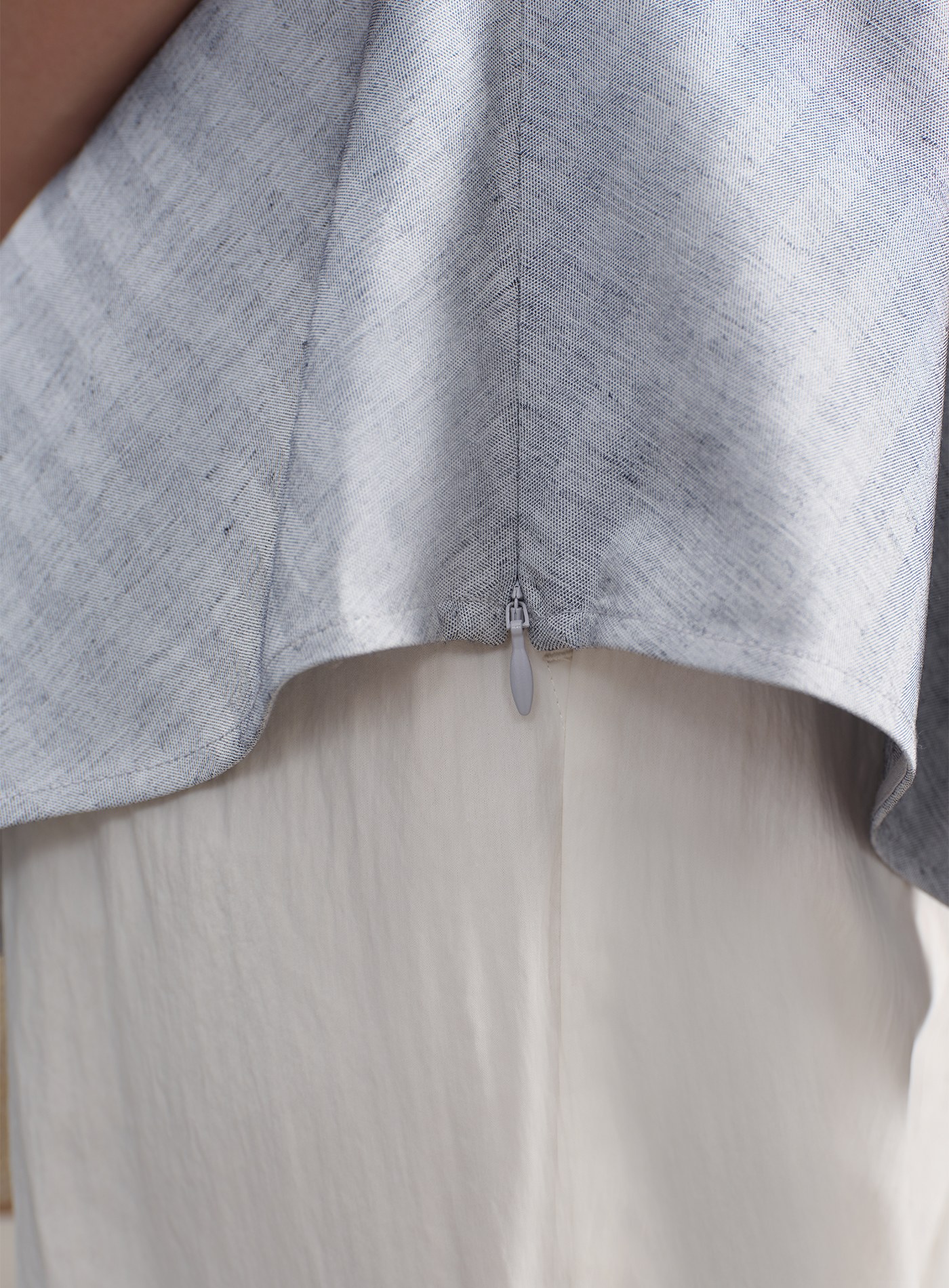 - 不對稱下擺增添造型層次,條紋魚骨紋理低調優雅