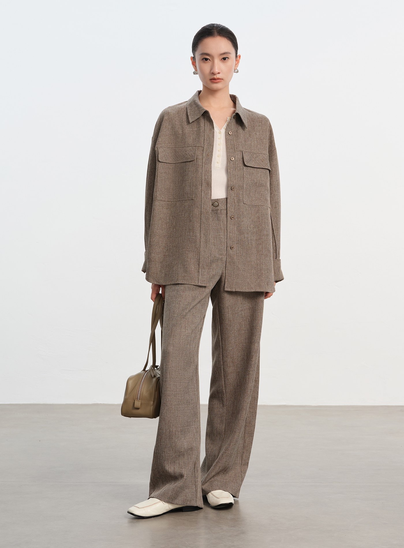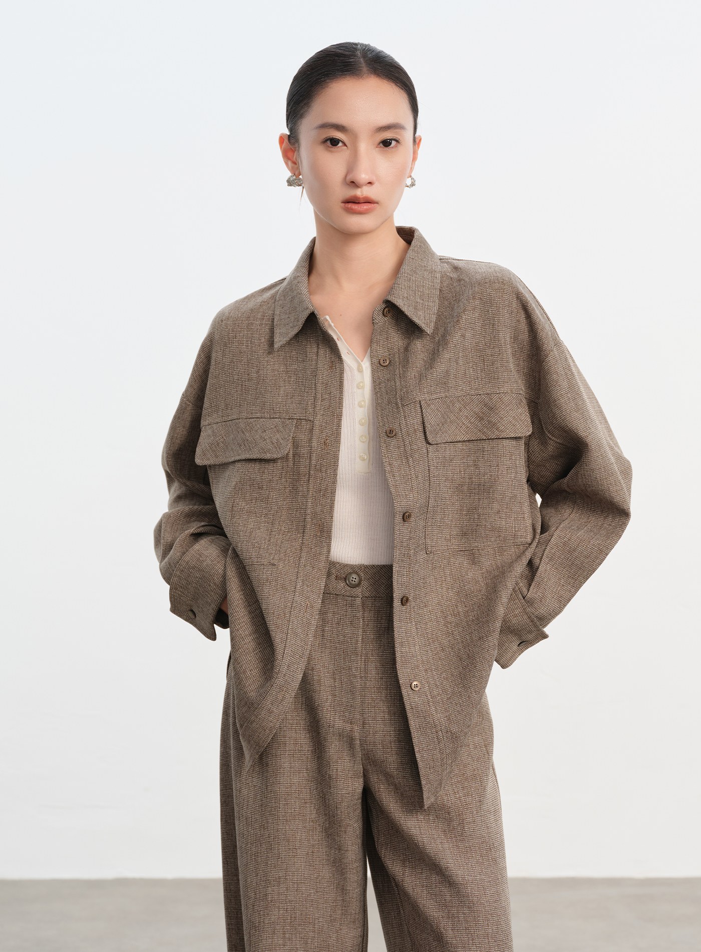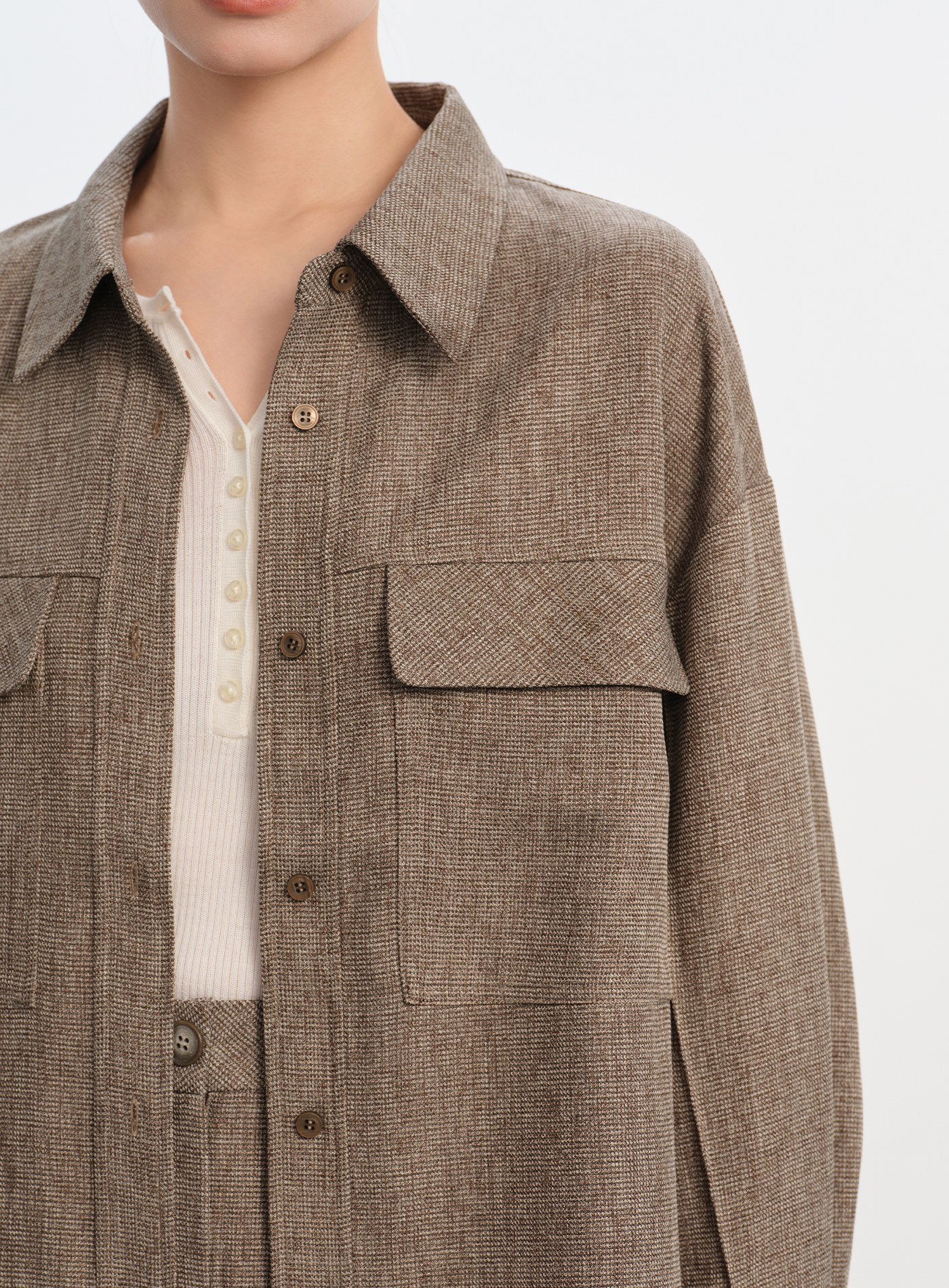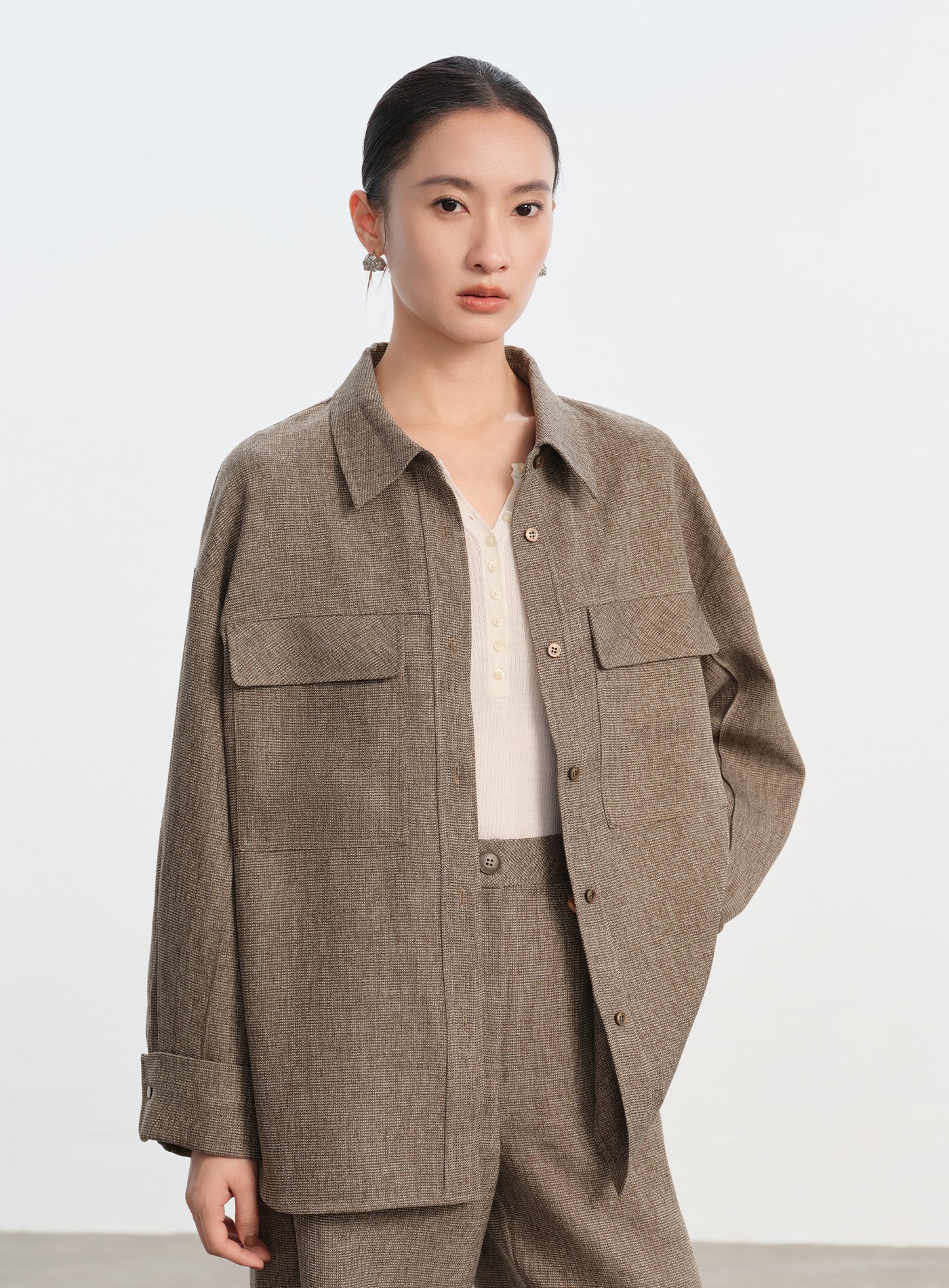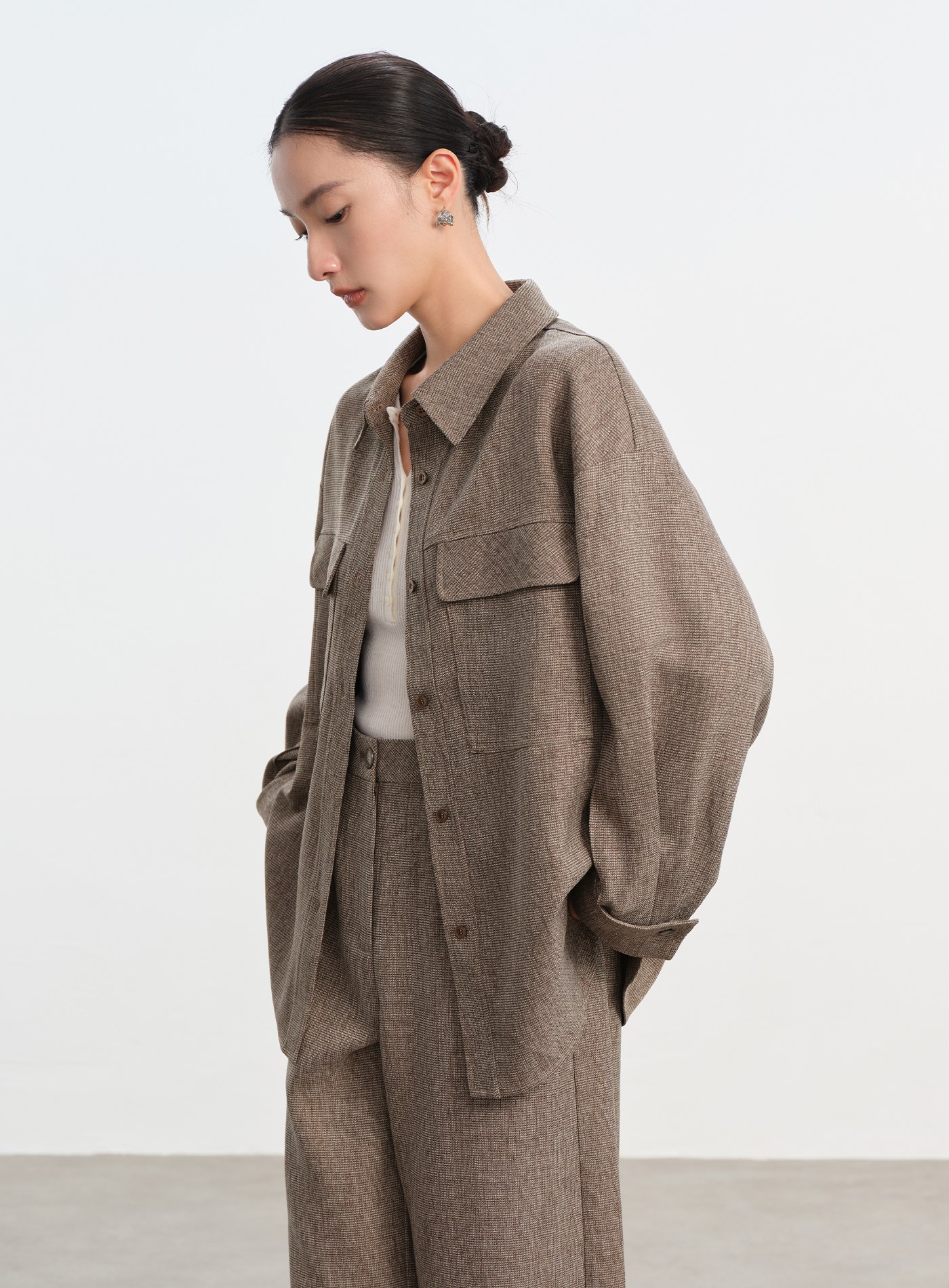 釦開袖口落肩舒適襯衫$63 USD