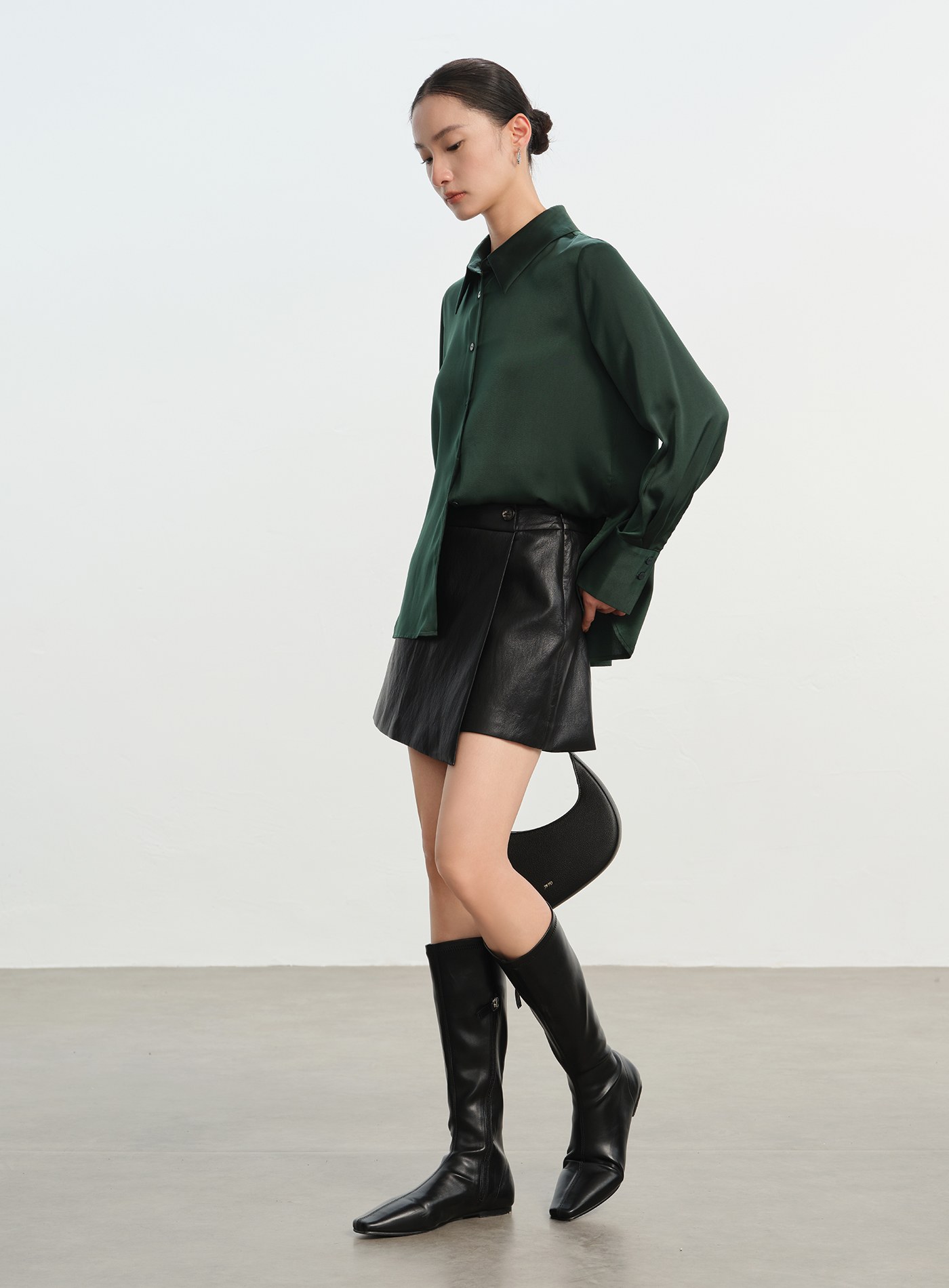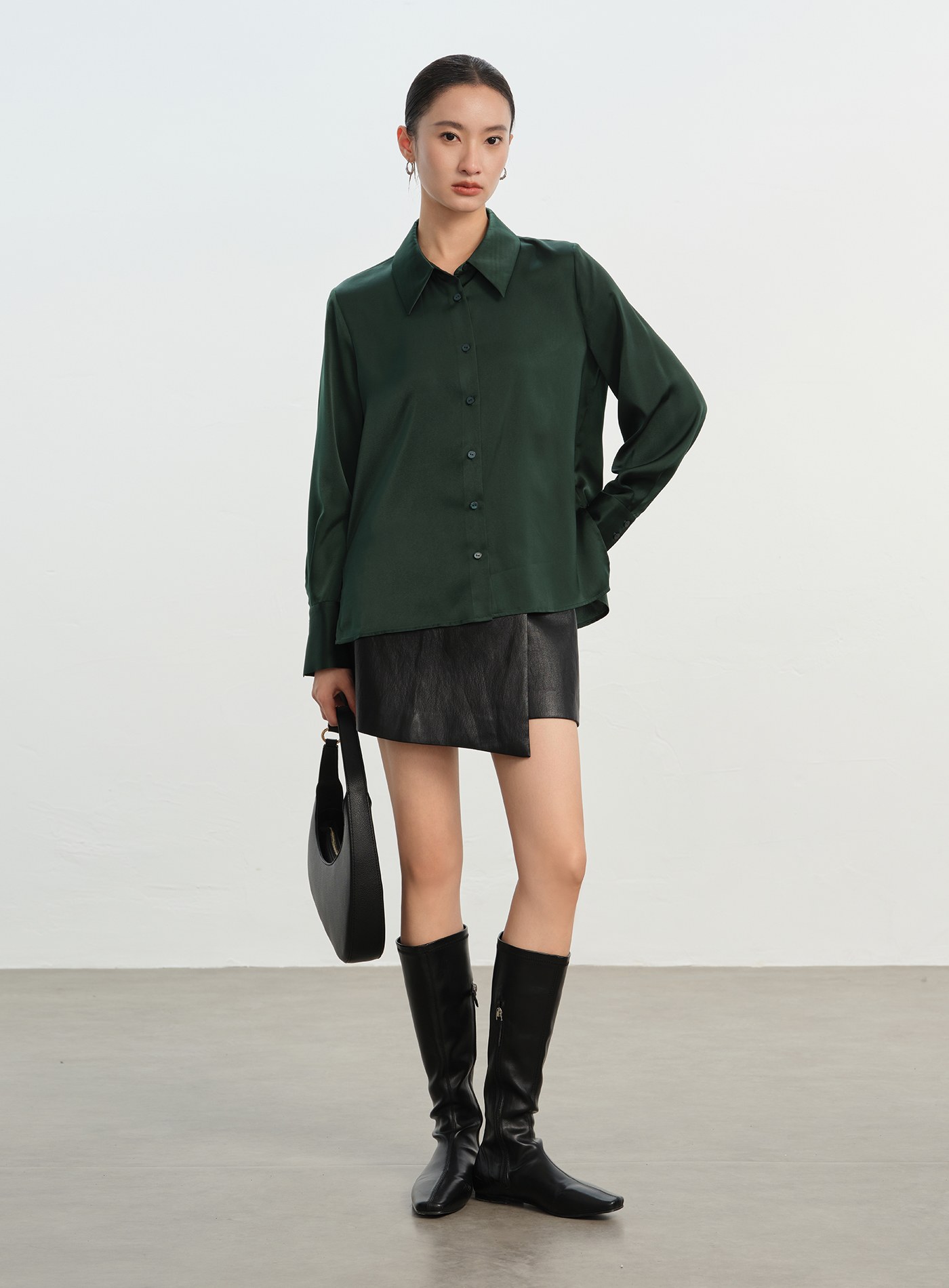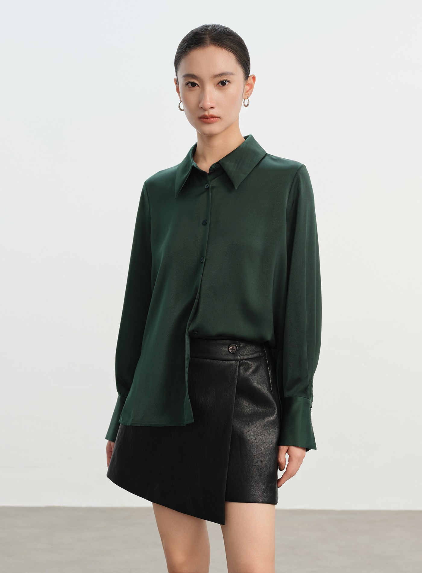 光澤感兩穿口袋長袖襯衫$63 USD