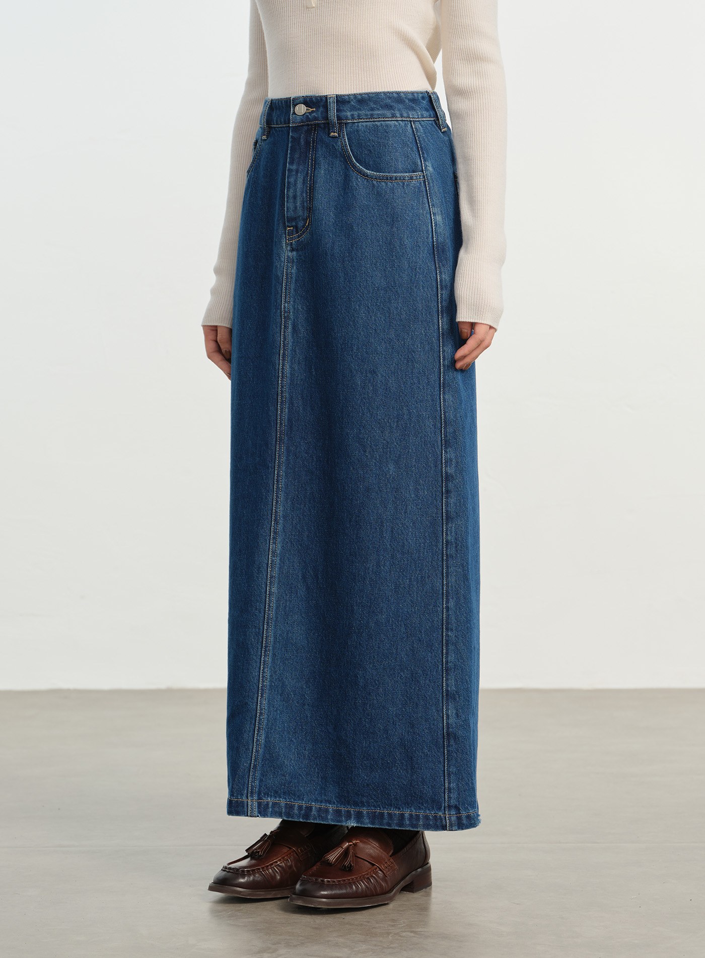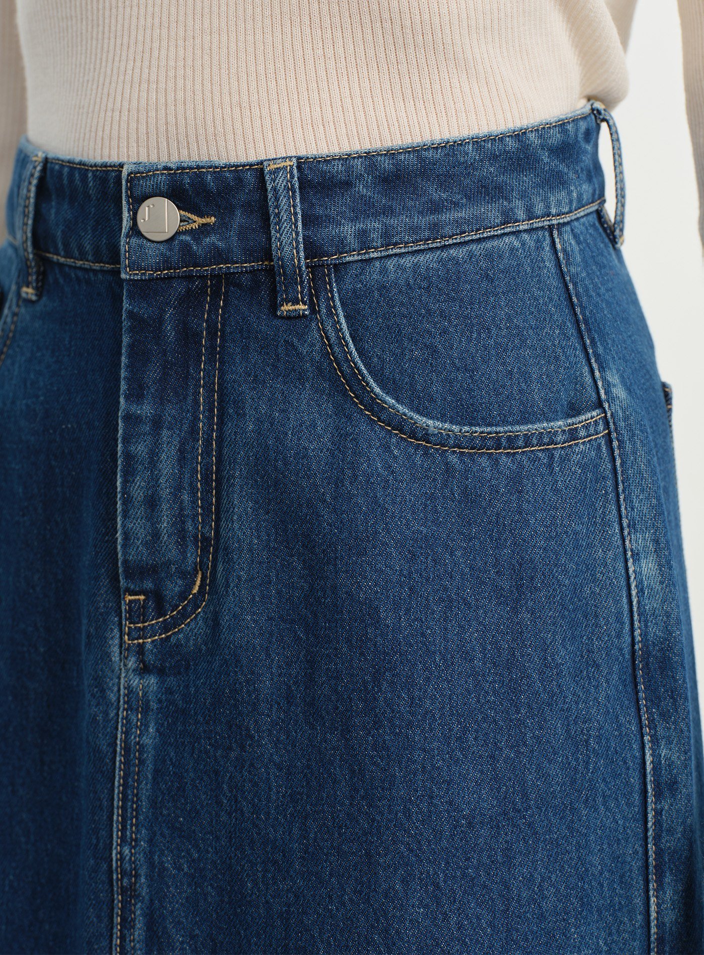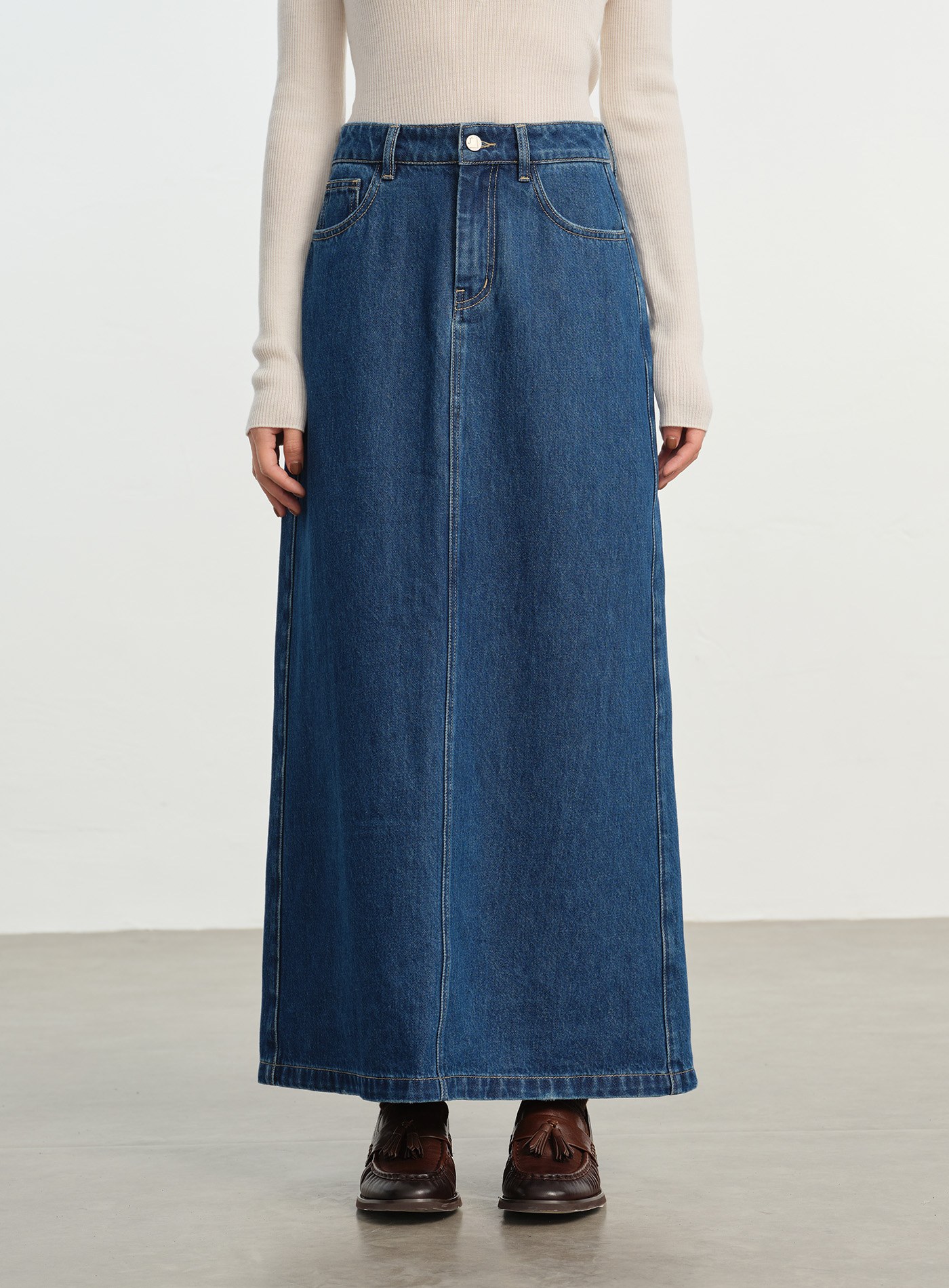 拼色排釦A字長裙$60 USD