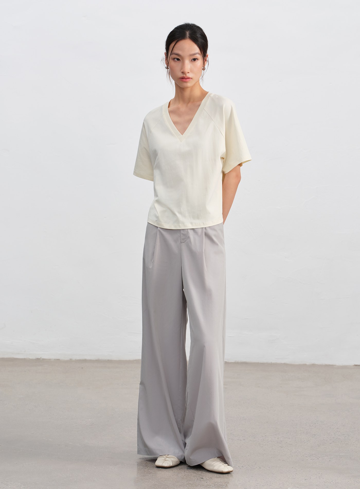 - 選用天絲與萊卡混紡面料,搭配霧面磨毛工藝,帶出柔霧般的細緻質感