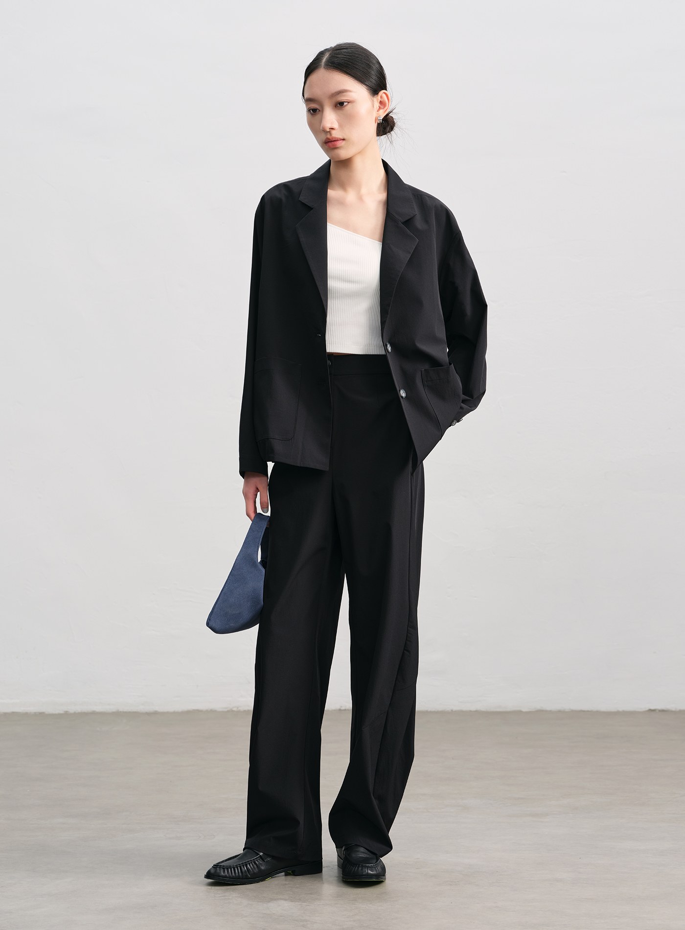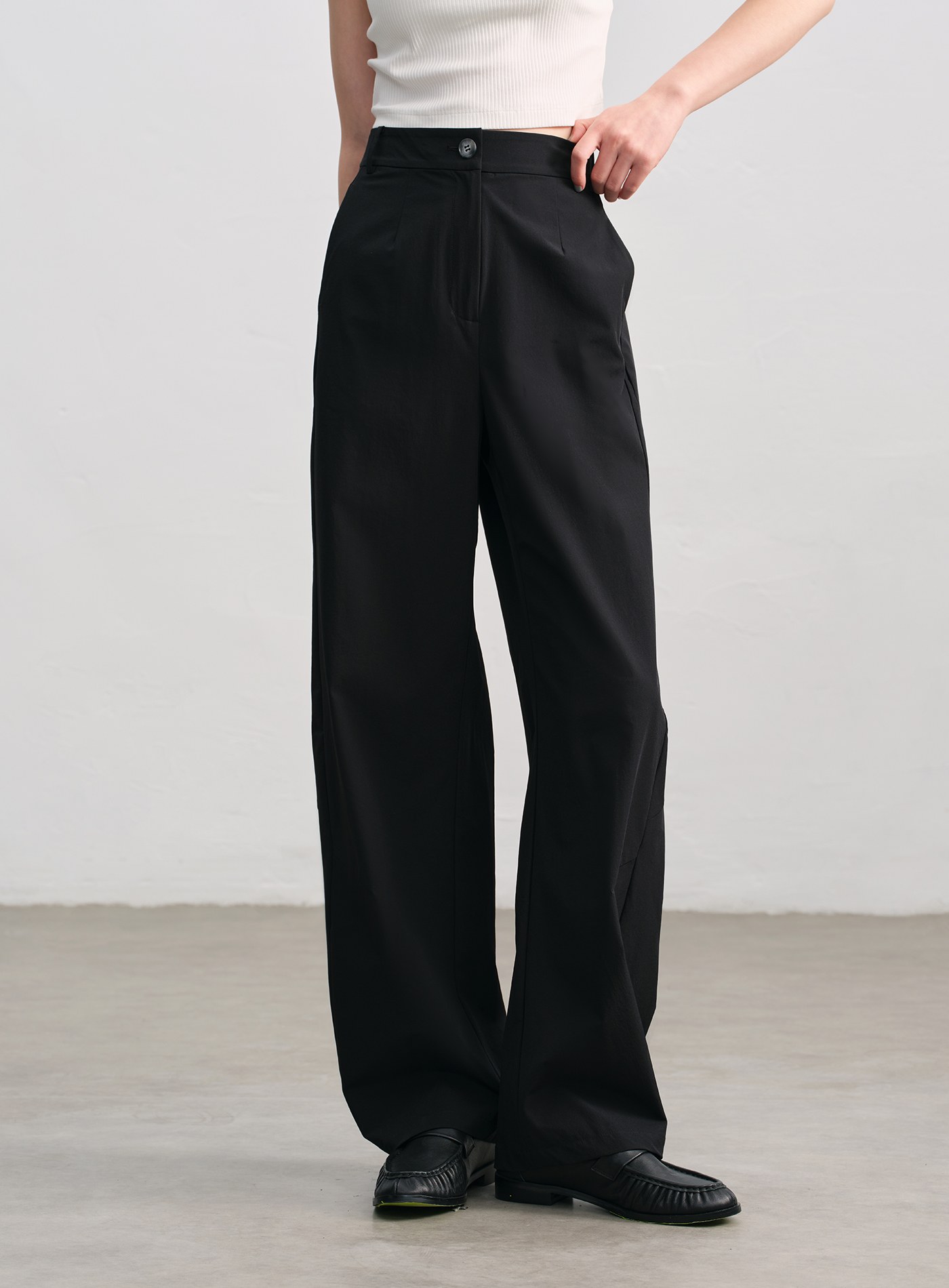 - 輕薄抗皺休閒長褲,布面帶有細膩肌理,輕薄乾爽。