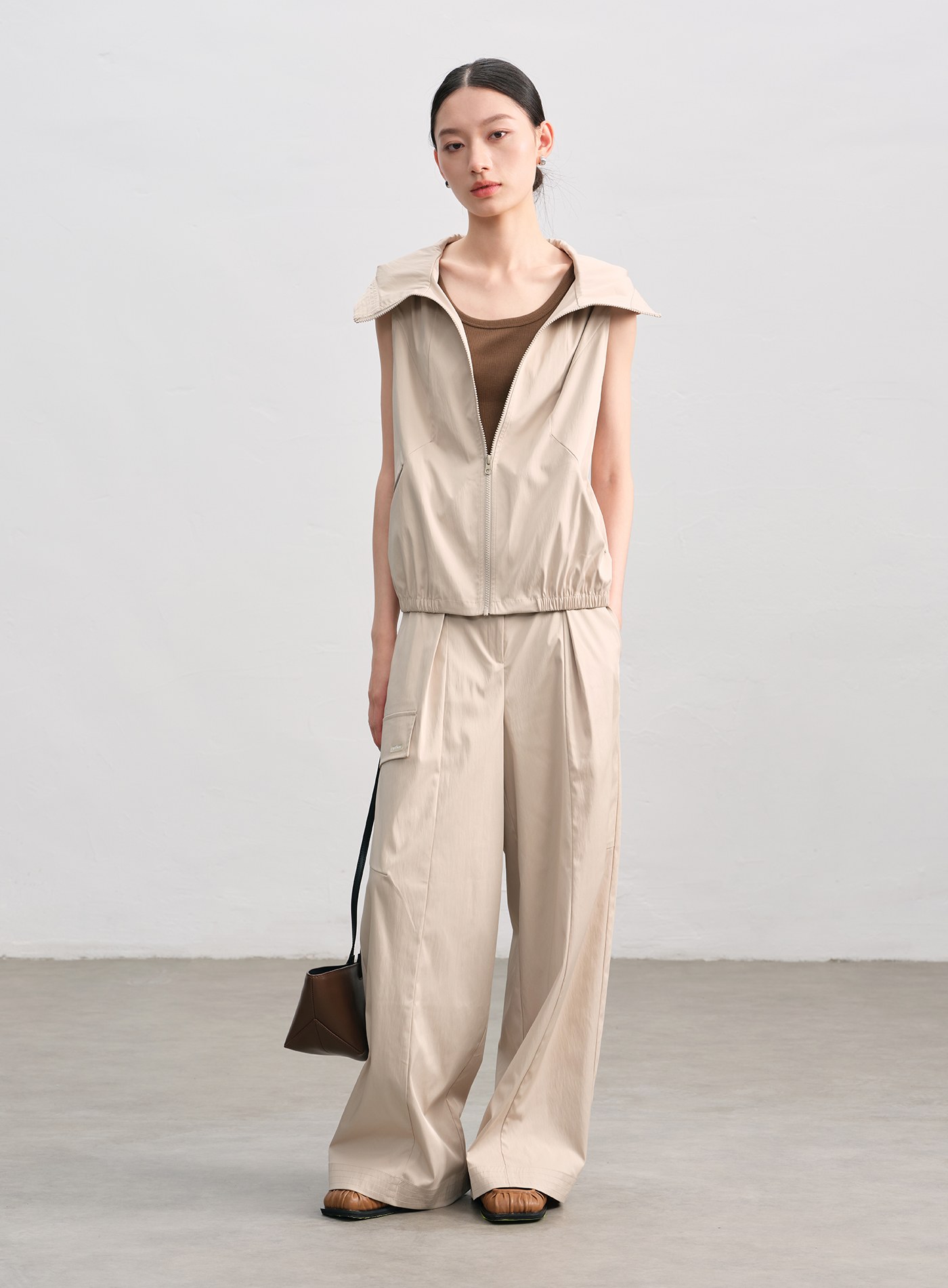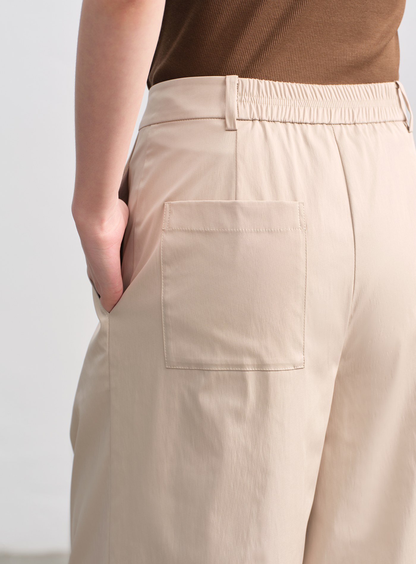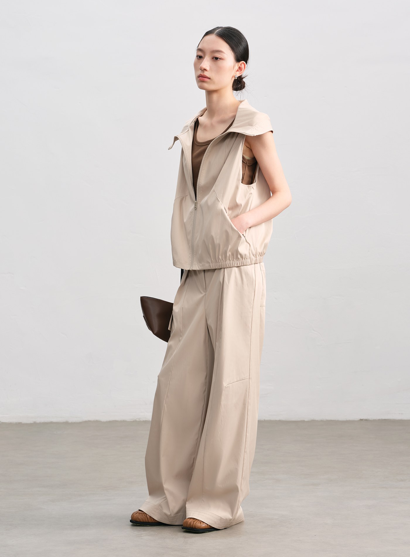 - 褲頭壓褶修飾腿型,褲腳壓線強化結構線條。