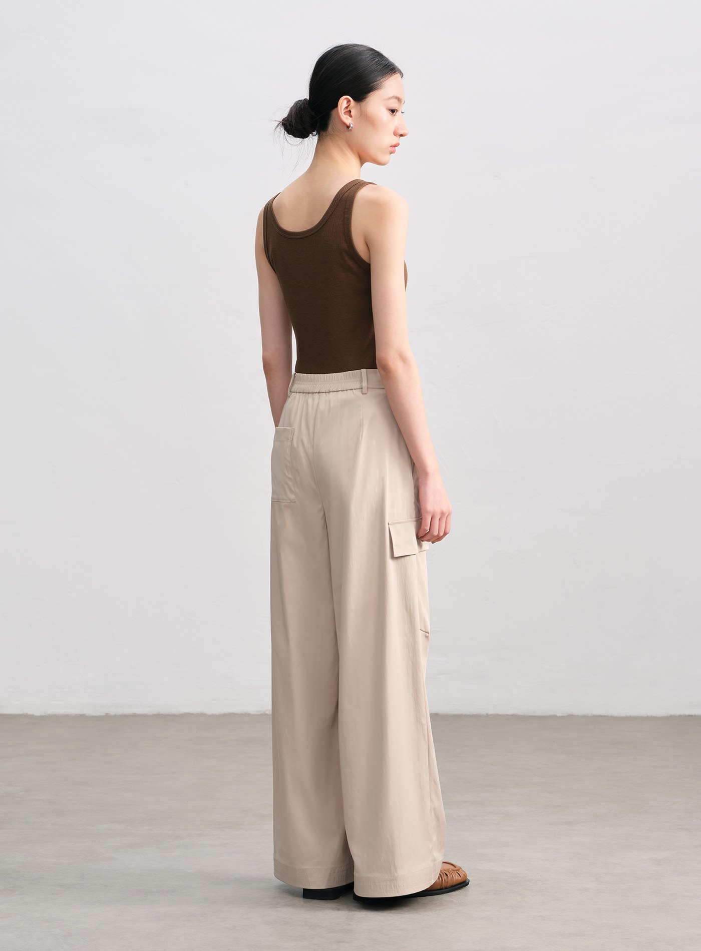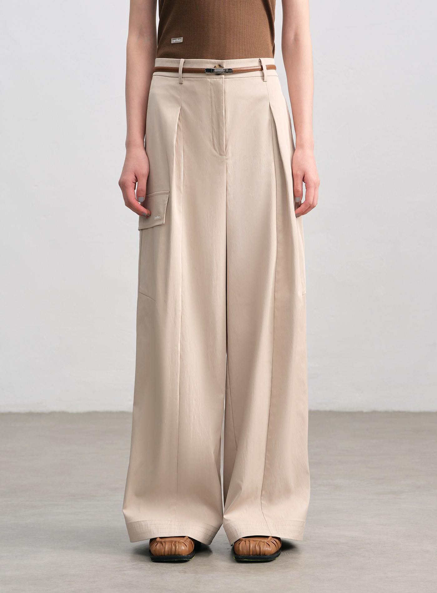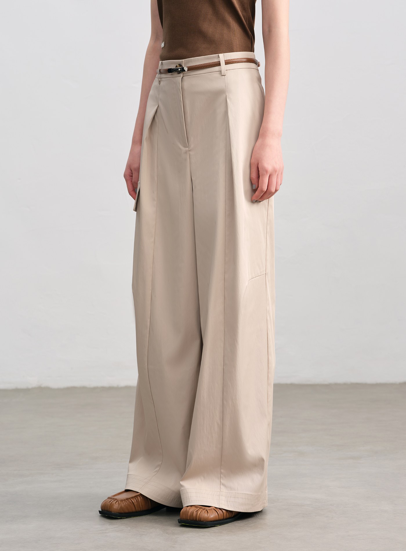 - 褲頭壓褶修飾腿型,褲腳壓線強化結構線條。
