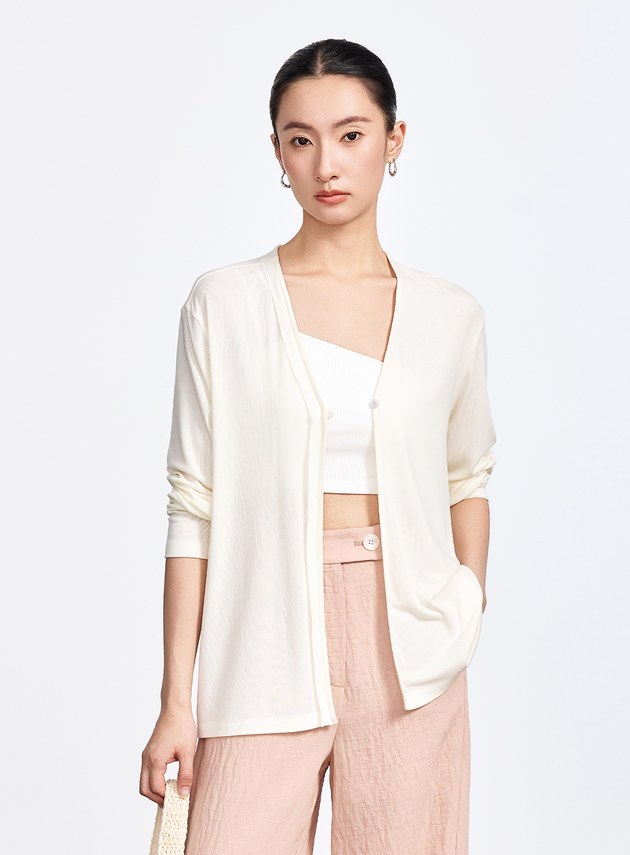 - 面料肌理豐富,上身輕盈涼爽,垂墜透氣,含少量亞麻成分,營造自然棉麻質感,展現隨性度假氛圍