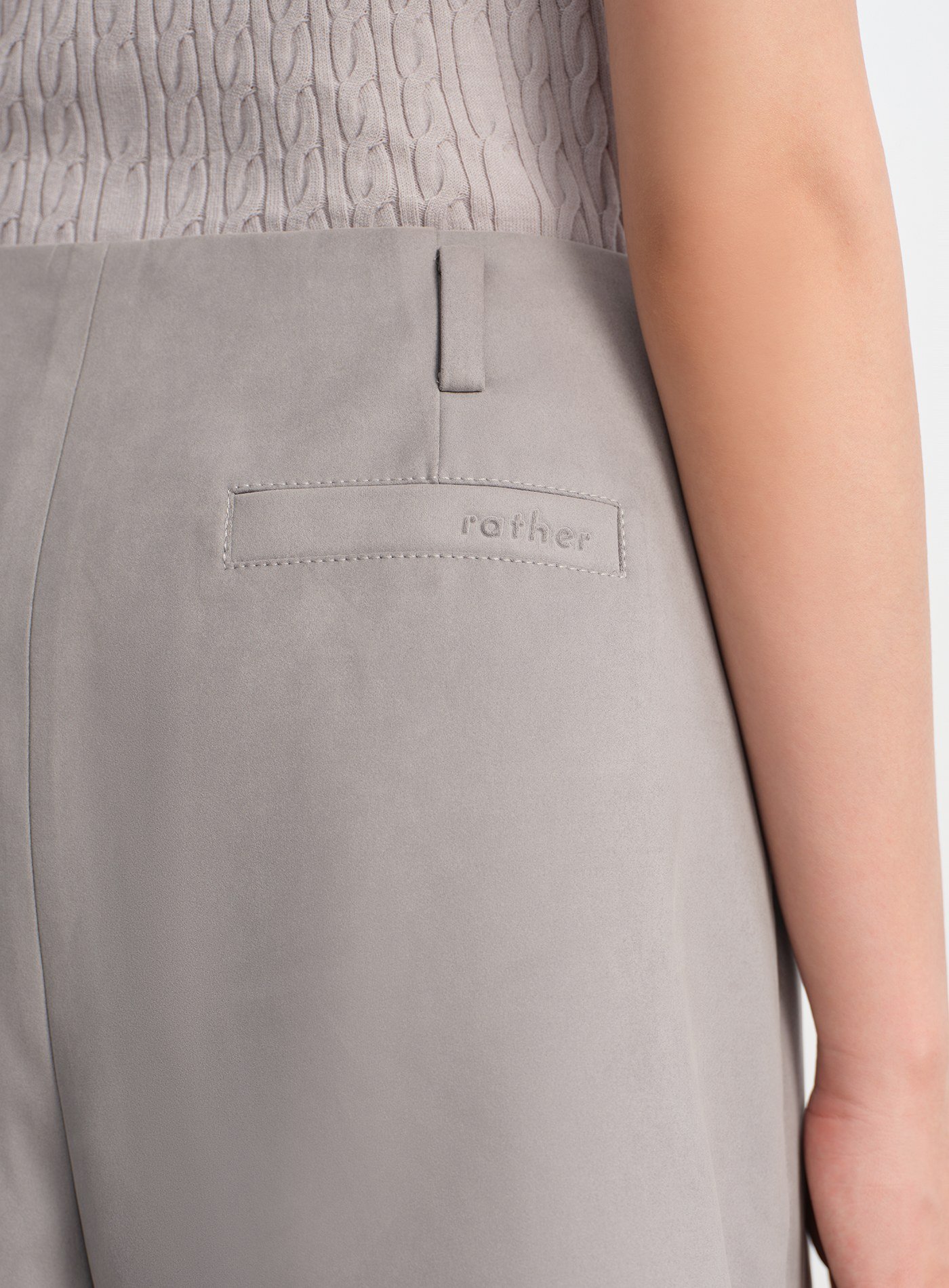 品牌金屬標挺廓後剪接寬褲$76 USD