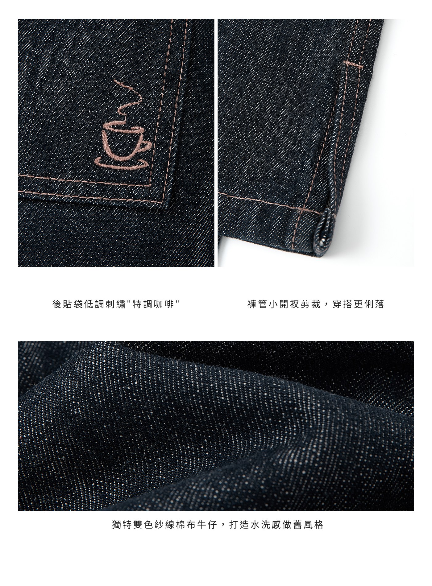 - 獨特雙色紗線,打造水洗感做舊風格