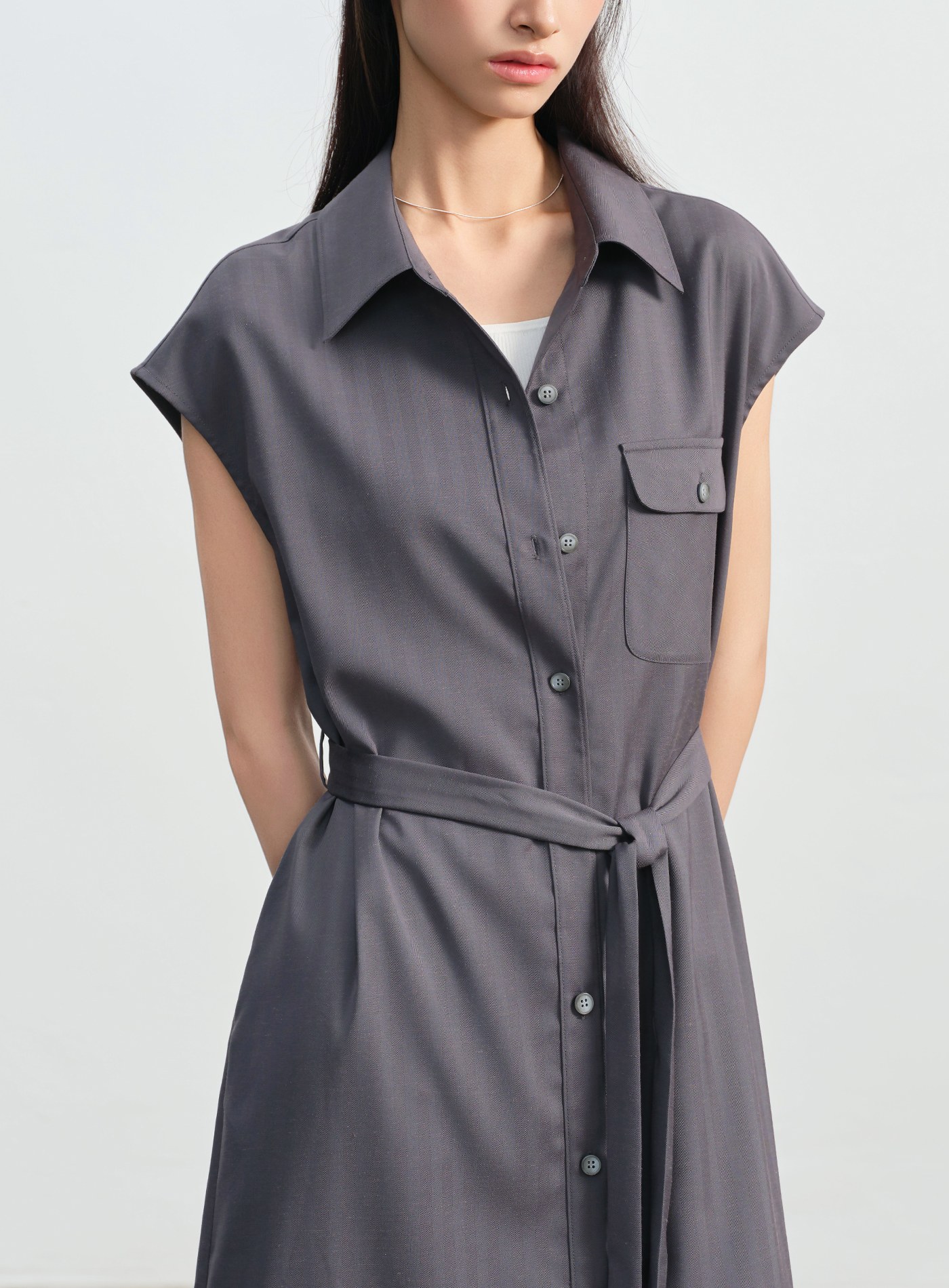 不對稱領休閒無袖綁帶洋裝$73 USD