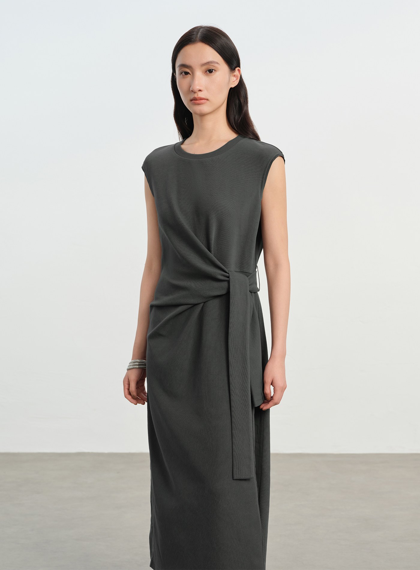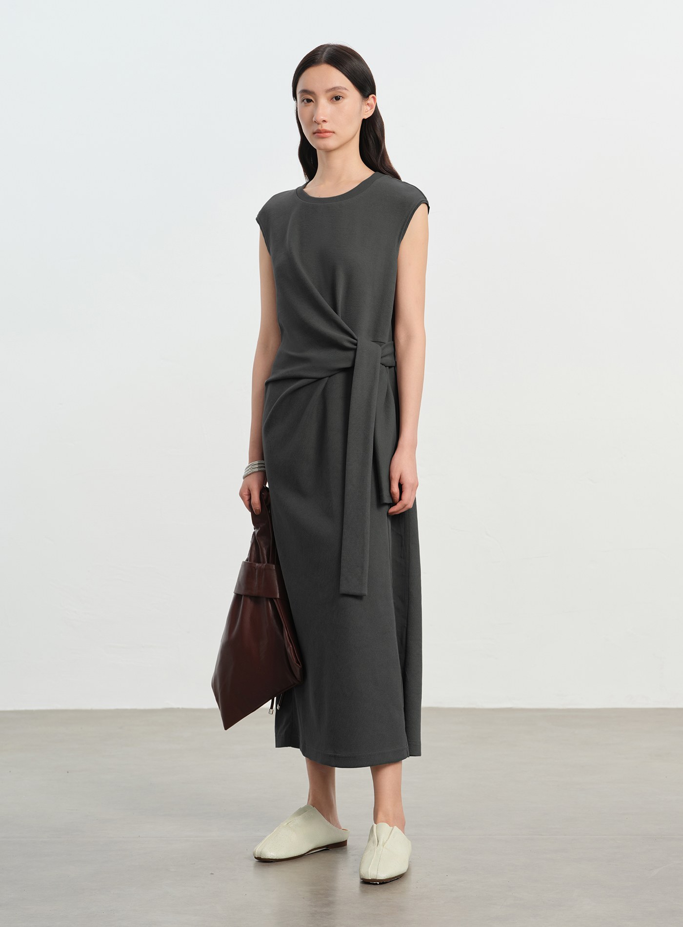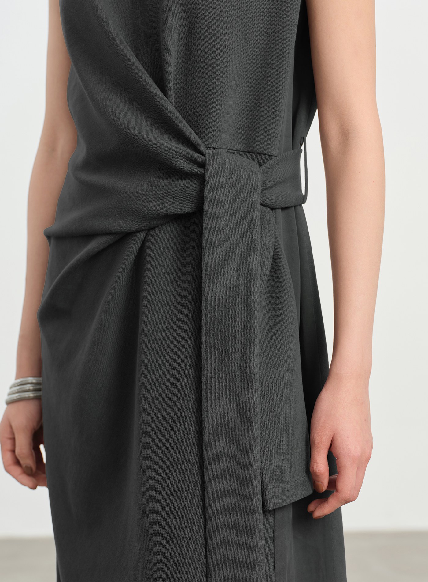 不對稱領休閒無袖綁帶洋裝$73 USD