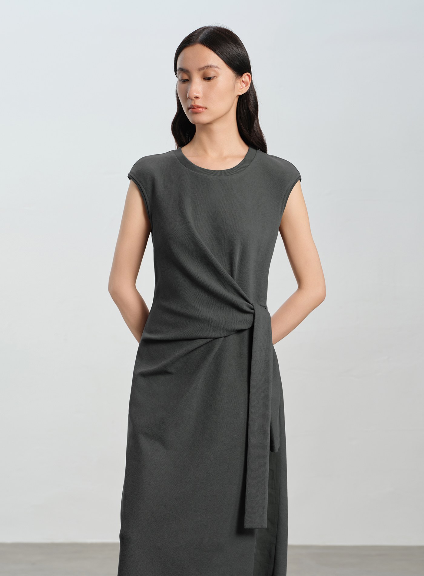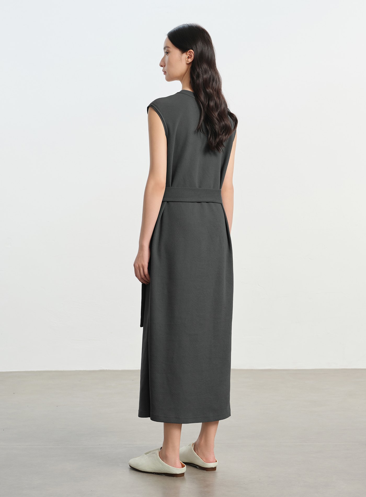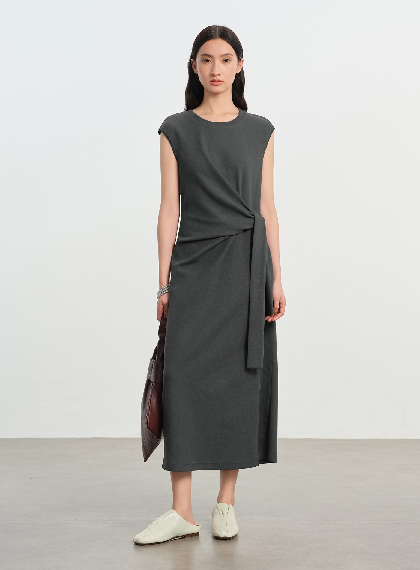 不對稱領休閒無袖綁帶洋裝$73 USD