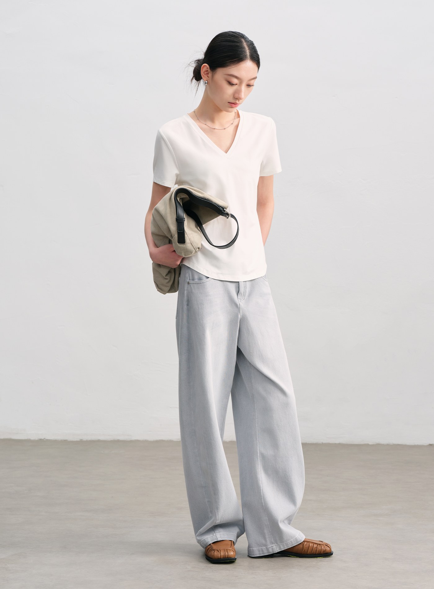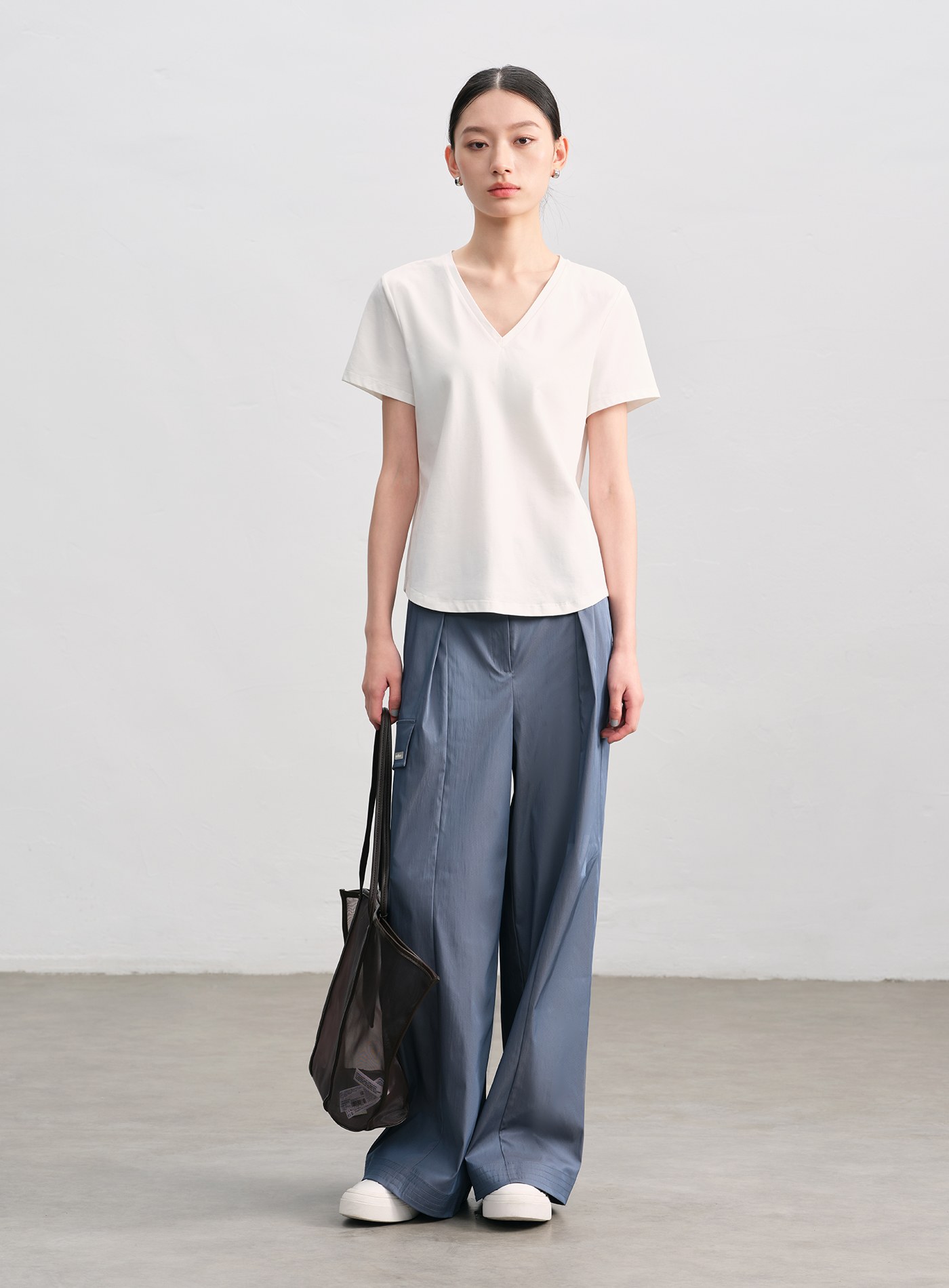 短版俐落寬肩無袖休閒襯杉$60 USD