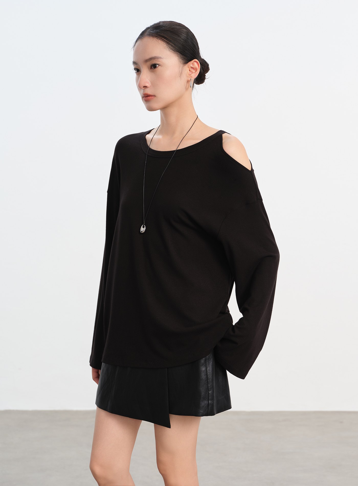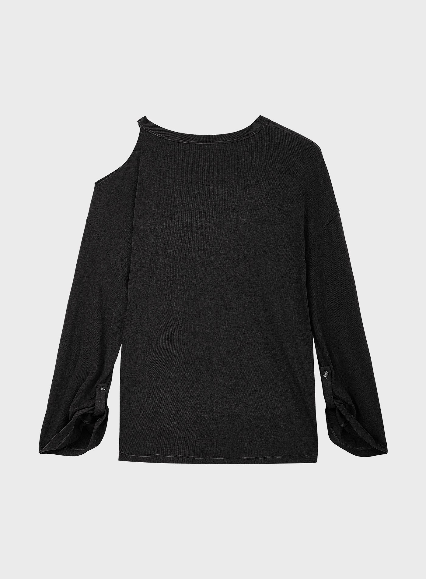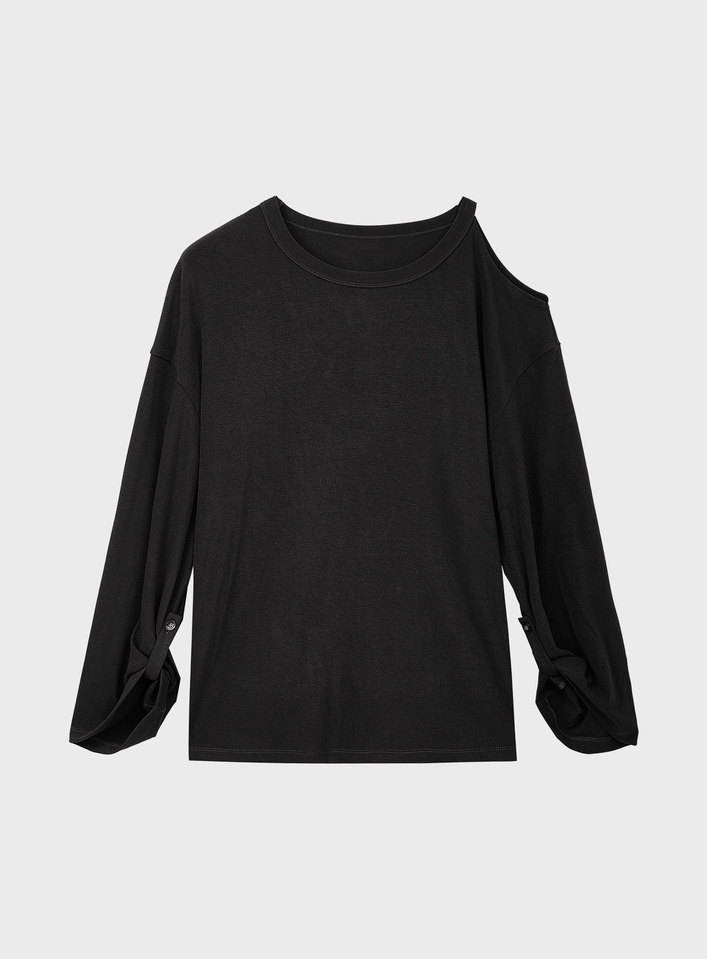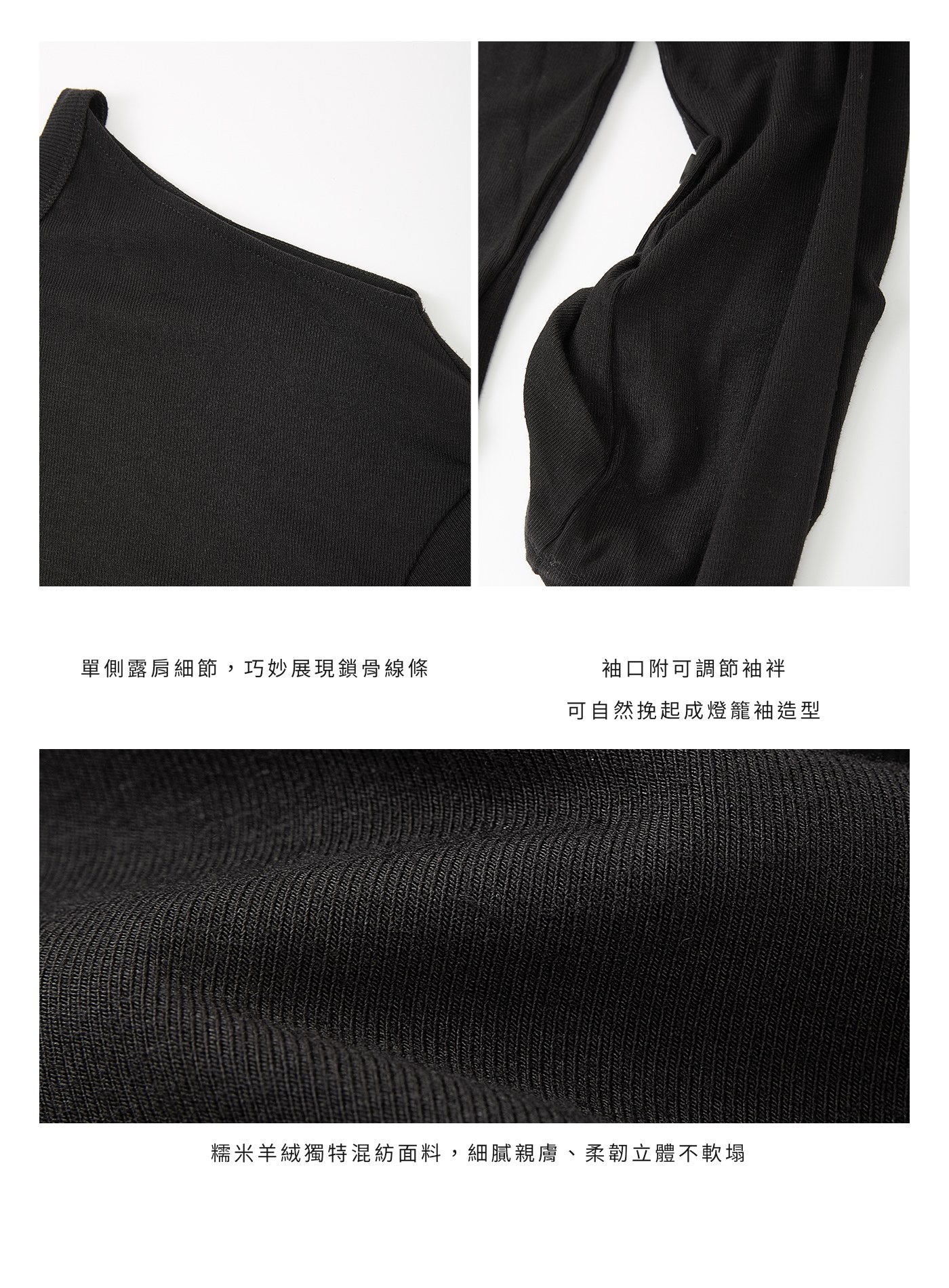 - 單側露肩細節巧妙展現鎖骨線條,低調不失個性