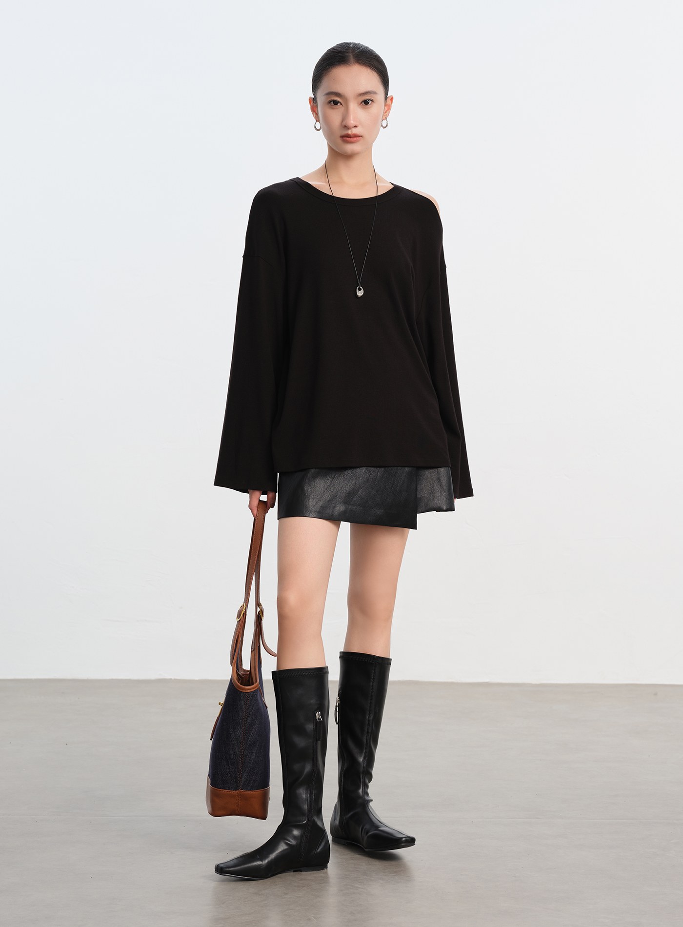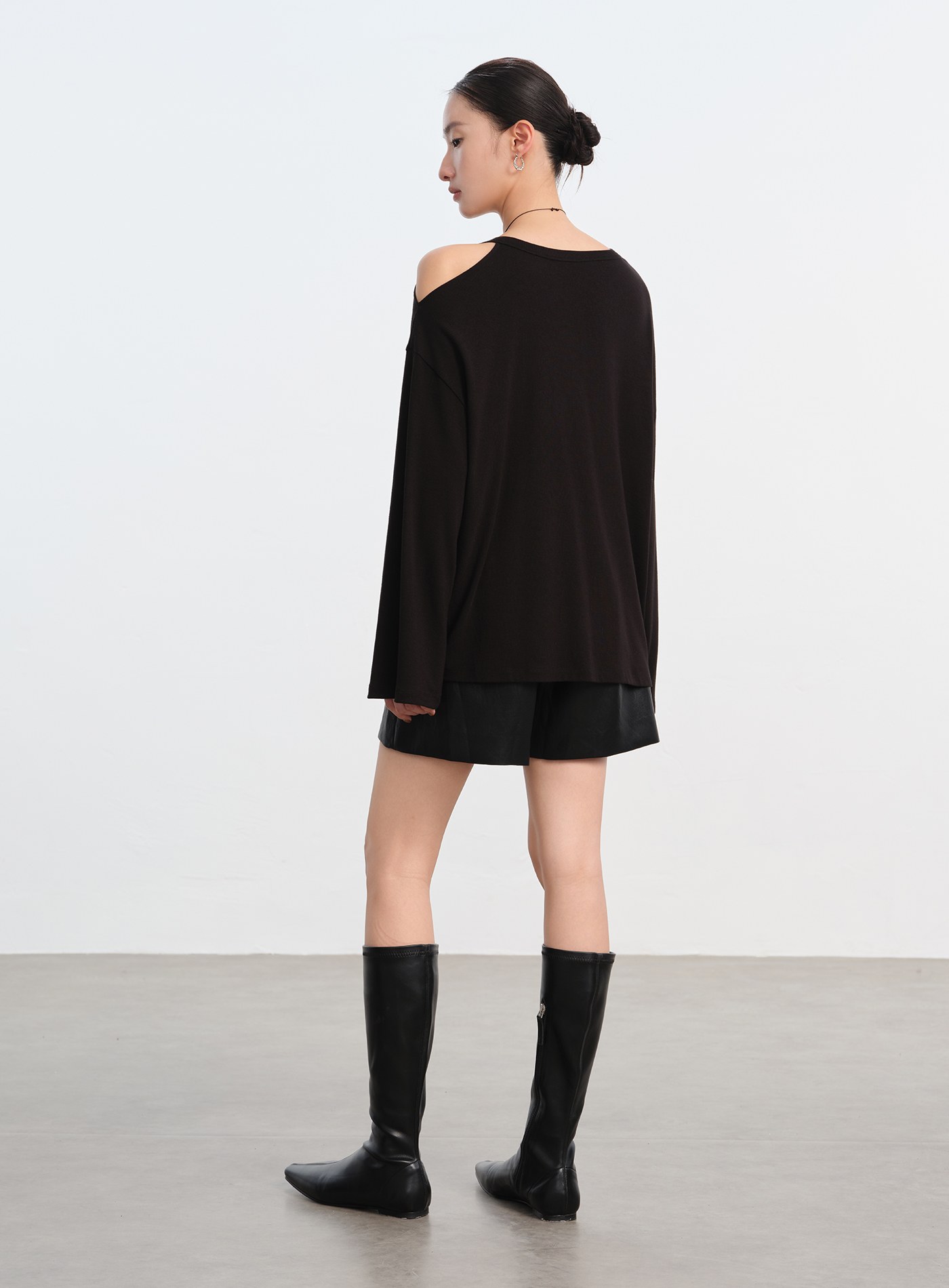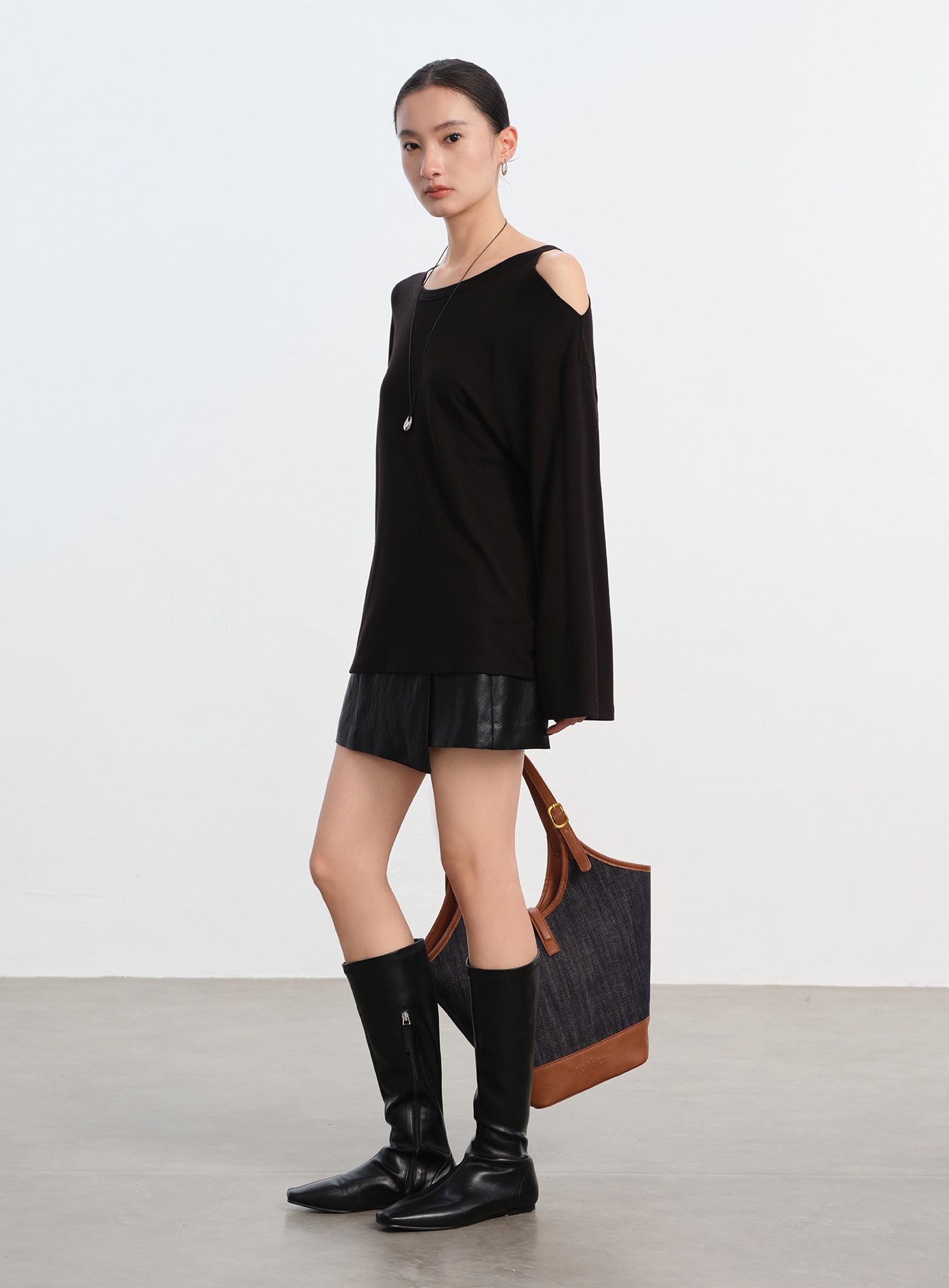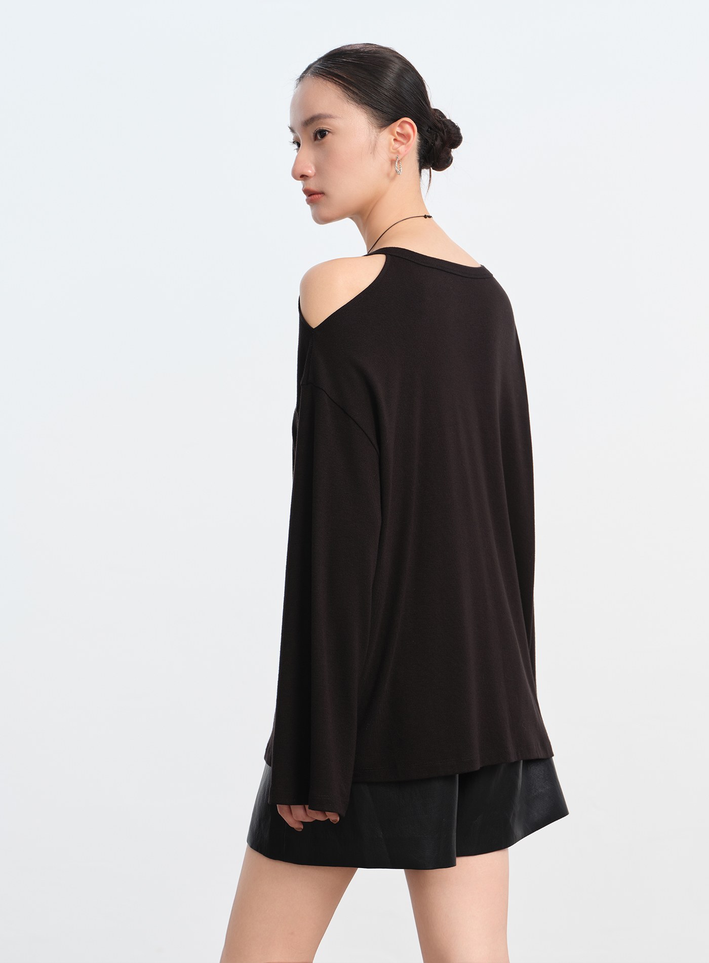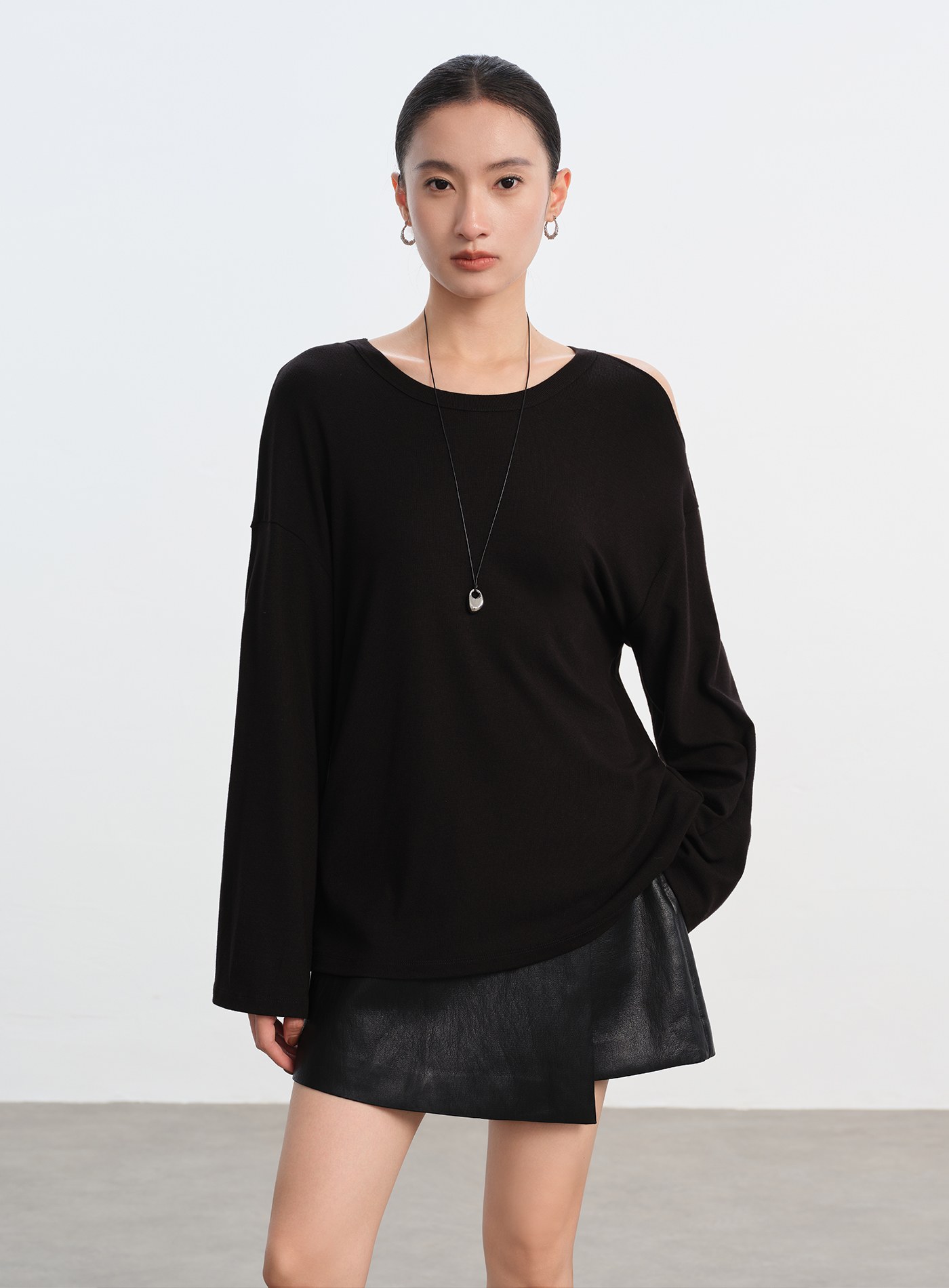 - 單側露肩細節巧妙展現鎖骨線條,低調不失個性