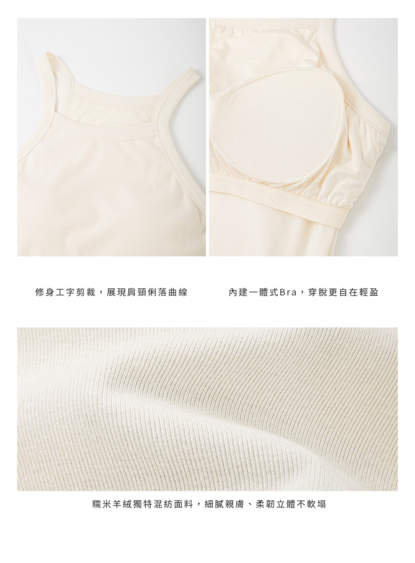 - 內建一體式Bra設計,無需額外罩杯,自在支撐,穿脫更輕盈