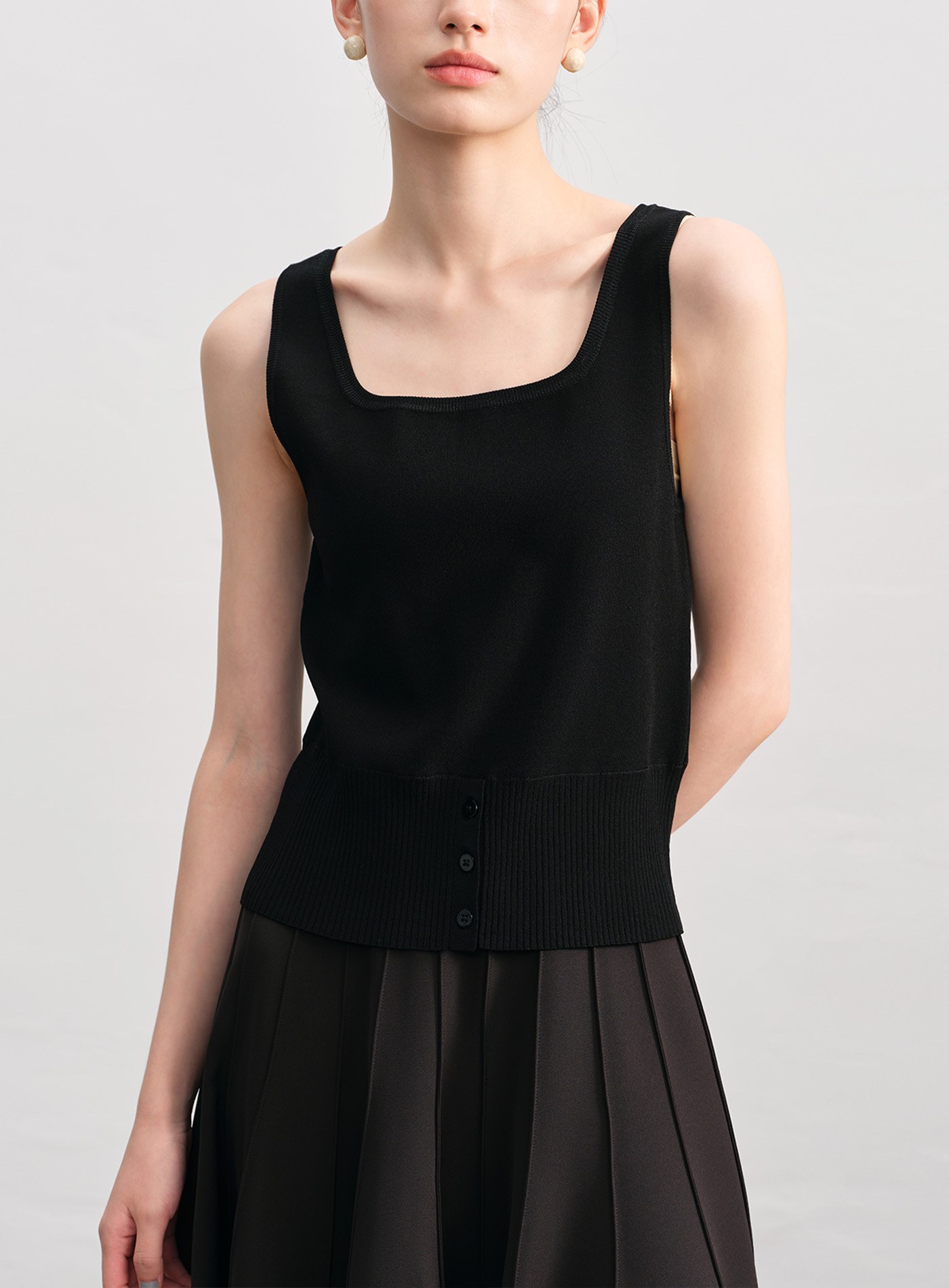 短版俐落寬肩無袖休閒襯杉$60 USD
