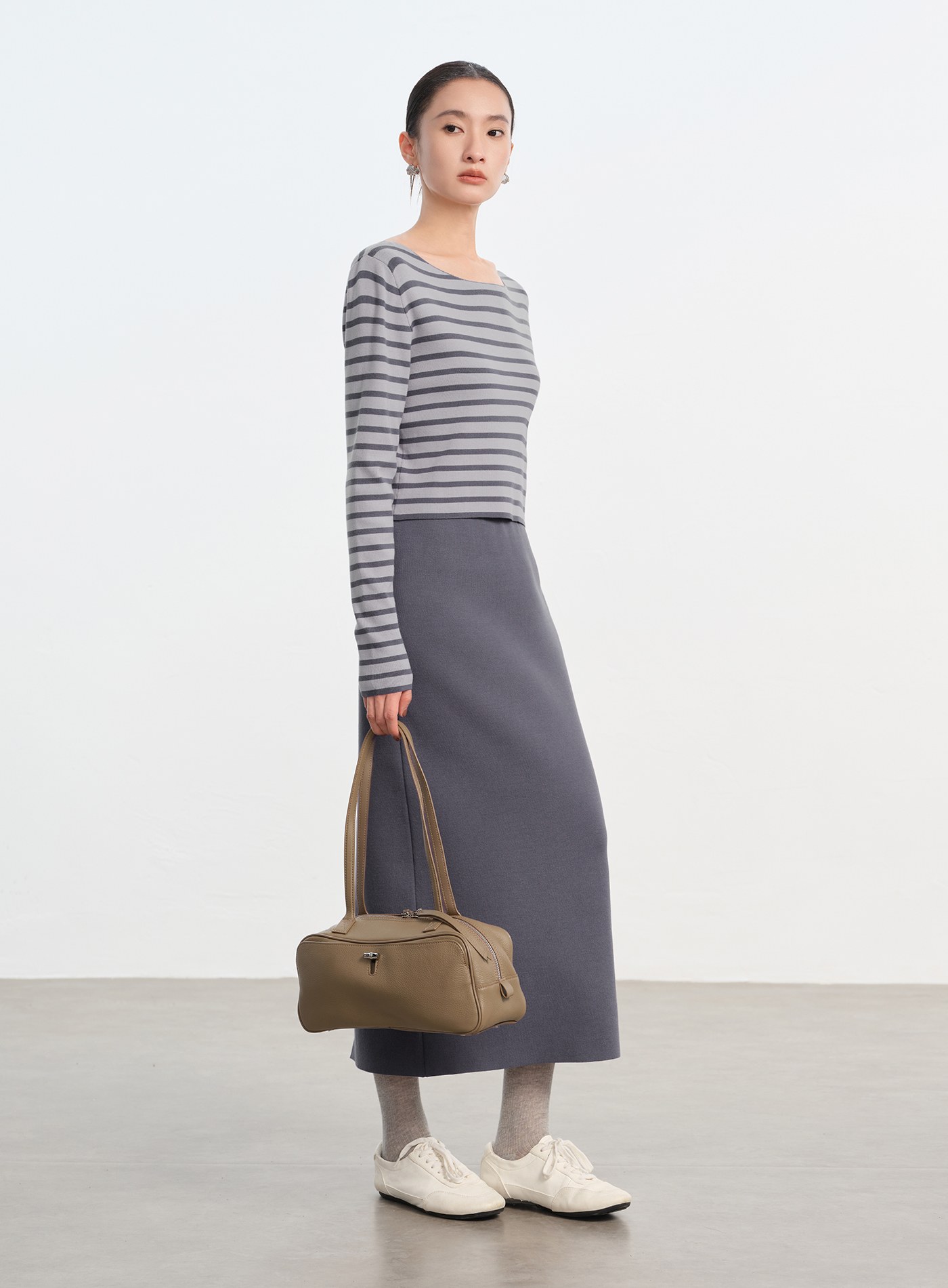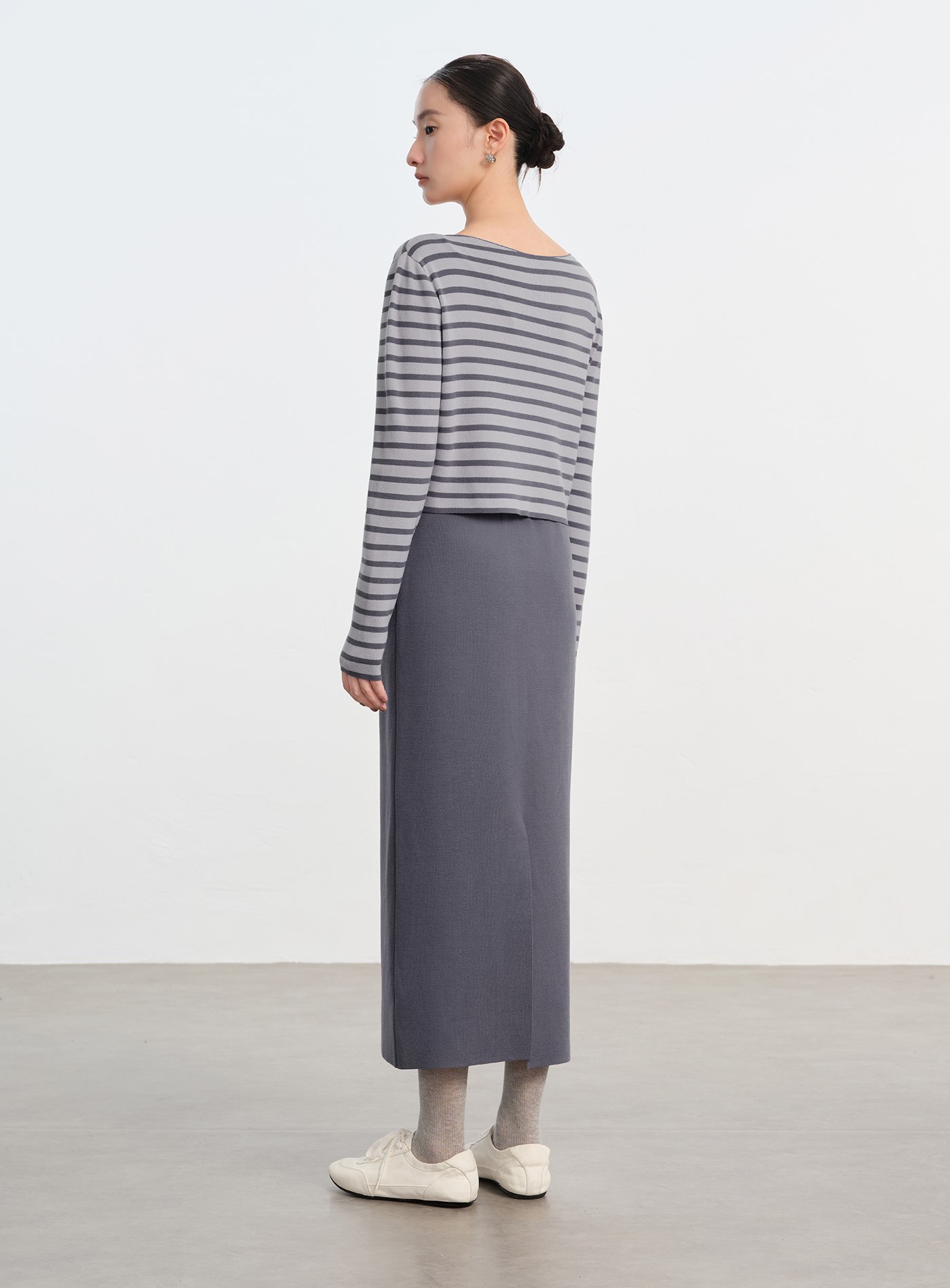 不對稱領彈力綁帶長袖襯衫$63 USD