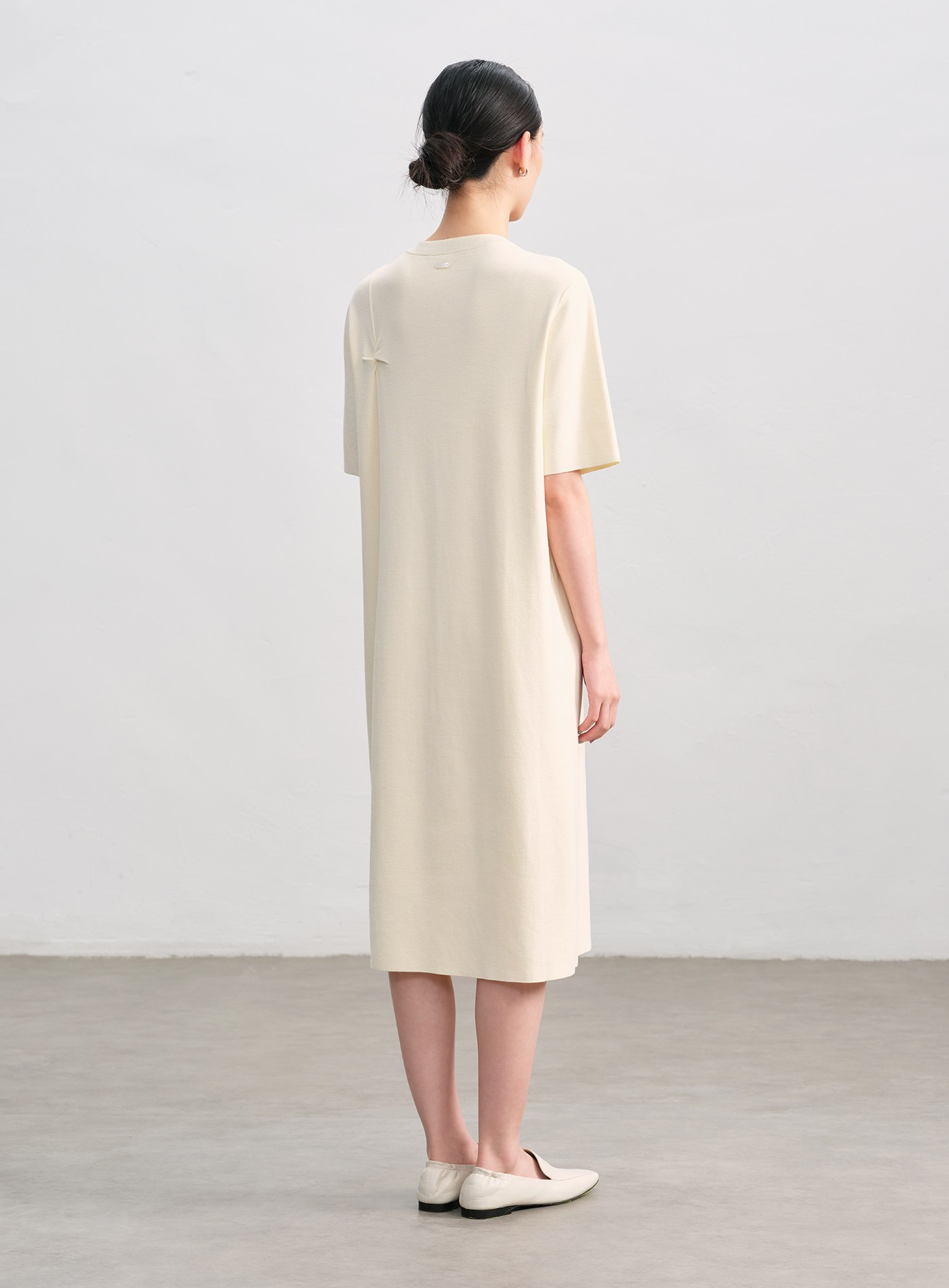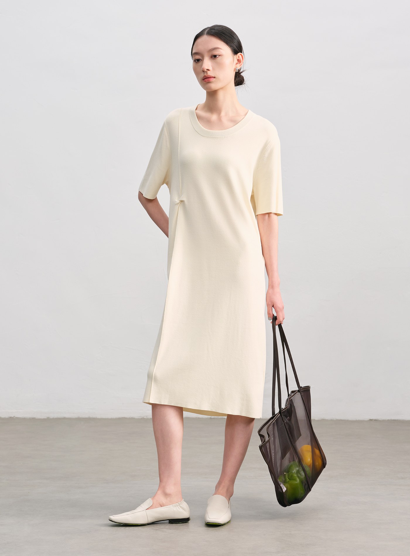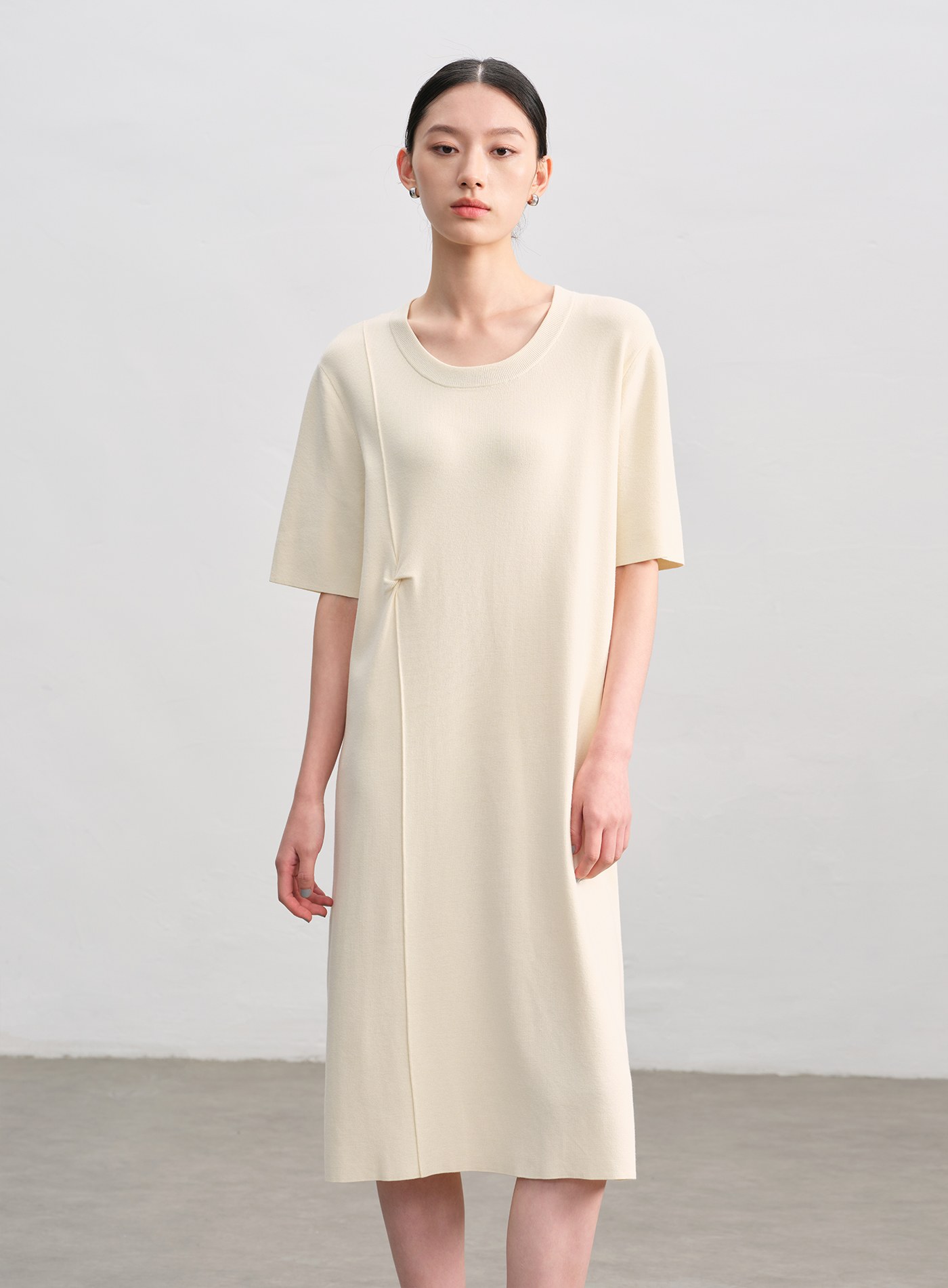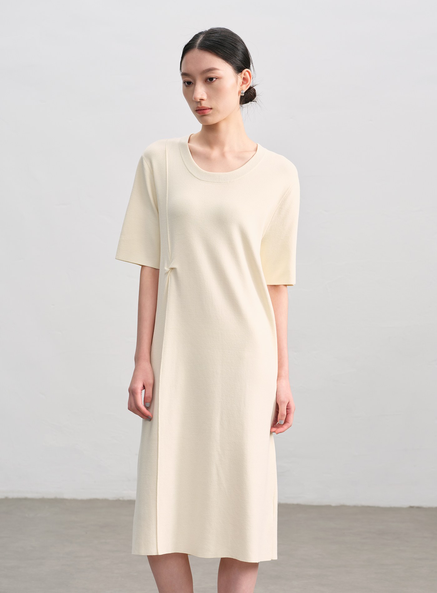 船領細羅紋抽皺長洋裝$105 USD