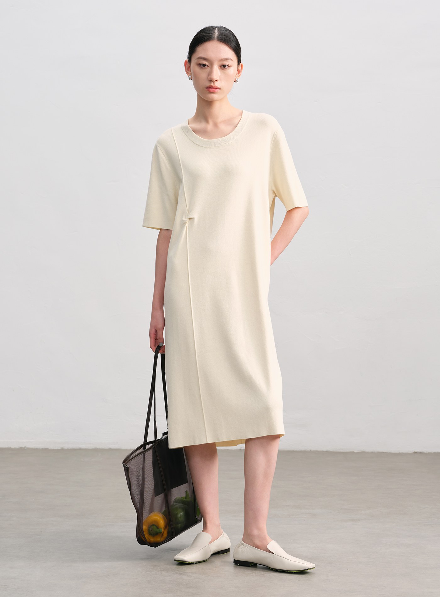 異材質拼接打摺洋裝$108 USD