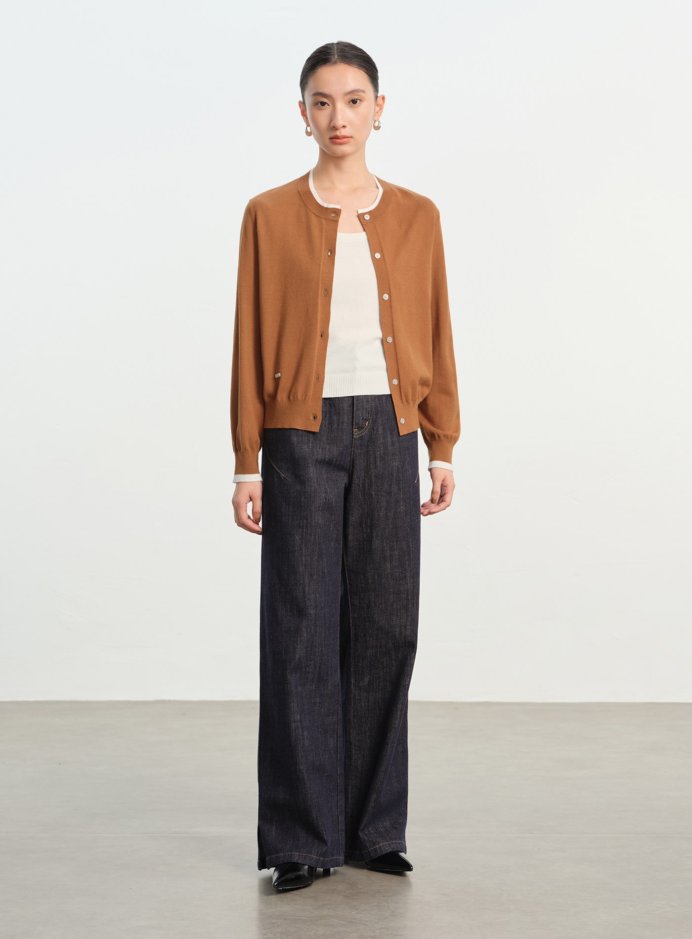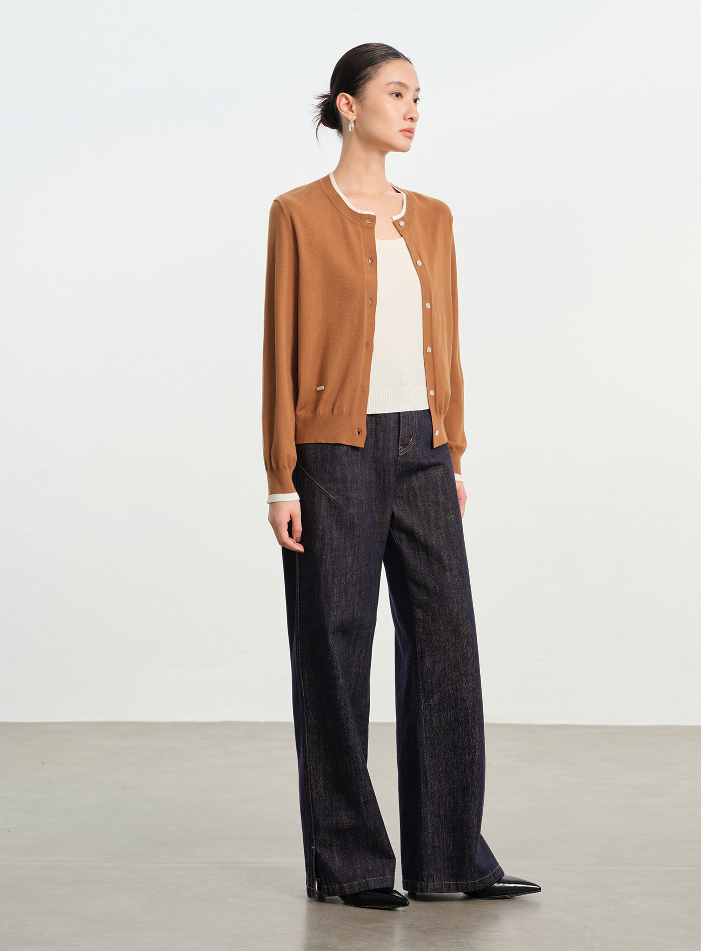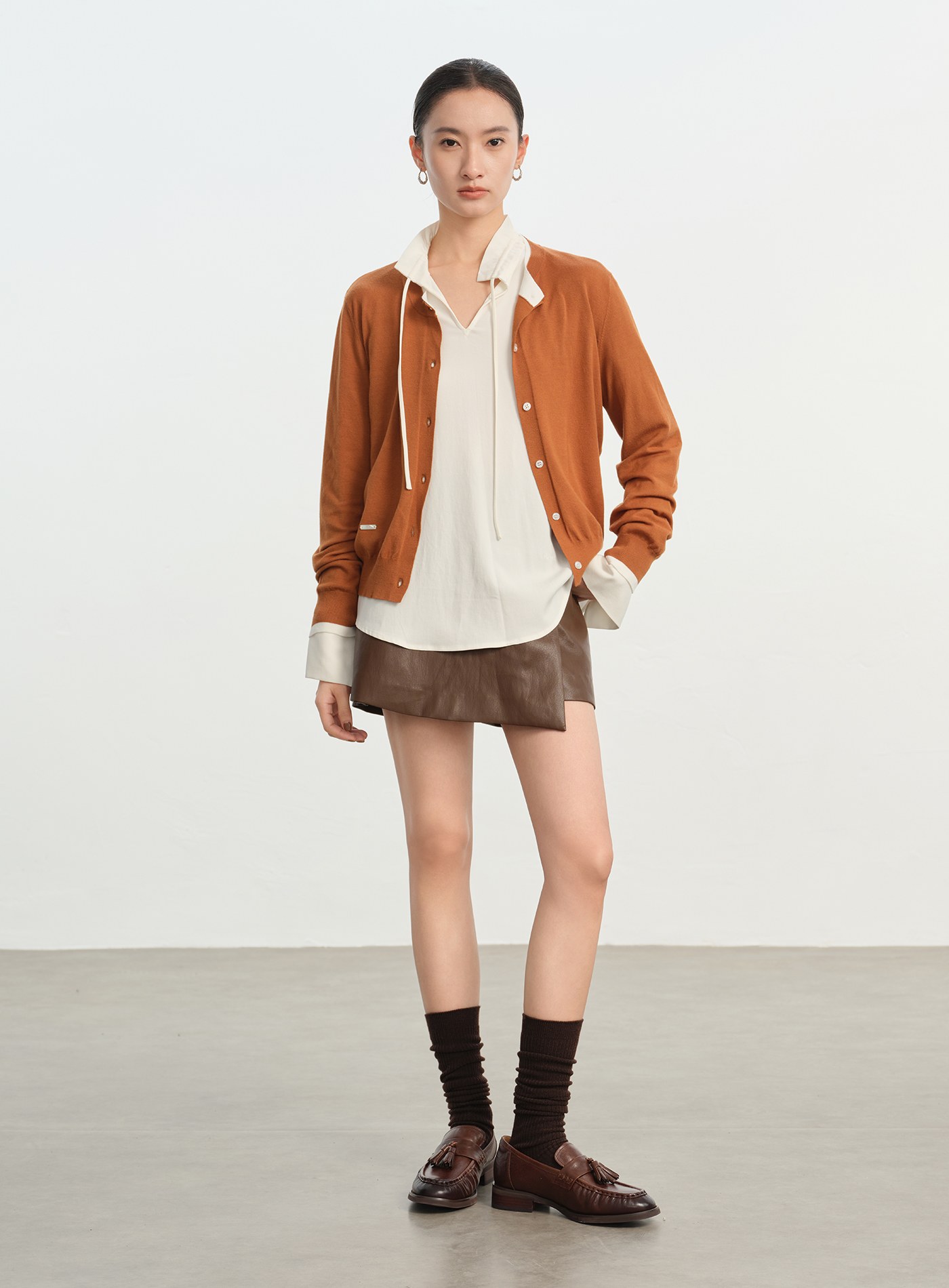 緞面感尖領長袖襯衫$63 USD