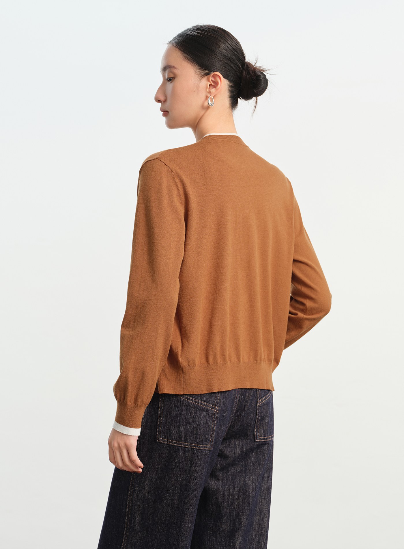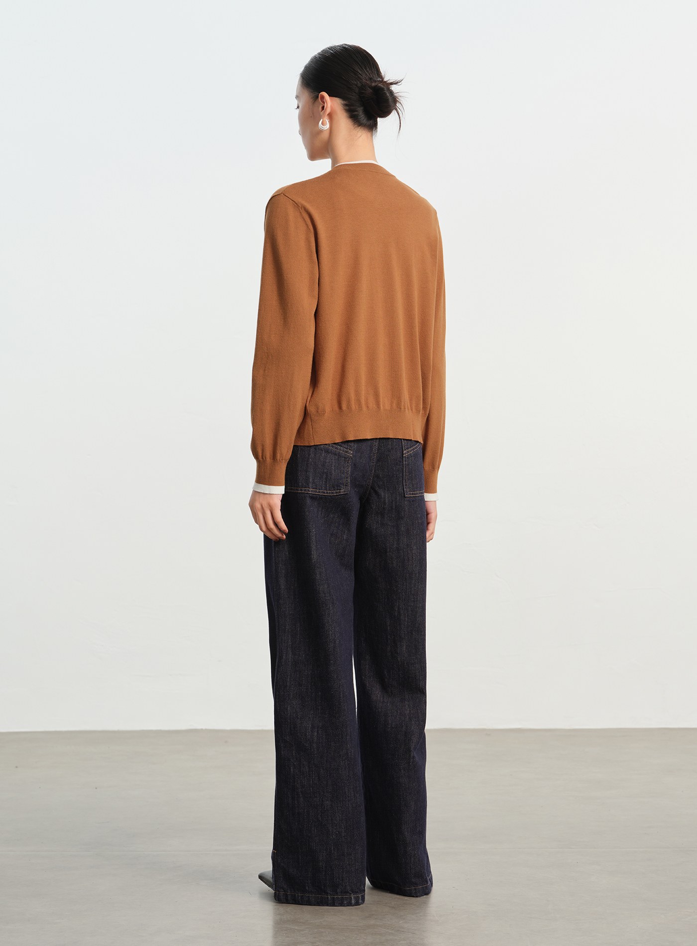 挖肩拼色細節長袖上衣$35 USD