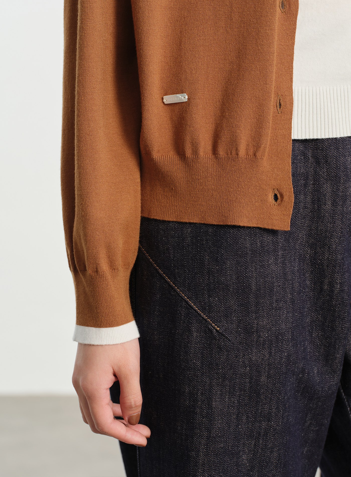 短版口袋拼色長袖上衣$76 USD