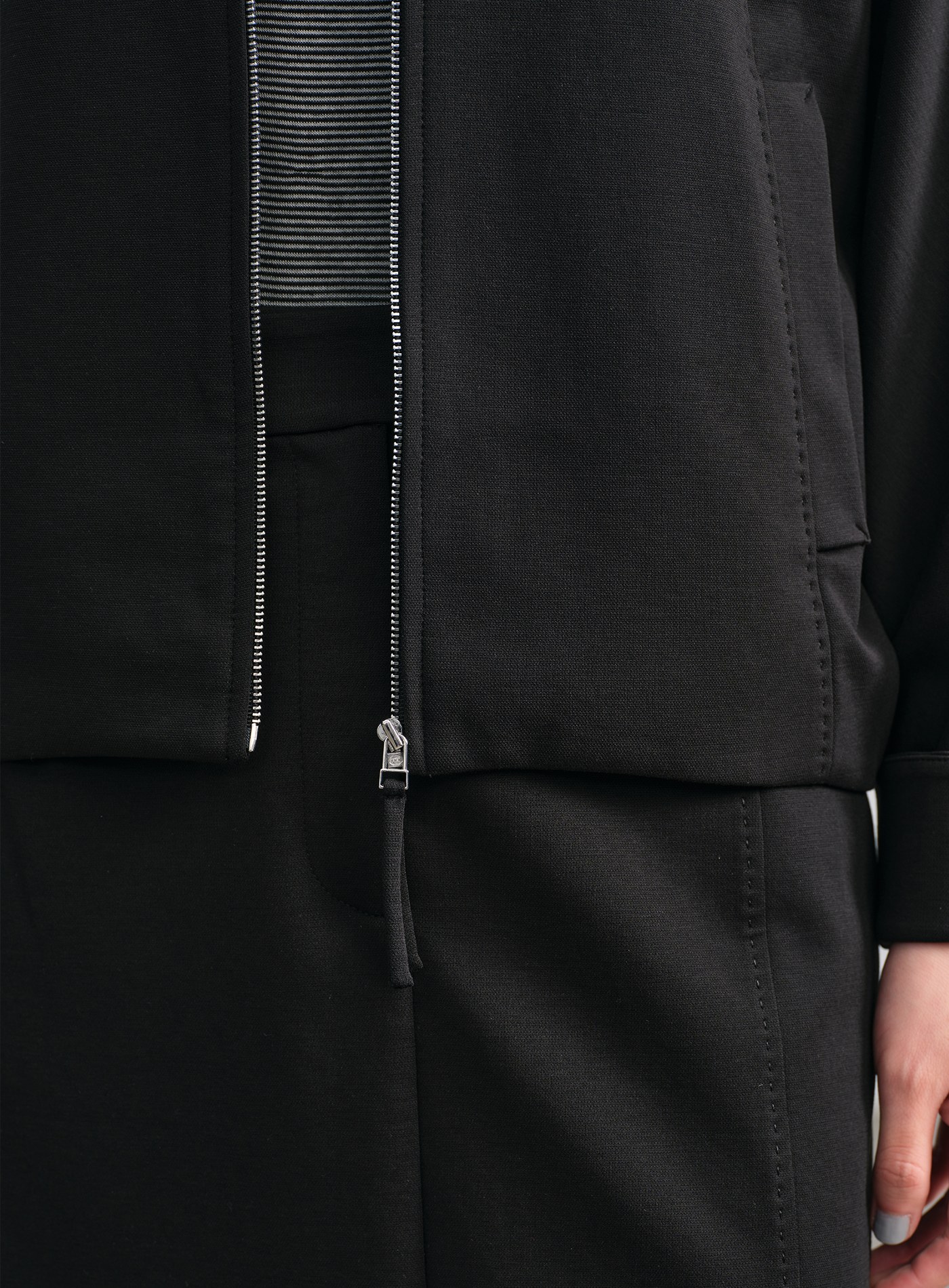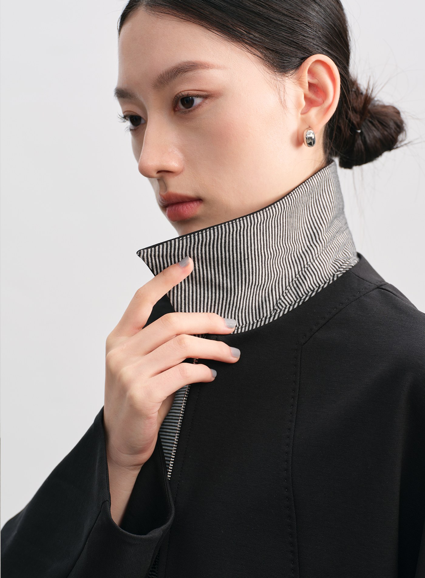 - 領底拼接同系列條紋針織布,撞色巧思為整體增添層次感