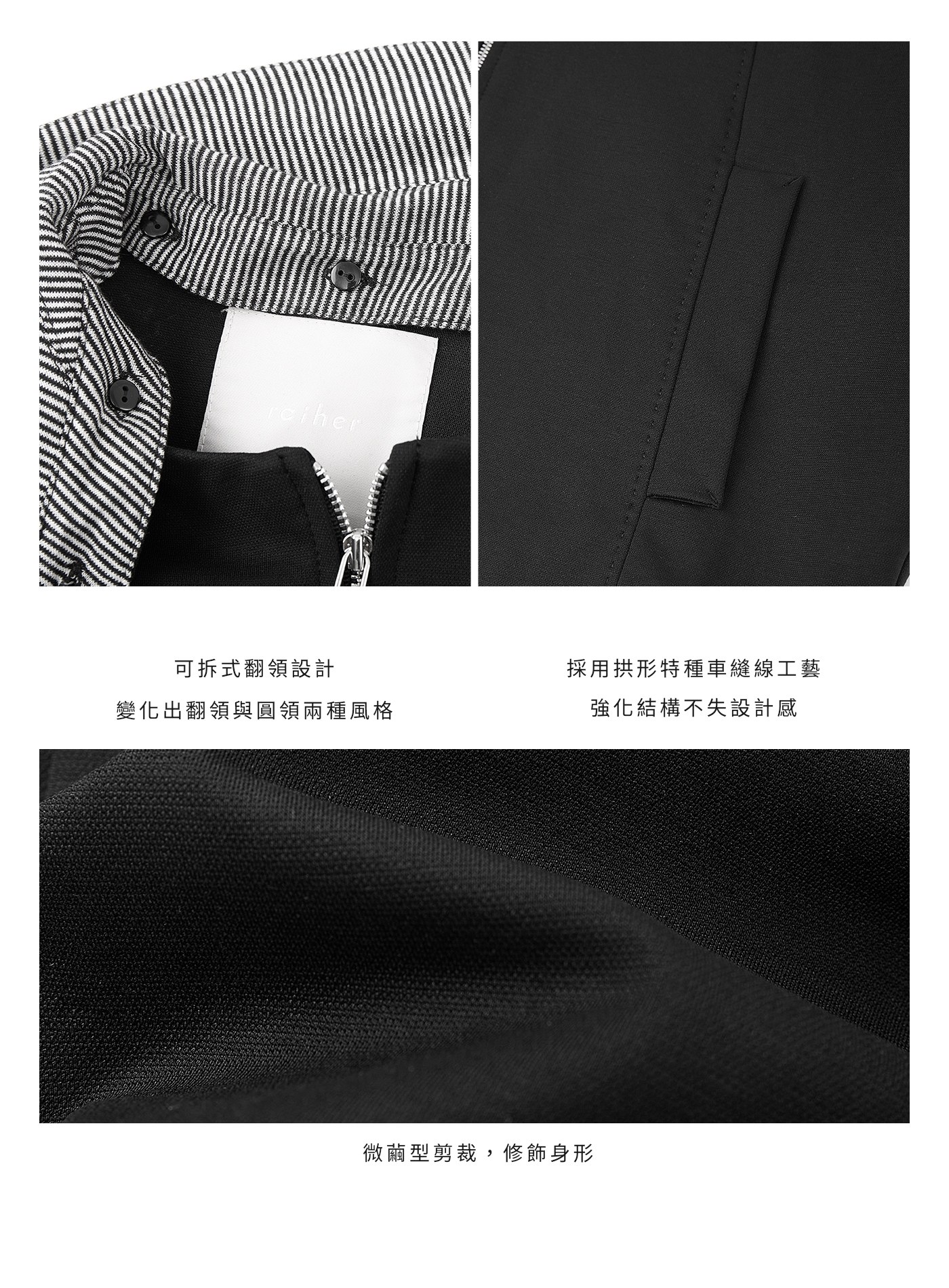 - 可拆式翻領設計,變化出翻領與圓領兩種風格