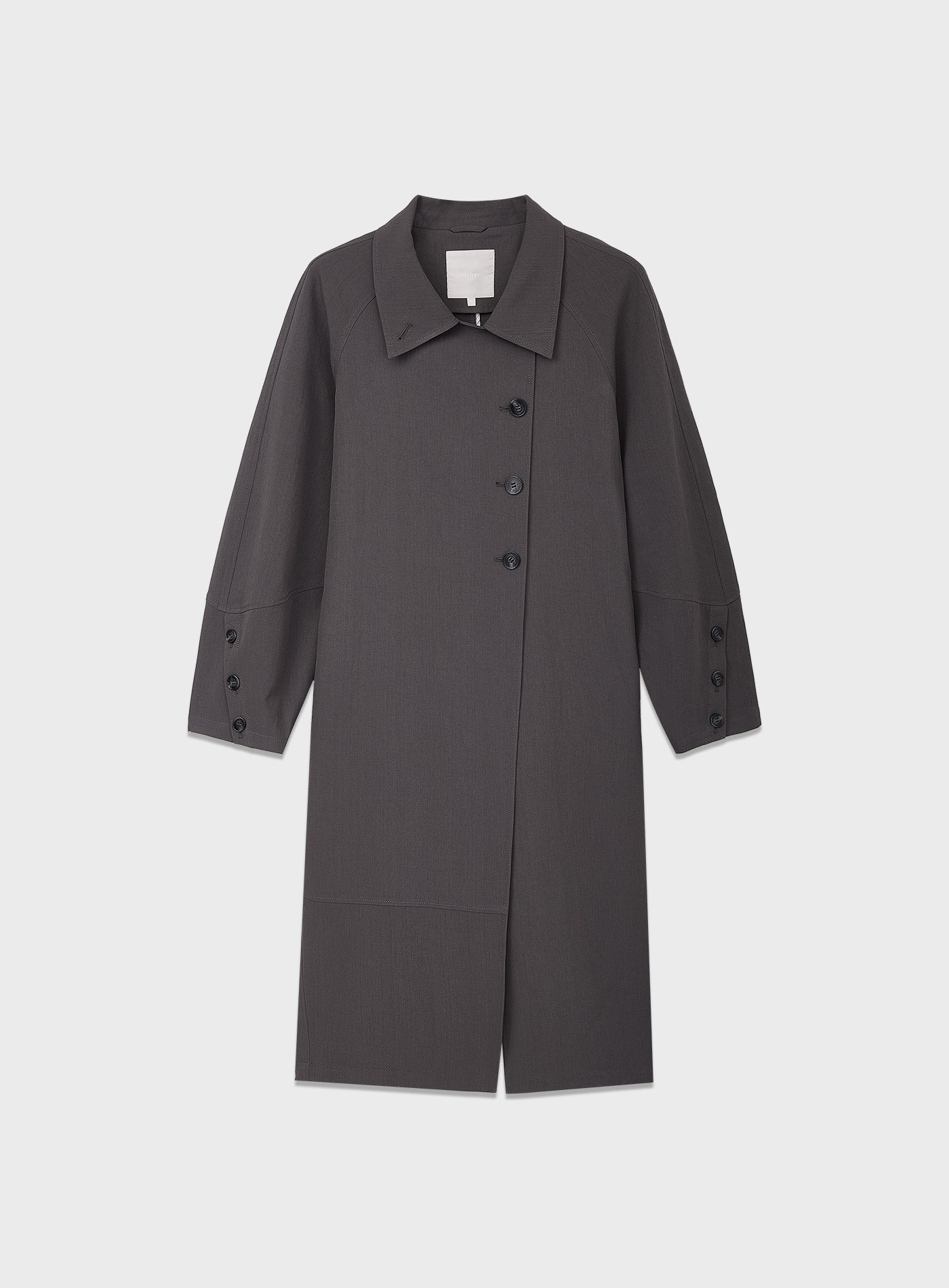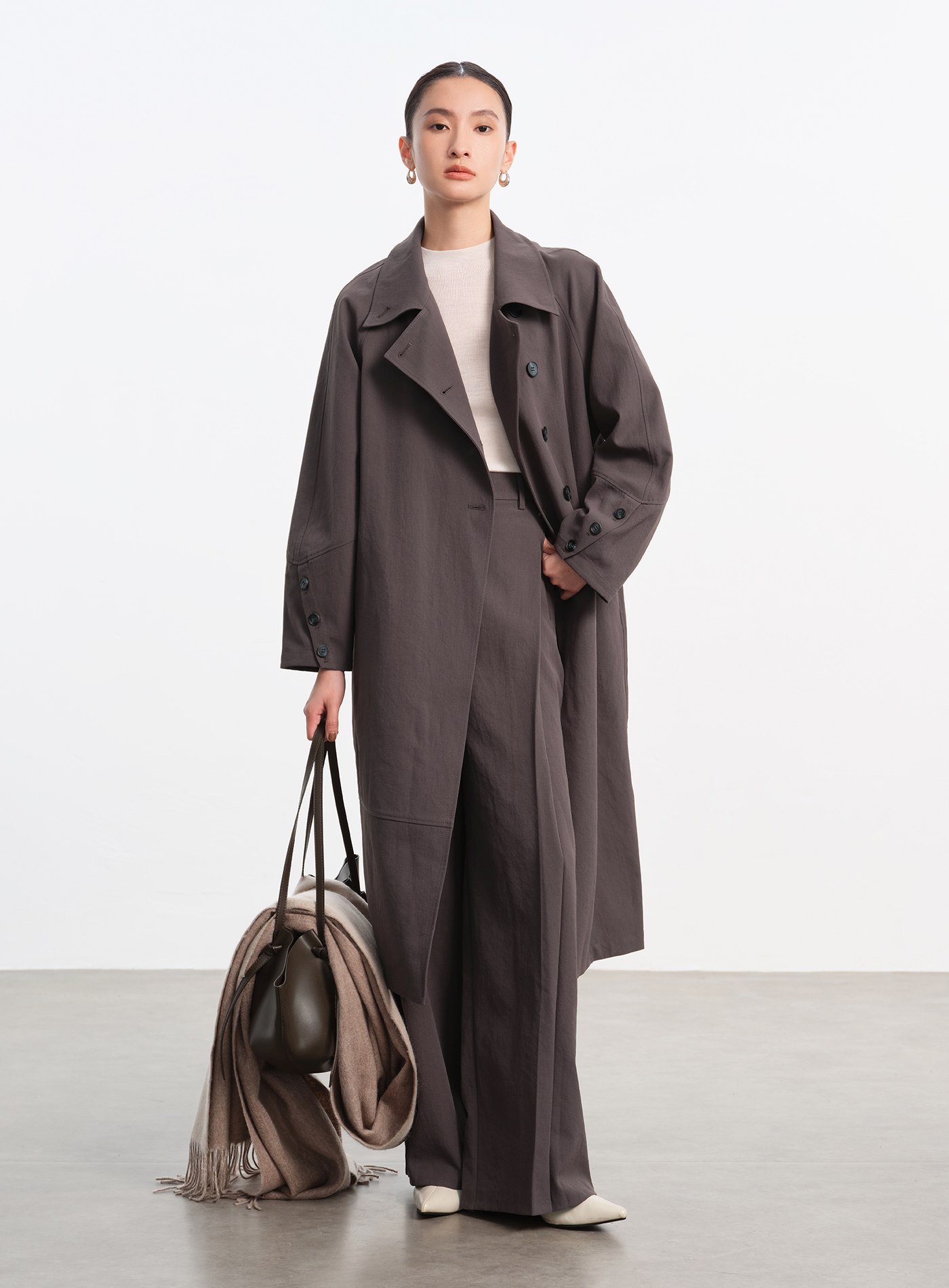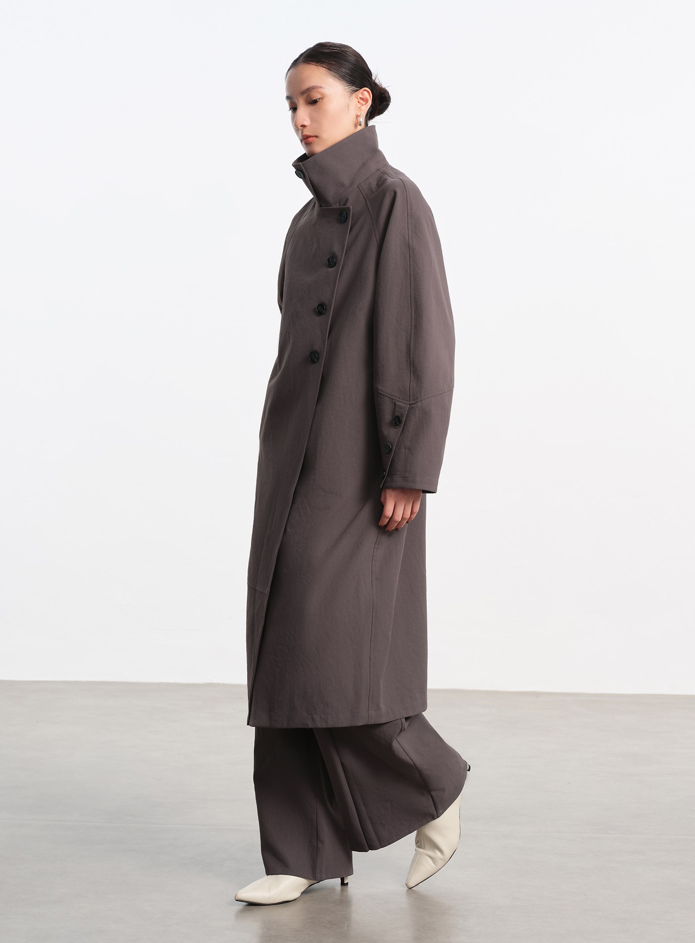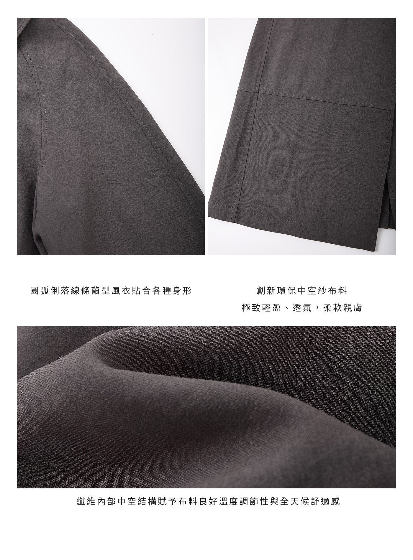 - 以流暢圓弧俐落線條,設計出具有空間感的繭型風衣,自然貼合各種身形