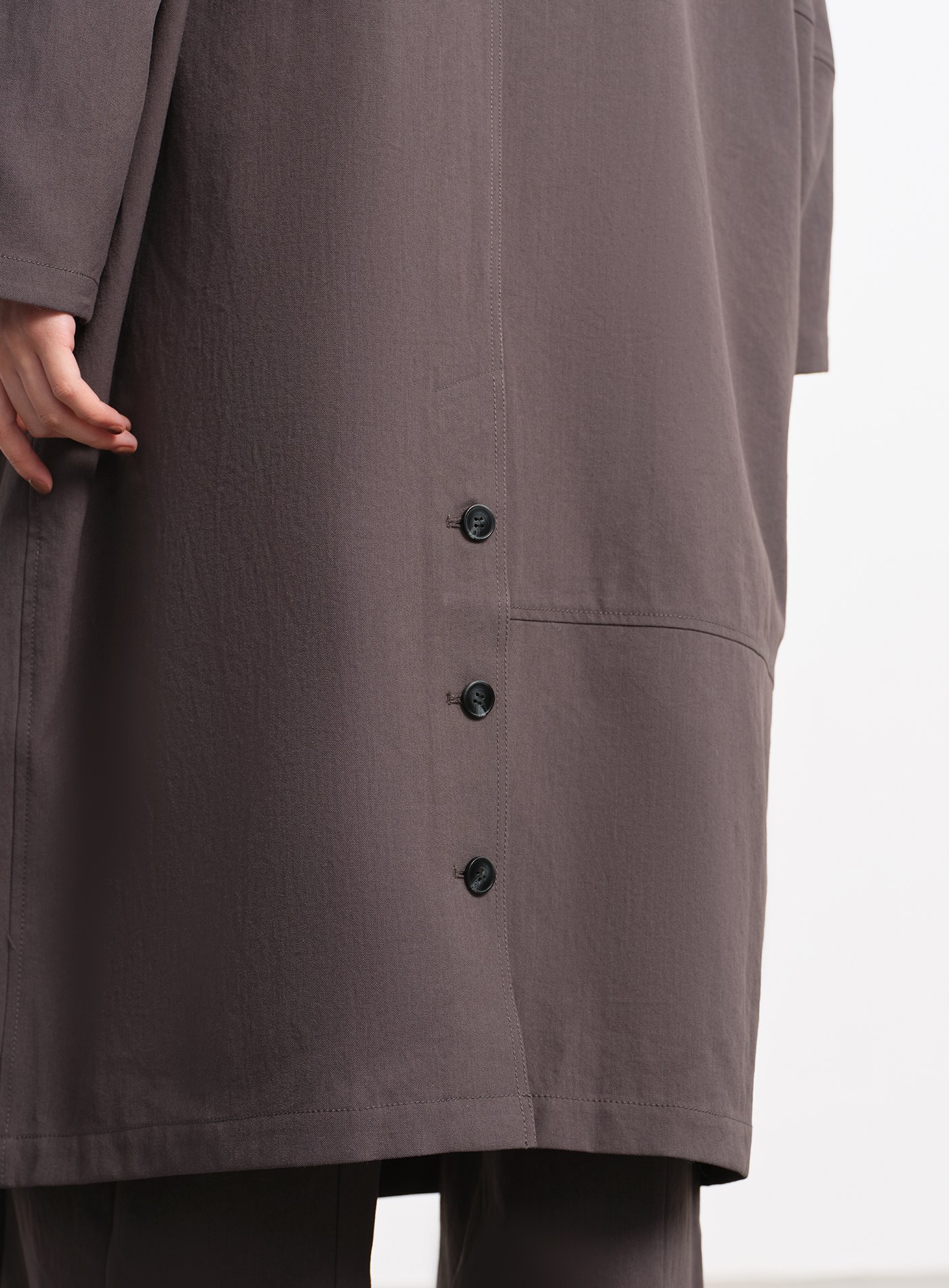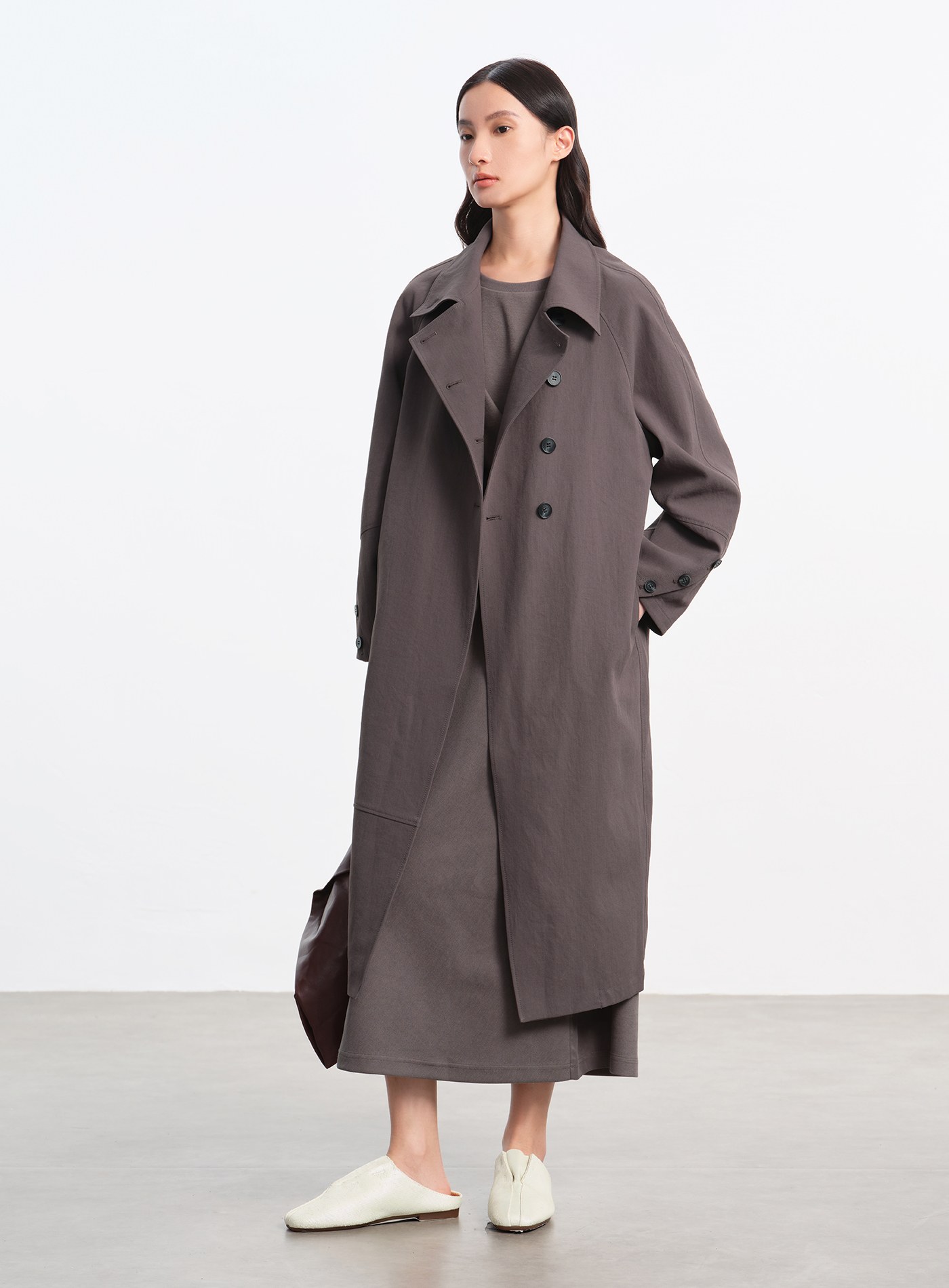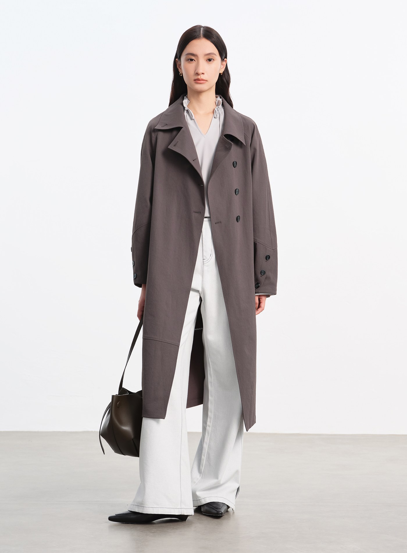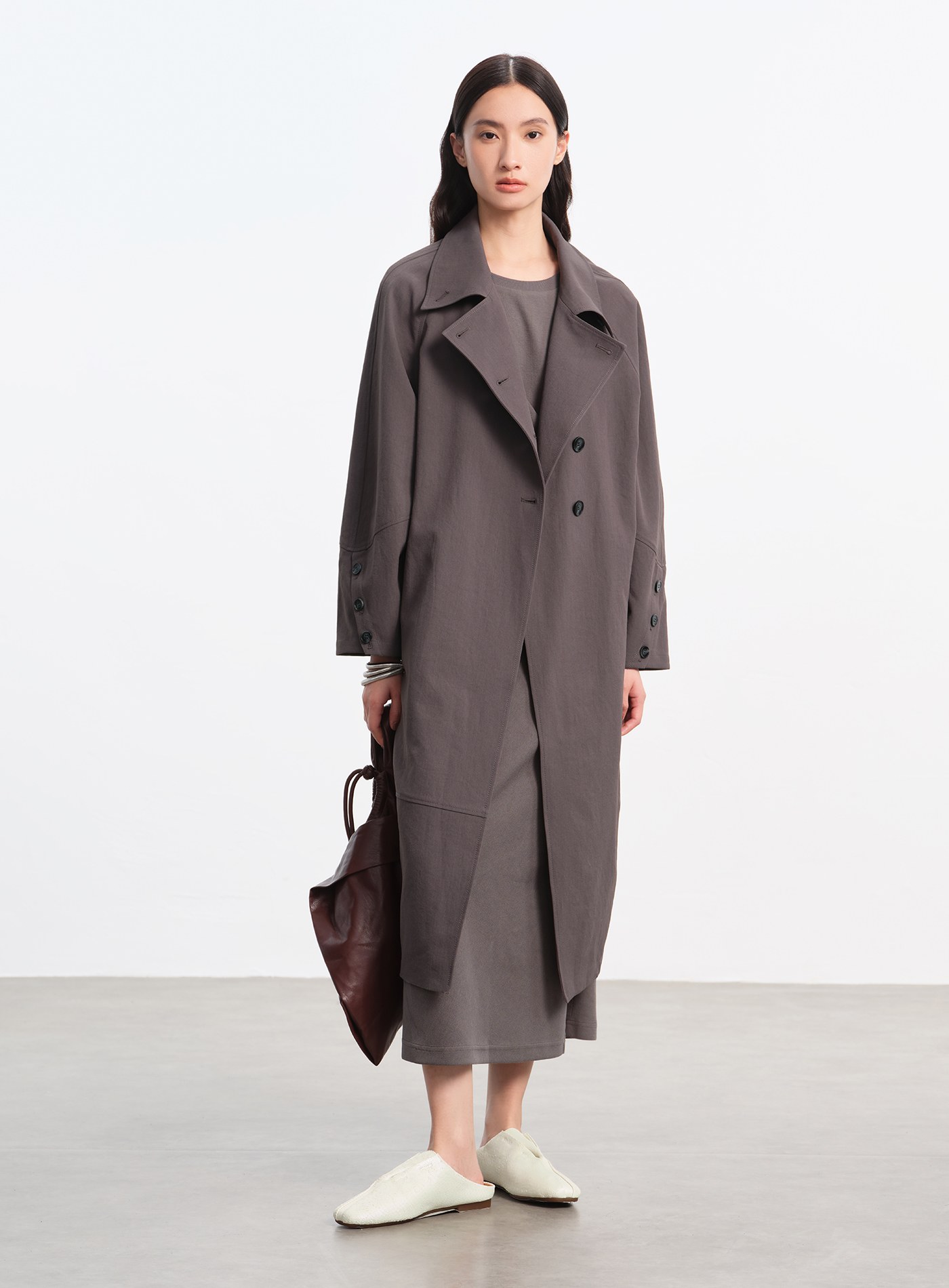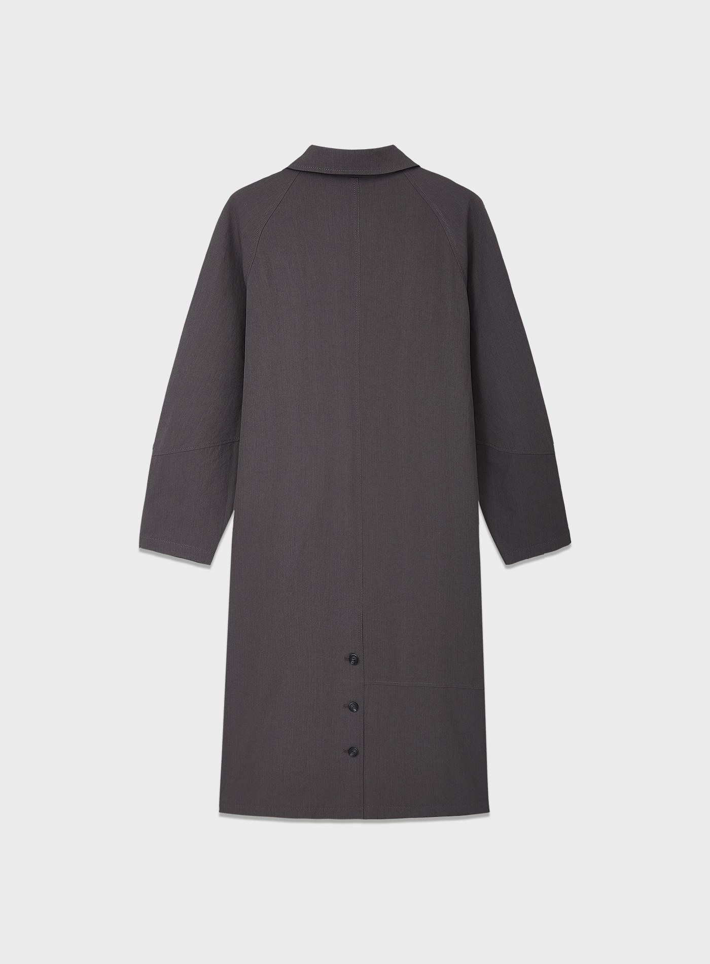 - 以流暢圓弧俐落線條,設計出具有空間感的繭型風衣,自然貼合各種身形